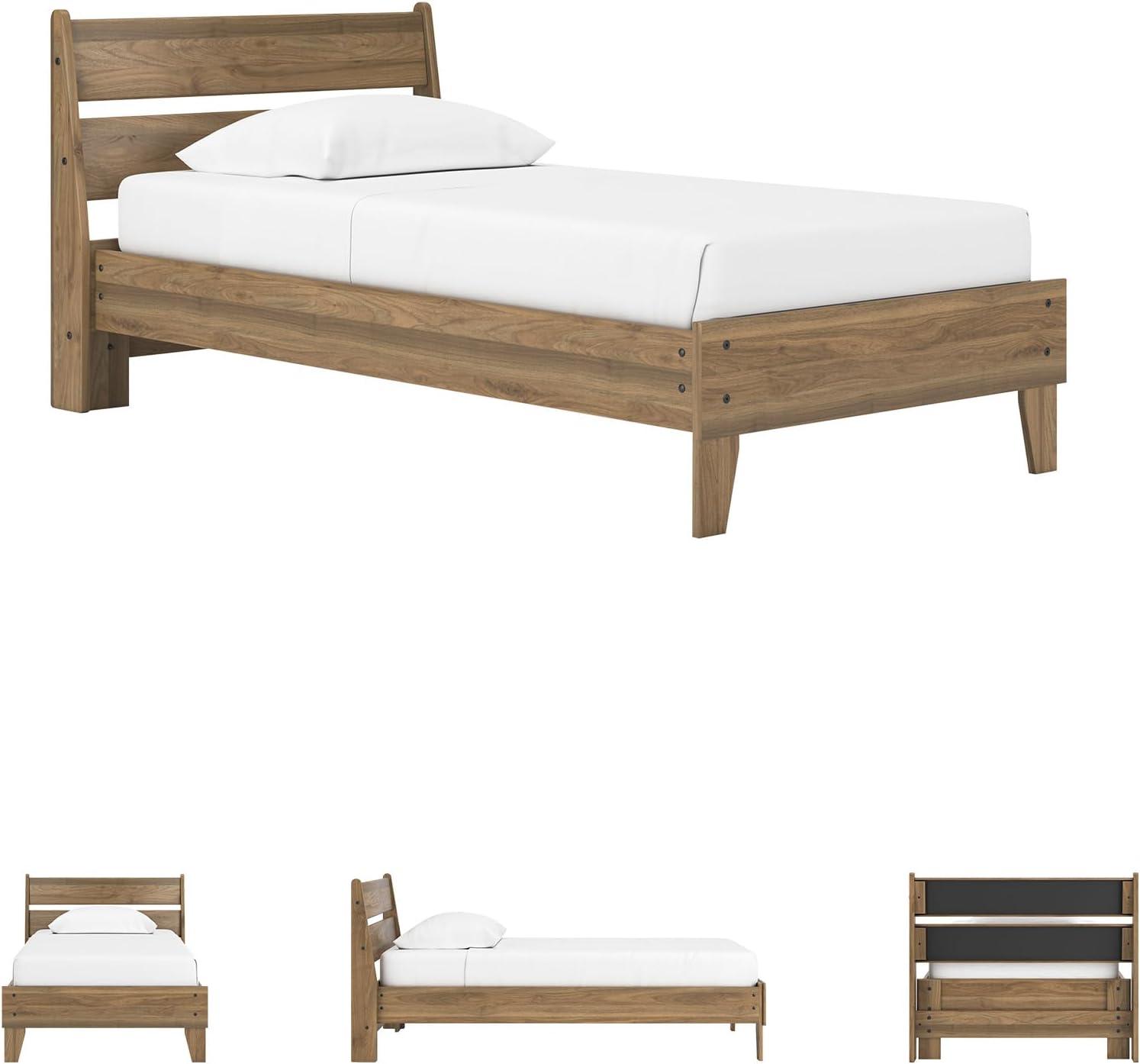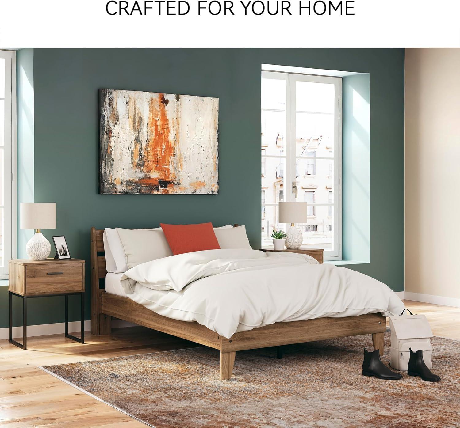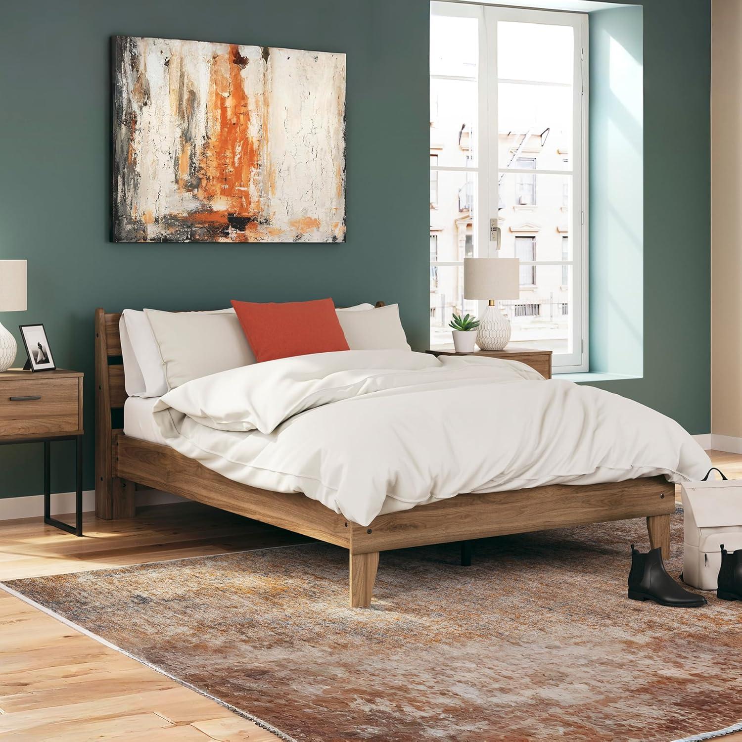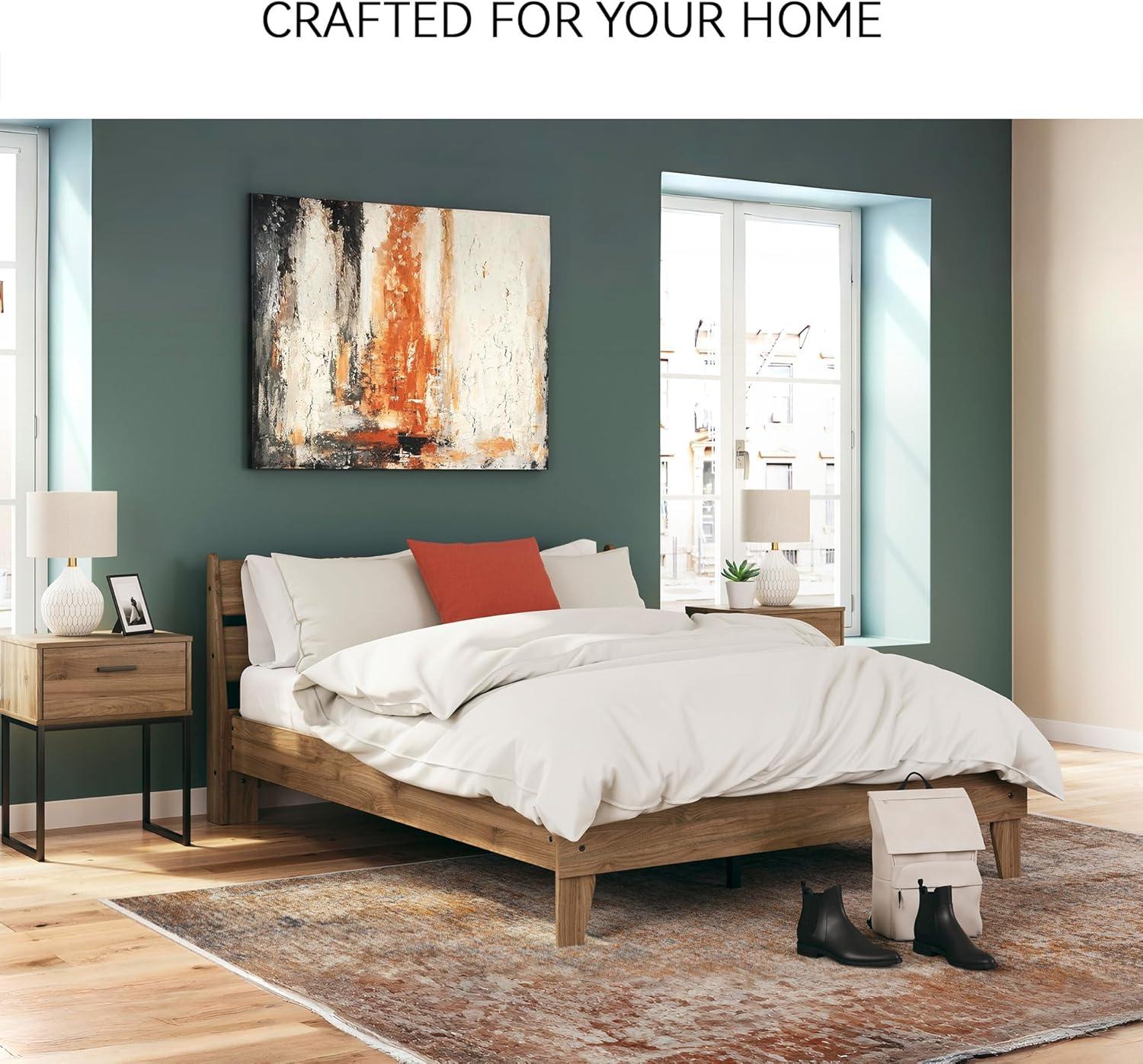 Signature Design by Ashley Calverson Modern Platform Bed, Foundation or Box Spring Not Needed, King, Dark Brown(Honey Brown)