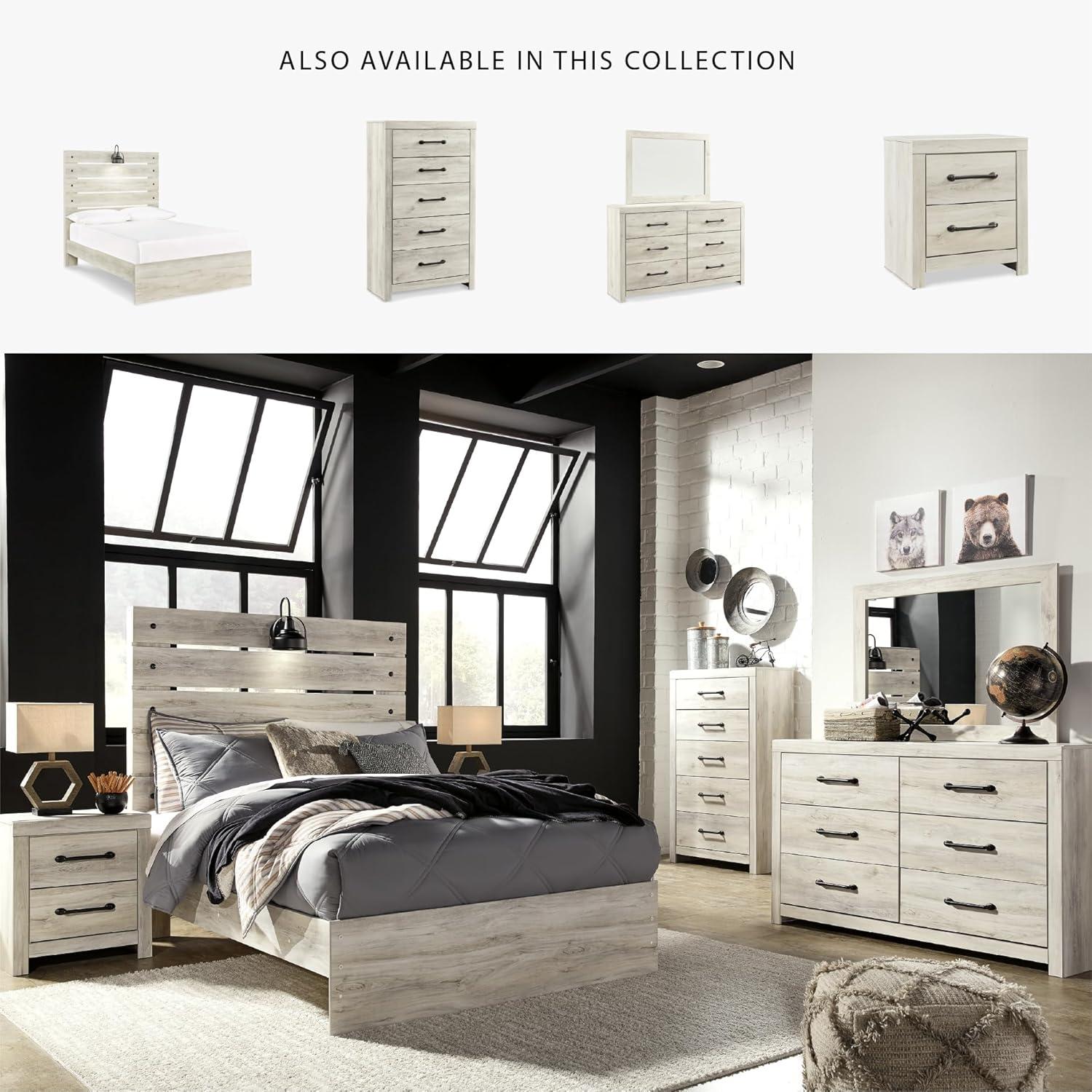 Signature Design by Ashley Cambeck Farmhouse Twin Panel Platform Bed with 2 Storage Drawers, Cubbies, Sconce Light and USB Ports, Foundation or Box Spring Not Needed, Whitewash(Full)
