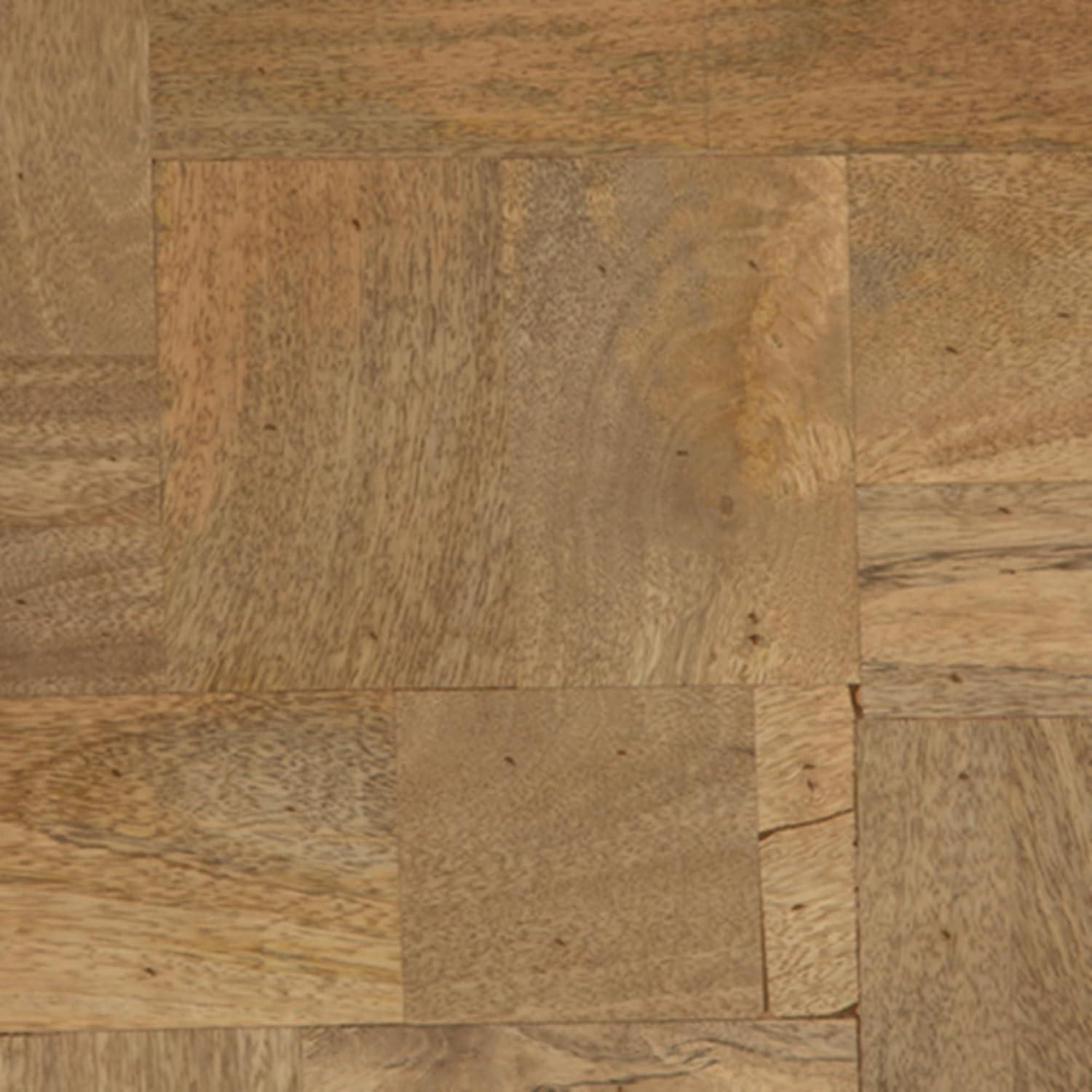 With its clean lines and sense of simplicity, this console table is a master study in modern style. We love how the contrasting patchwork patterned post and the dark brown finish captivate the eye. The lower shelf enhances the open and airy design and provides great display space.
