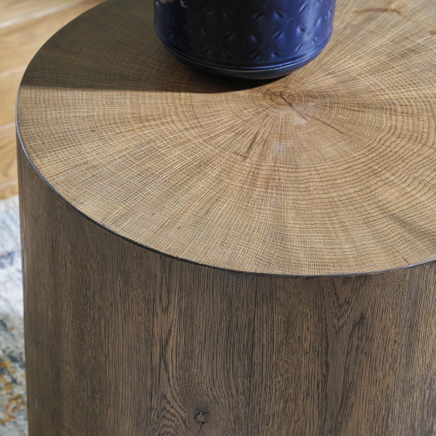 HANDSOMELY MADE: Crafted with oak veneer and MDF substrate in a gray-brown finish. End grain top design provides an authentic tree stump look