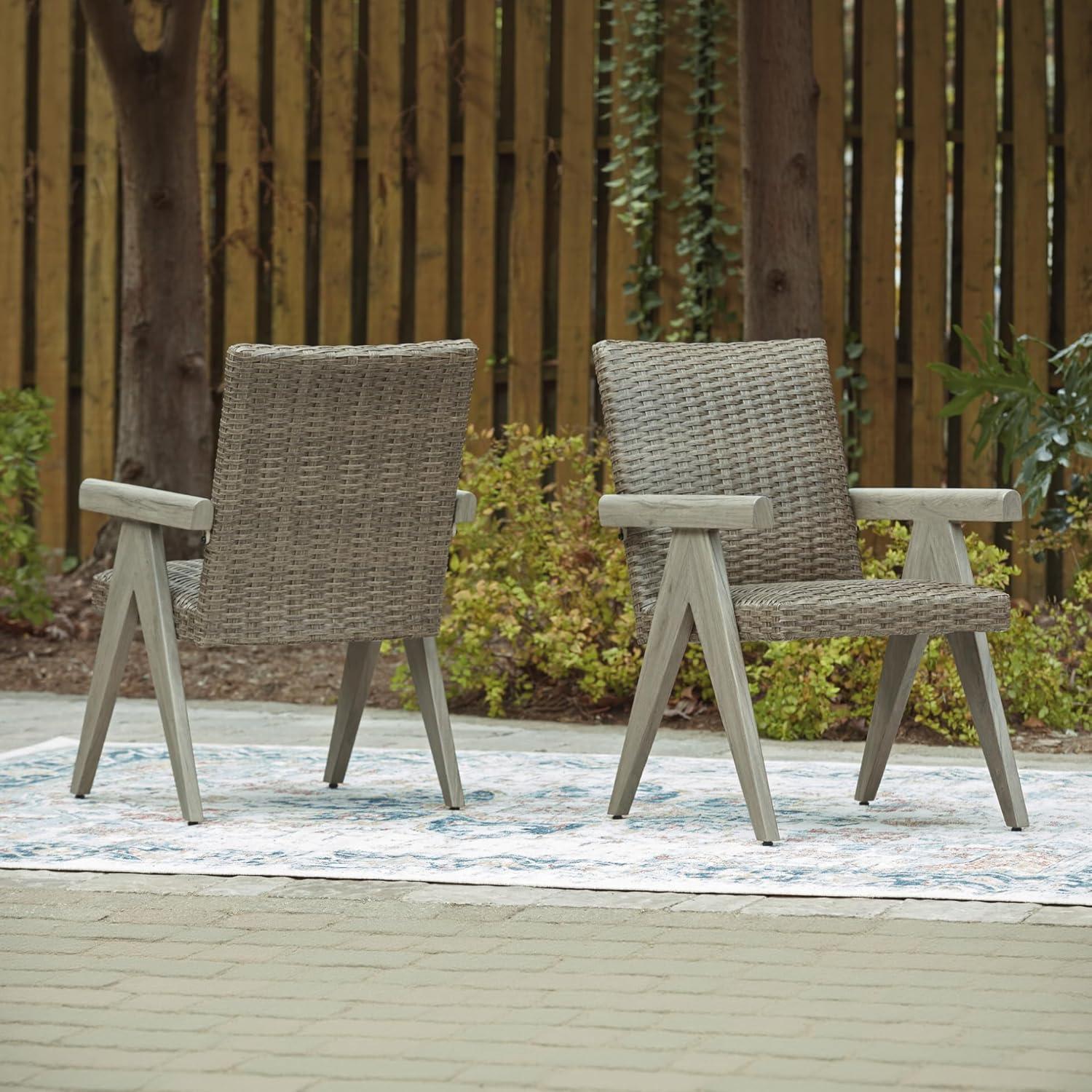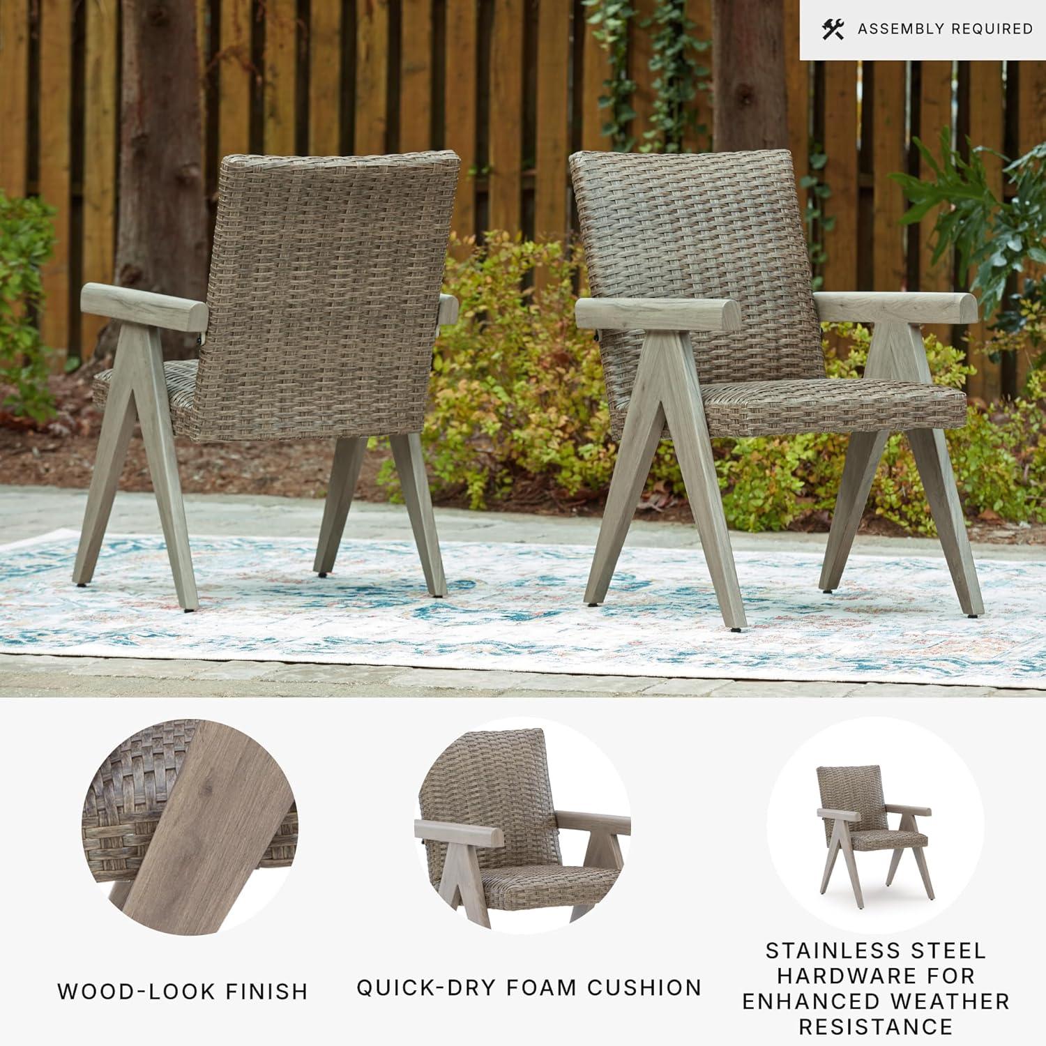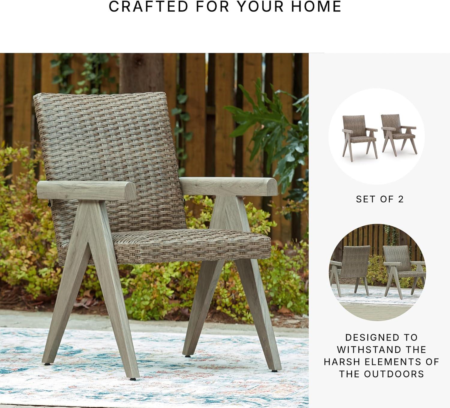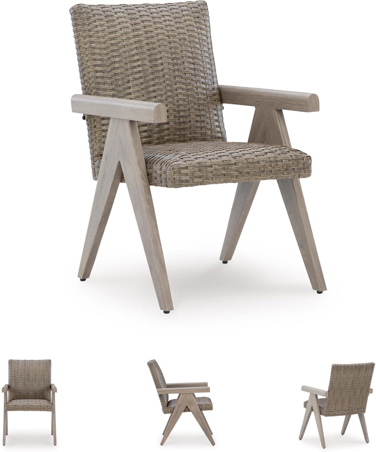 Signature Design by Ashley Carisbo Casual Rust Resistant Aluminum Outdoor Arm Chair with Handwoven Resin Wicker, Set of 2, Beige