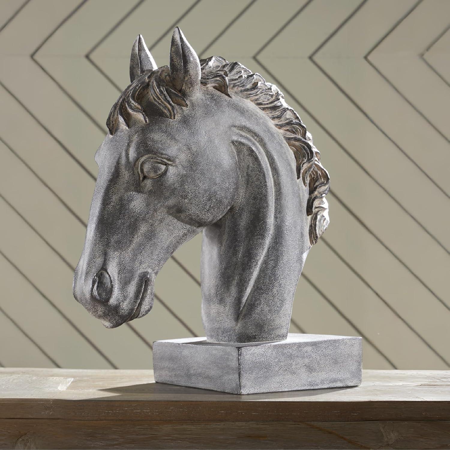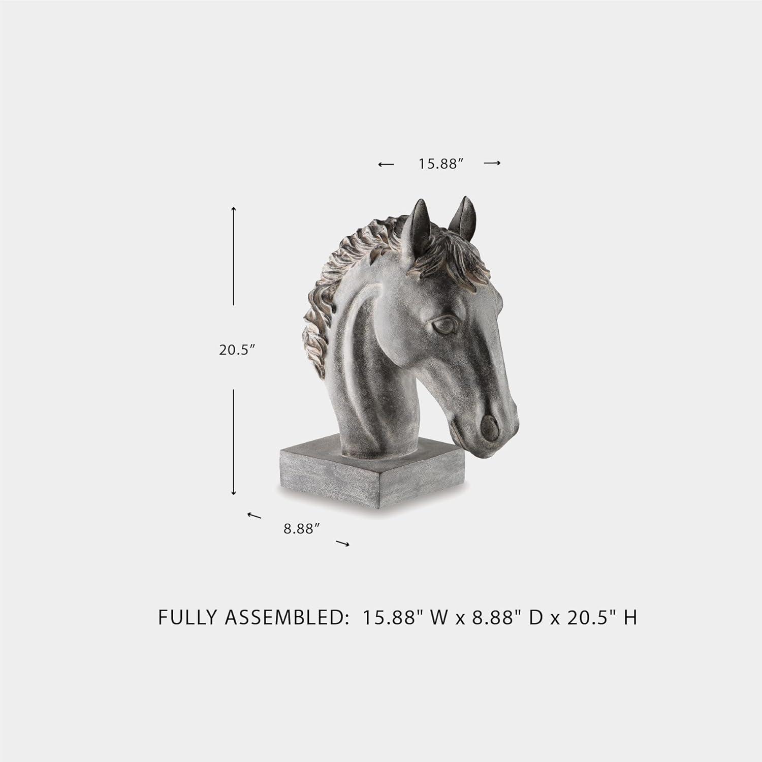 Signature Design by Ashley Carnlow Art Deco Polyresin Horse Head Sculpture, Light Gray
