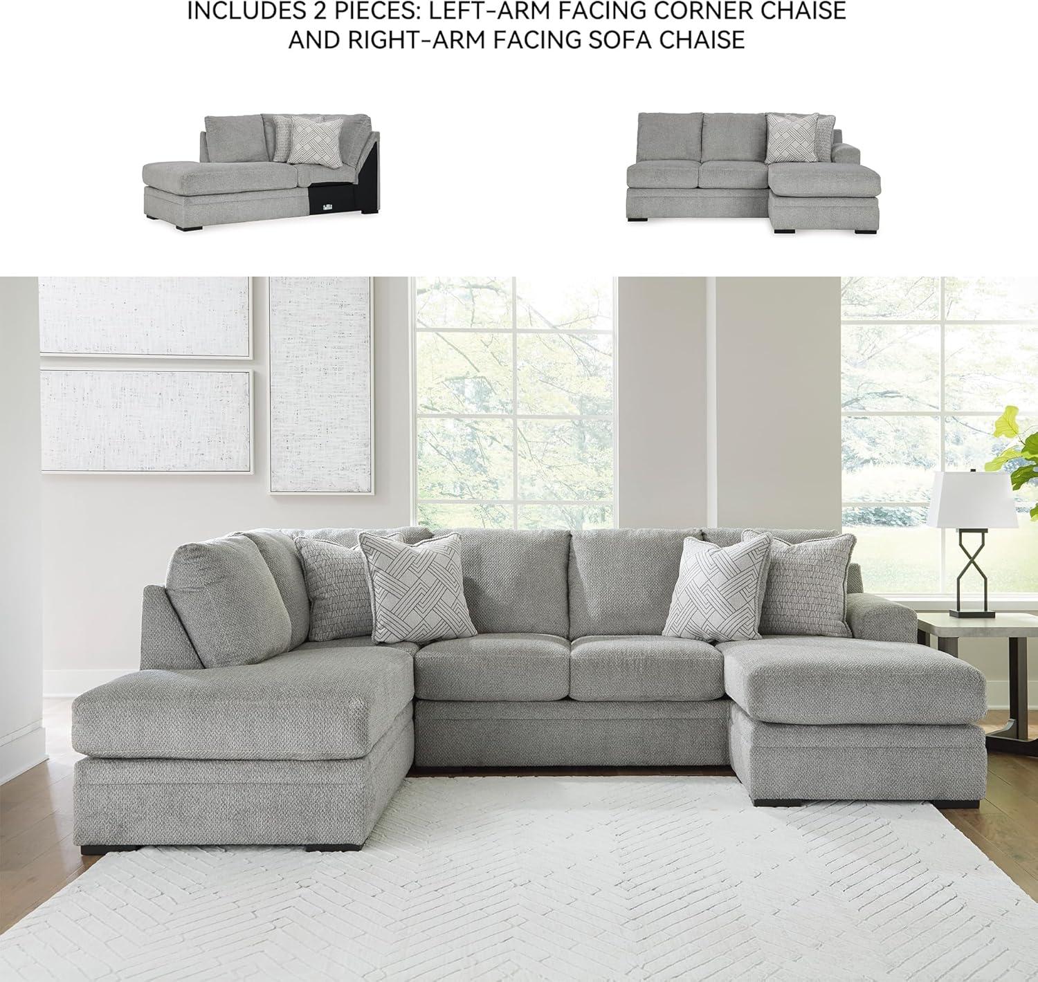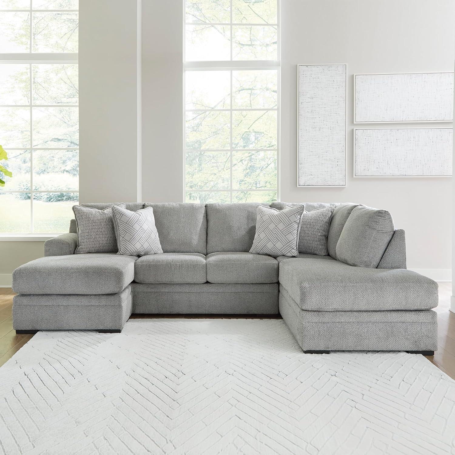 Signature Design by Ashley Casselbury Casual Right-Arm Facing 2-Piece Sectional with Chaise, Loose Seat Cushions and 4 Throw Pillows, Light Gray(Grey)