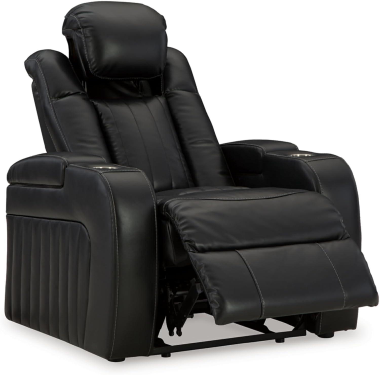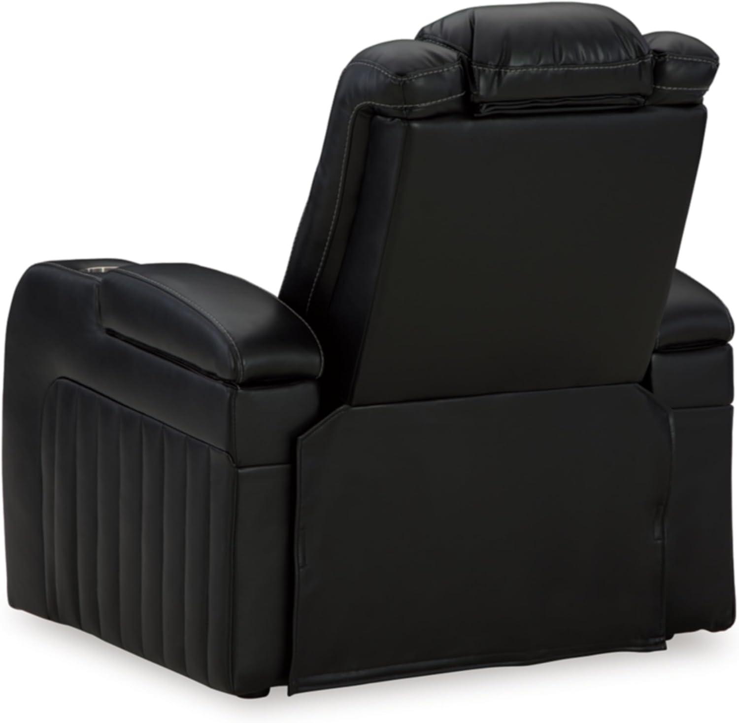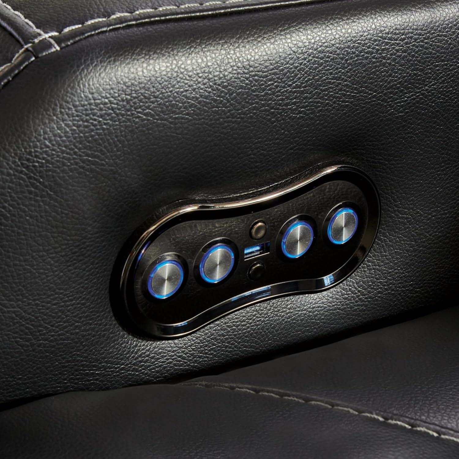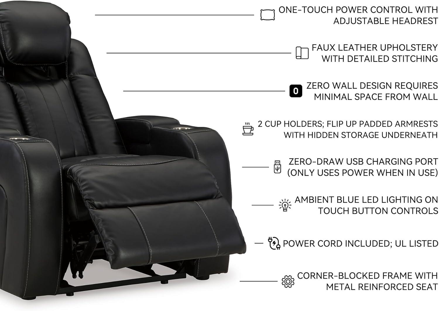 Signature Design by Ashley Caveman Den Modern Faux Leather Wall Hugger Power Recliner with Adjustable Headrest, Storage, Wireless, USB Ports and LED Lights, Black(Black)