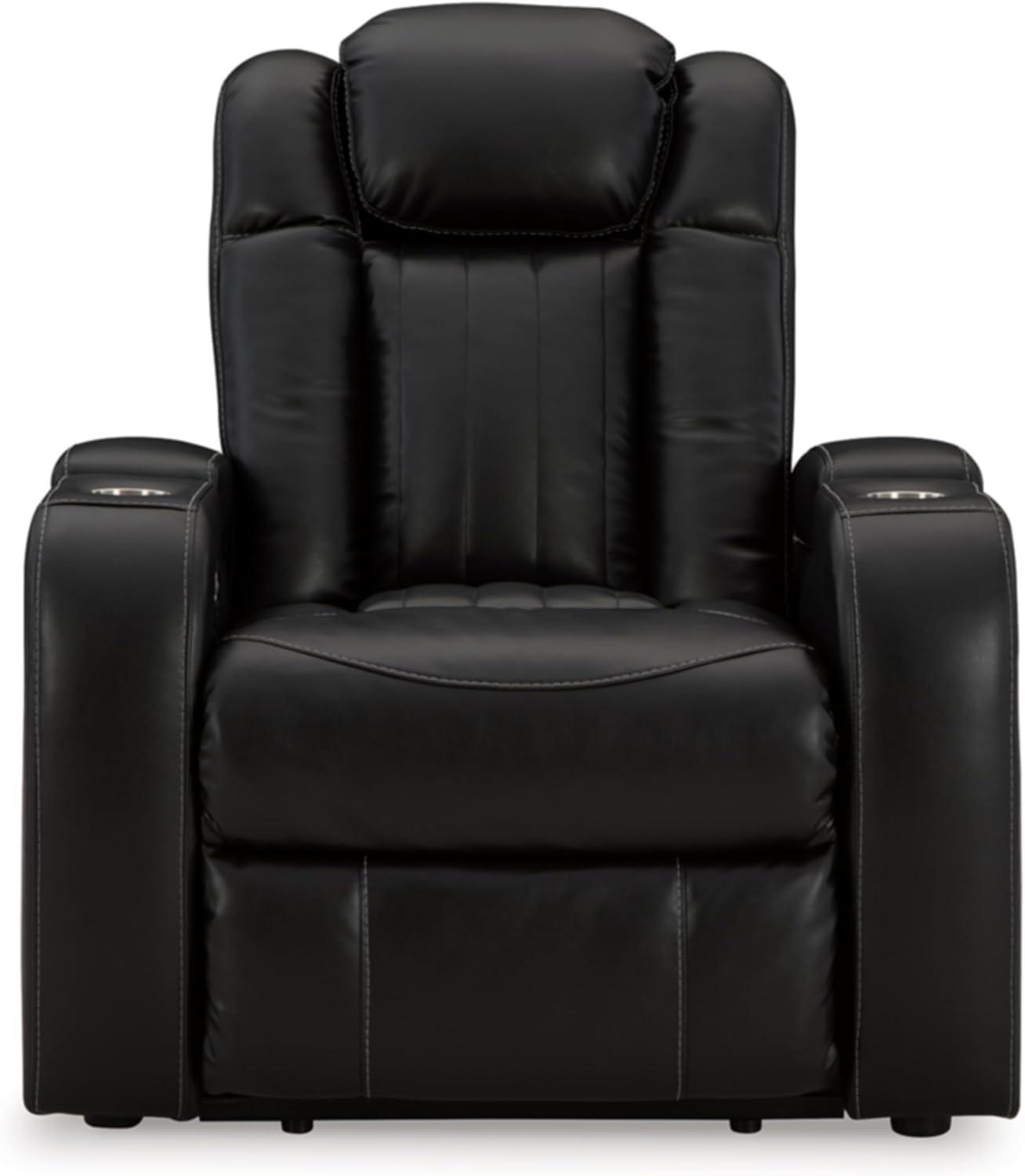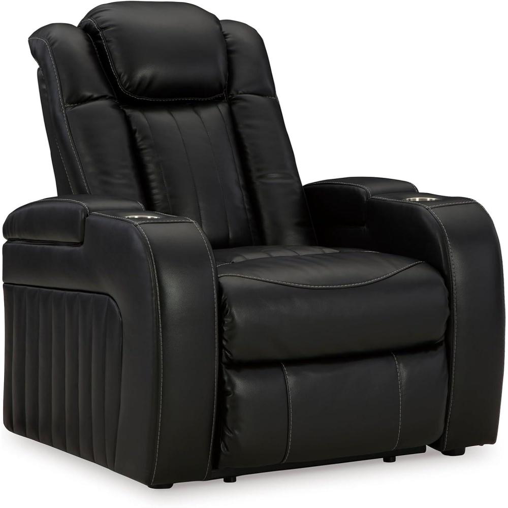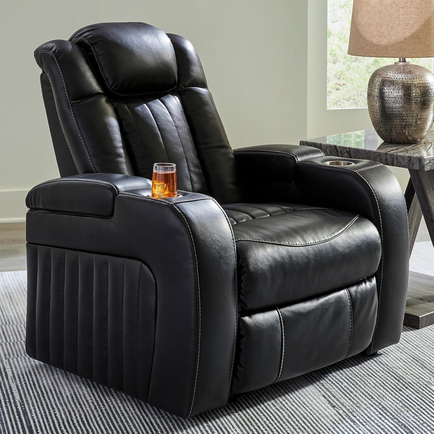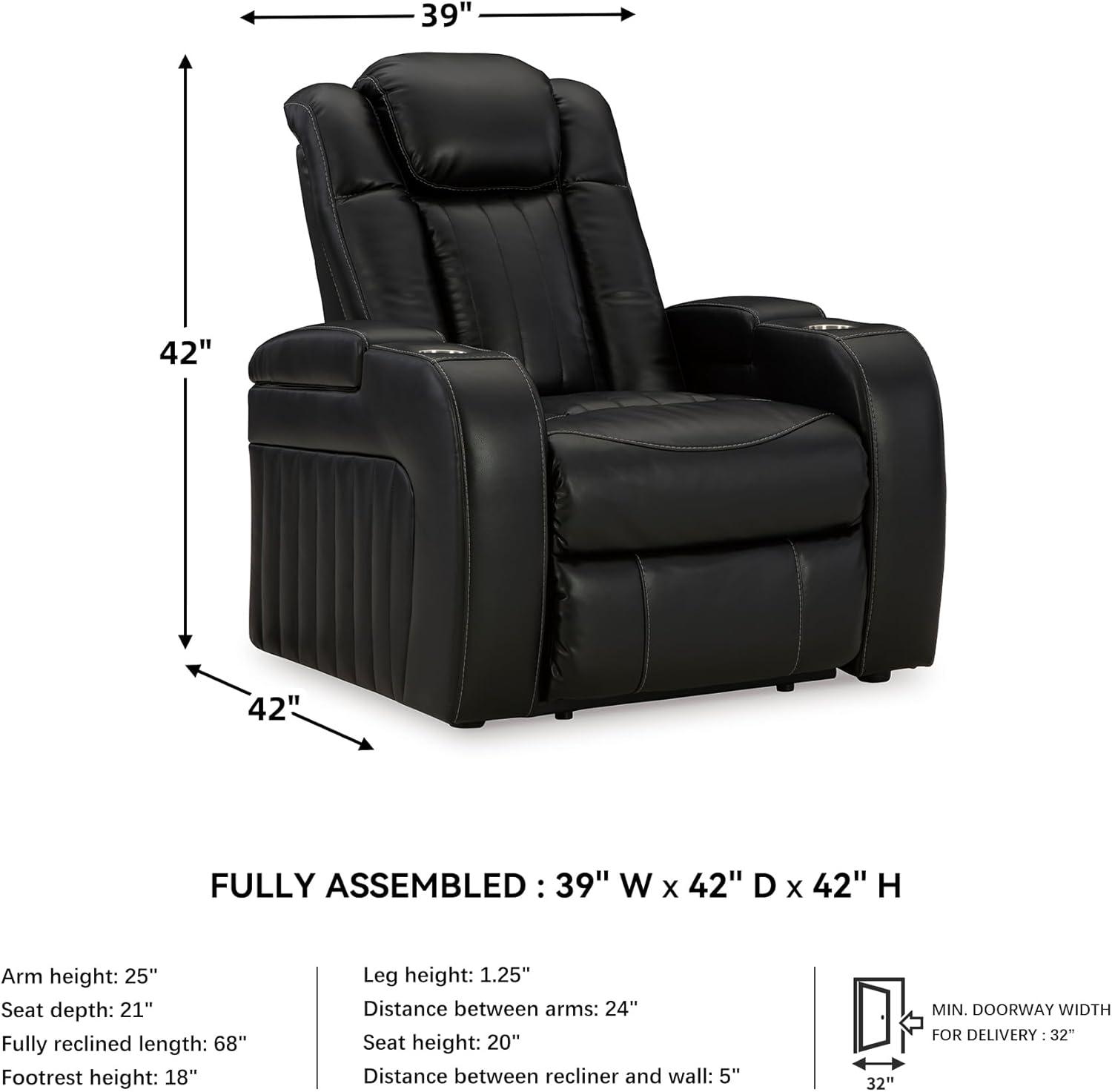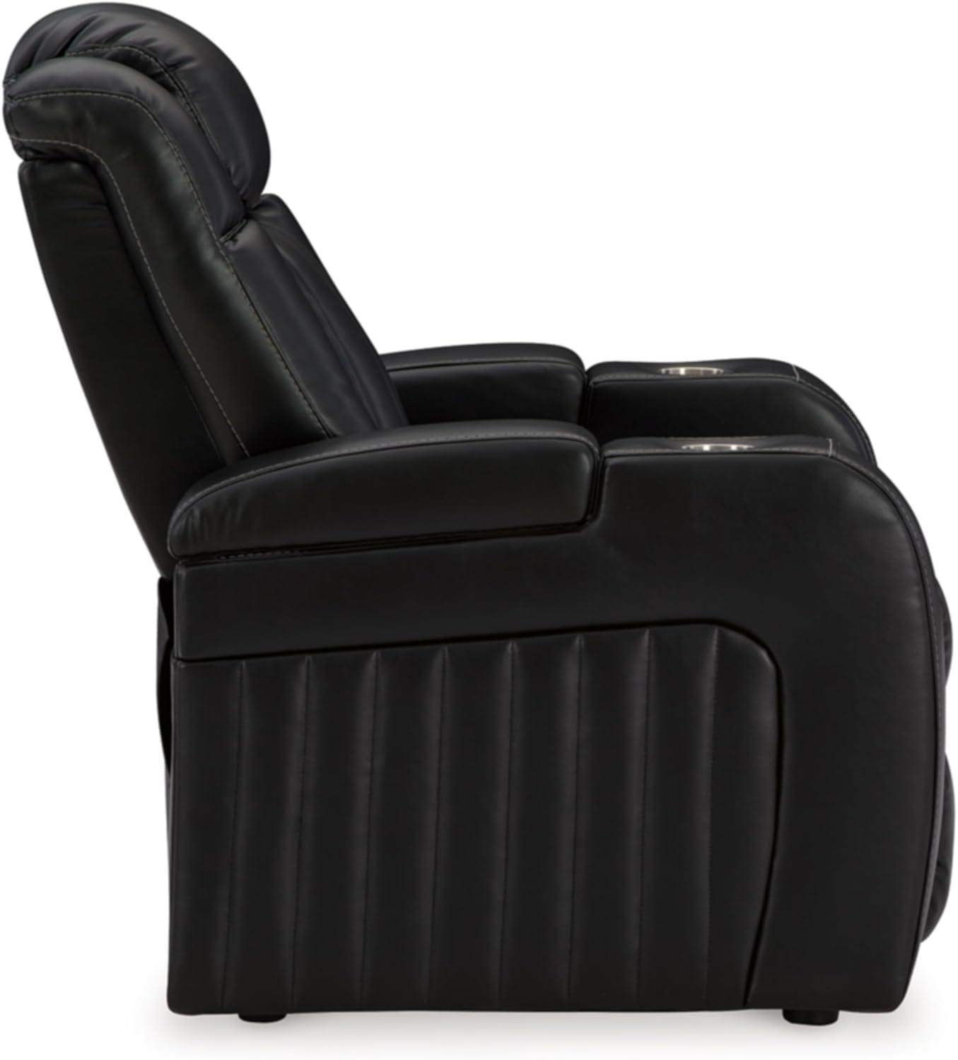 Signature Design by Ashley Caveman Den Modern Faux Leather Wall Hugger Power Recliner with Adjustable Headrest, Storage, Wireless, USB Ports and LED Lights, Black(Black)