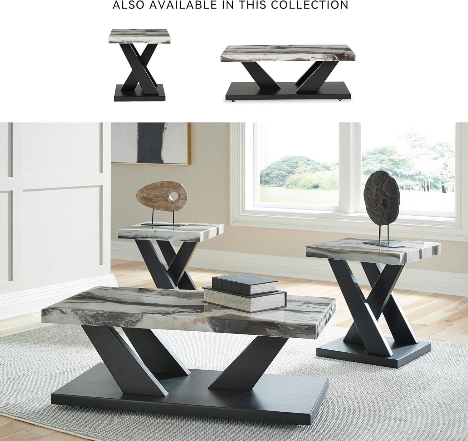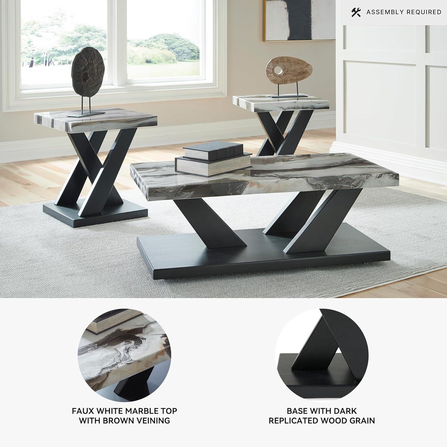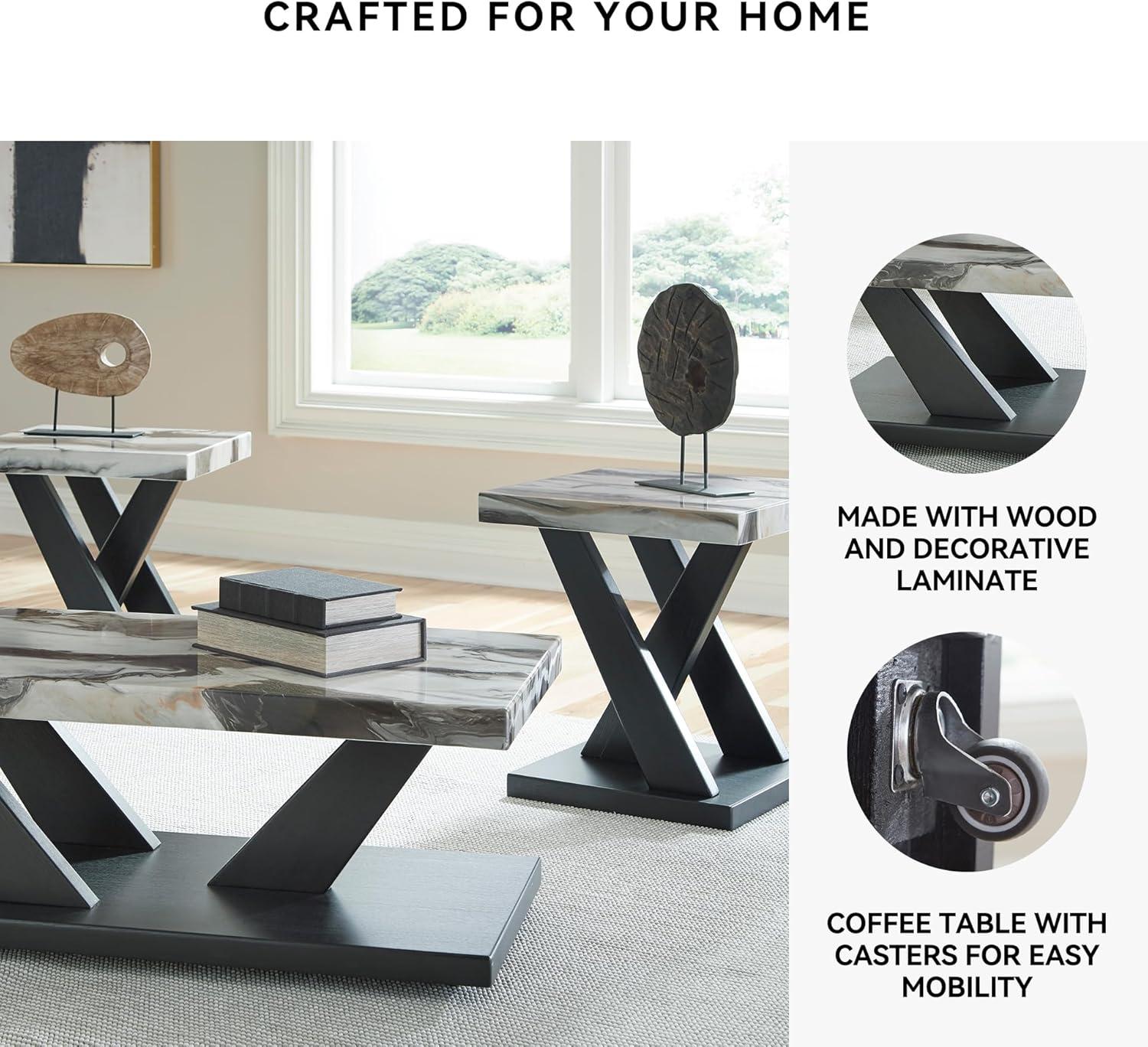 Signature Design by Ashley Cendill Contemporary Faux Marble Table with Casters, Set of 3, White & Black