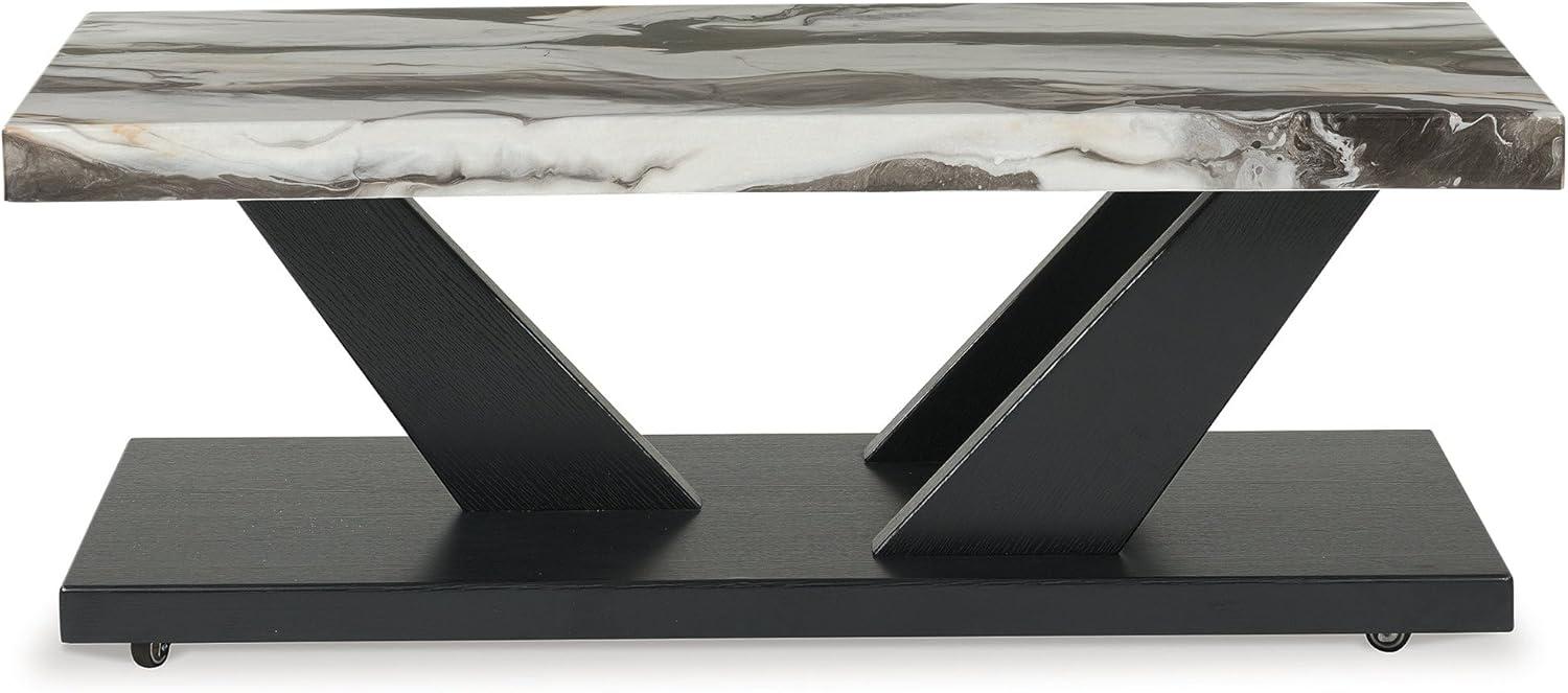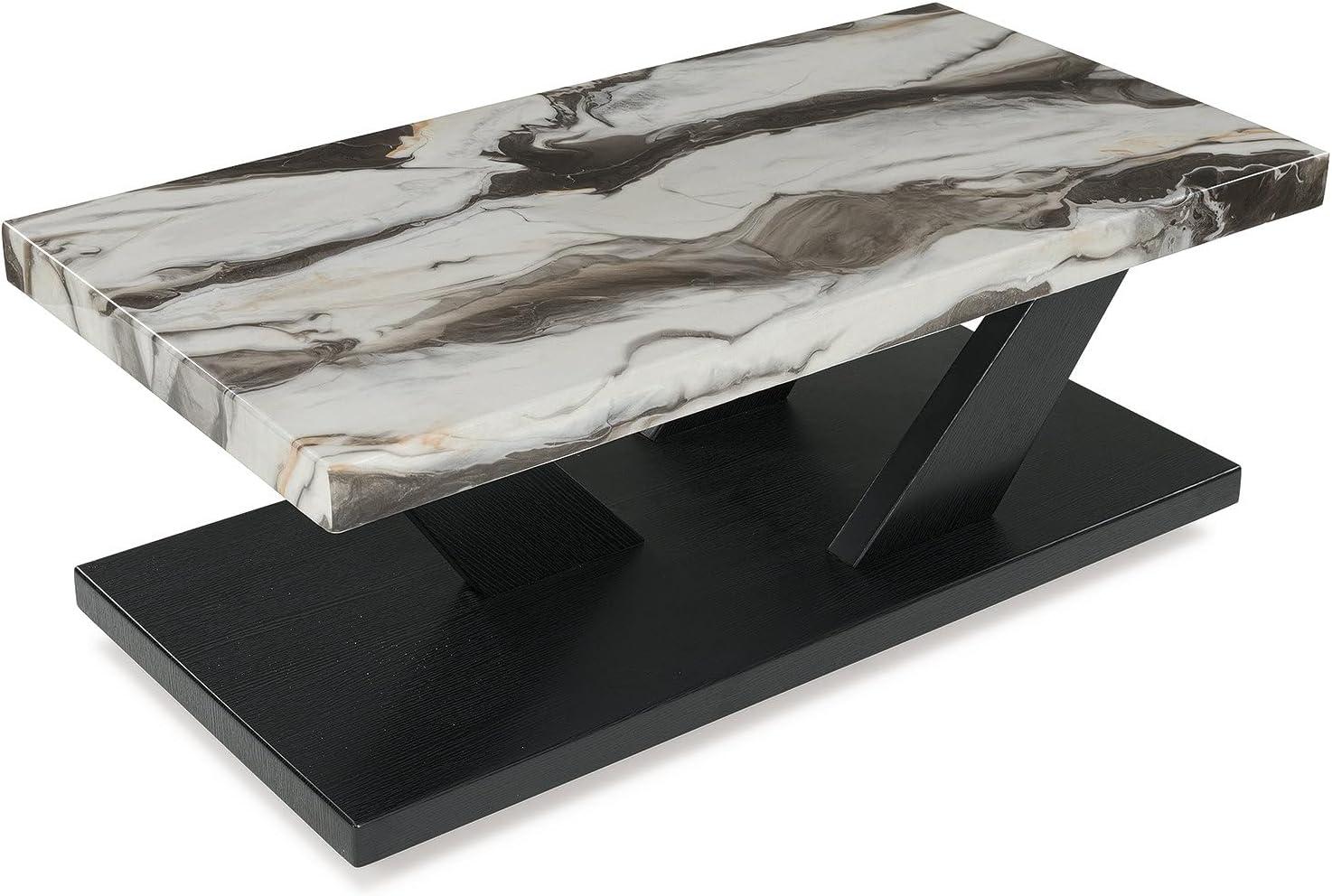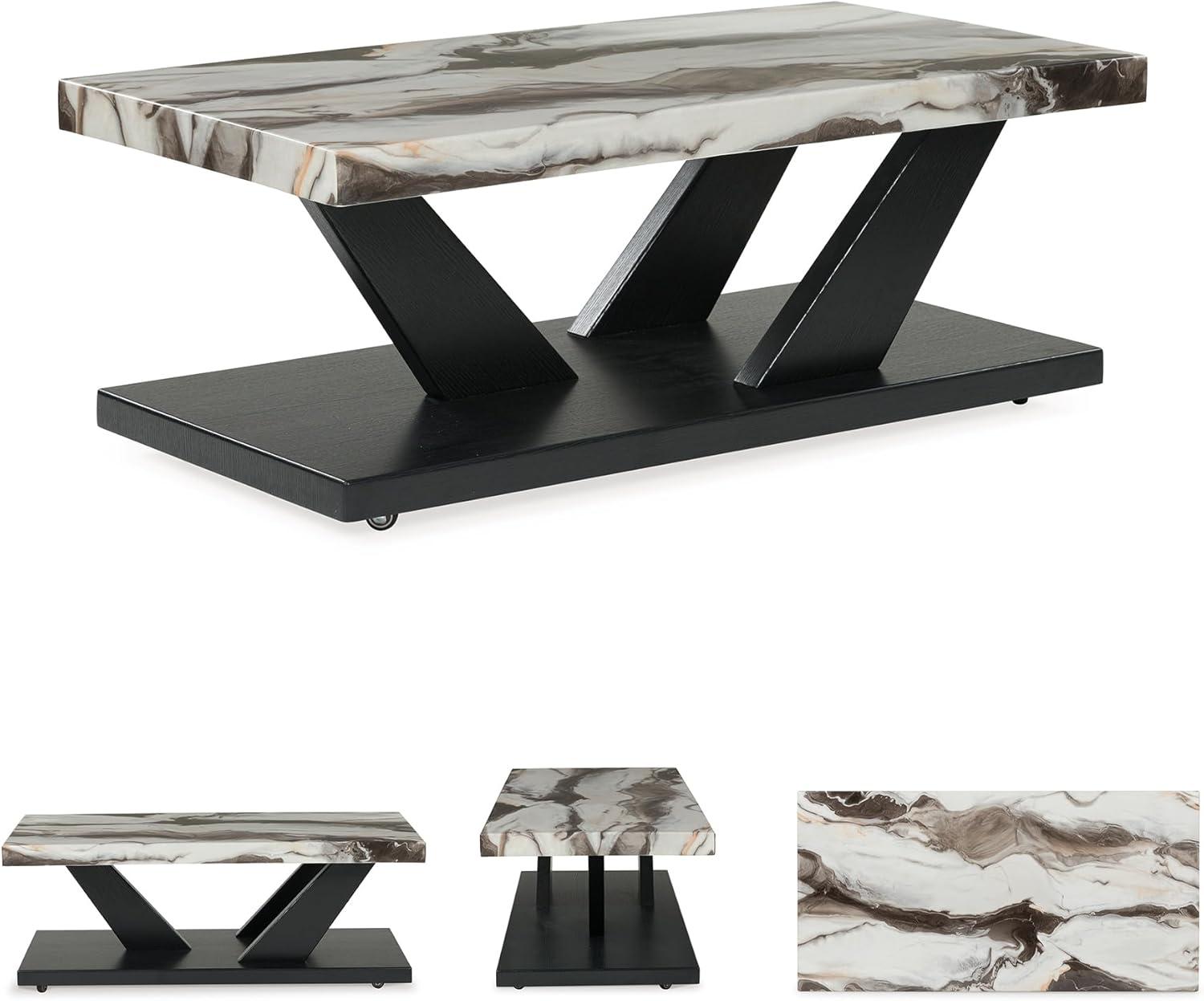 Signature Design by Ashley Cendill Contemporary Faux Marble Table with Casters, Set of 3, White & Black