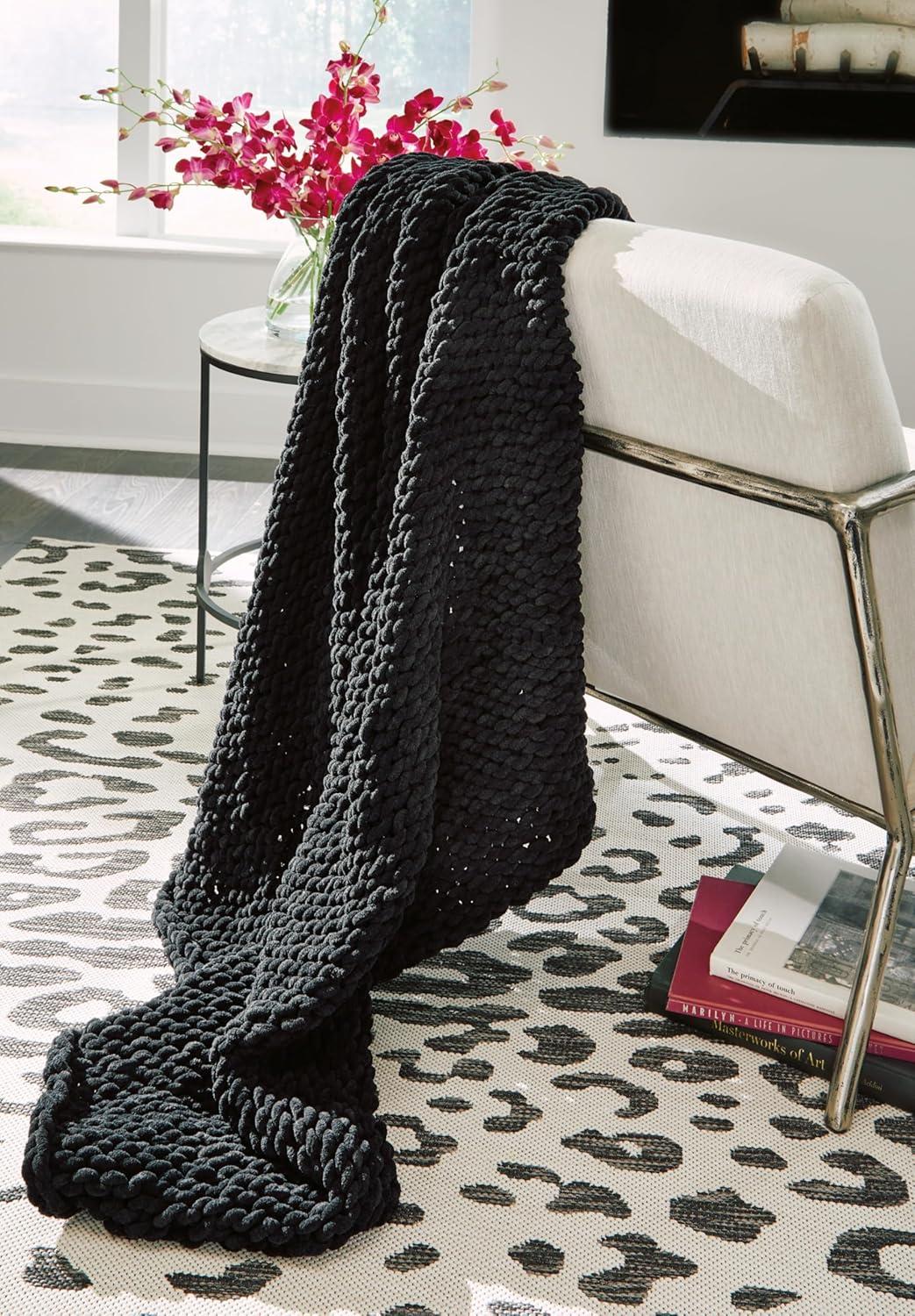 Signature Design by Ashley Chaddon Coastal Hand Knitted Throw, Beige(Black)
