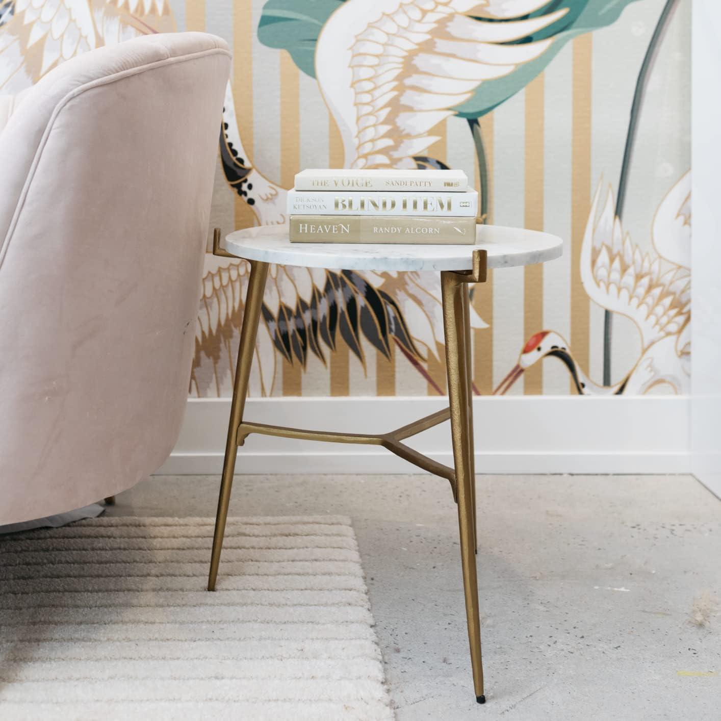 Take a stance for clean, contemporary style with this striking accent table. Round white marble top is paired with an antiqued goldtone tripod base. The result: an ultra-rich aesthetic priced to entice. With a wide variety of styles and materials, accent tables can provide storage in a living room, give guests a spot to rest their drinks, and add subtle drama to your decor by presenting a place for artwork, a lamp or a plant. We have a wide selection of accent tables and occasional tables, from rustic farmhouse designs to modern openwork styles. They come in a variety of sizes, too, so you will find one that fits just where you need it.