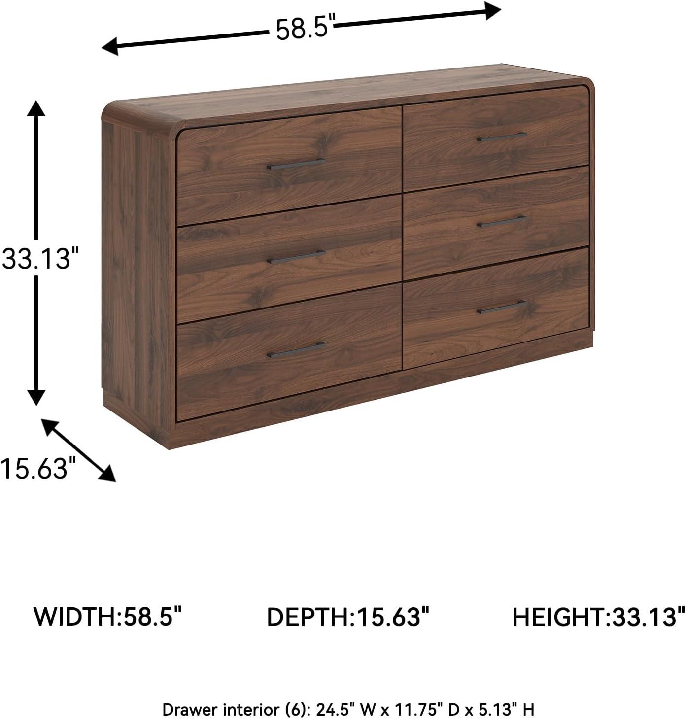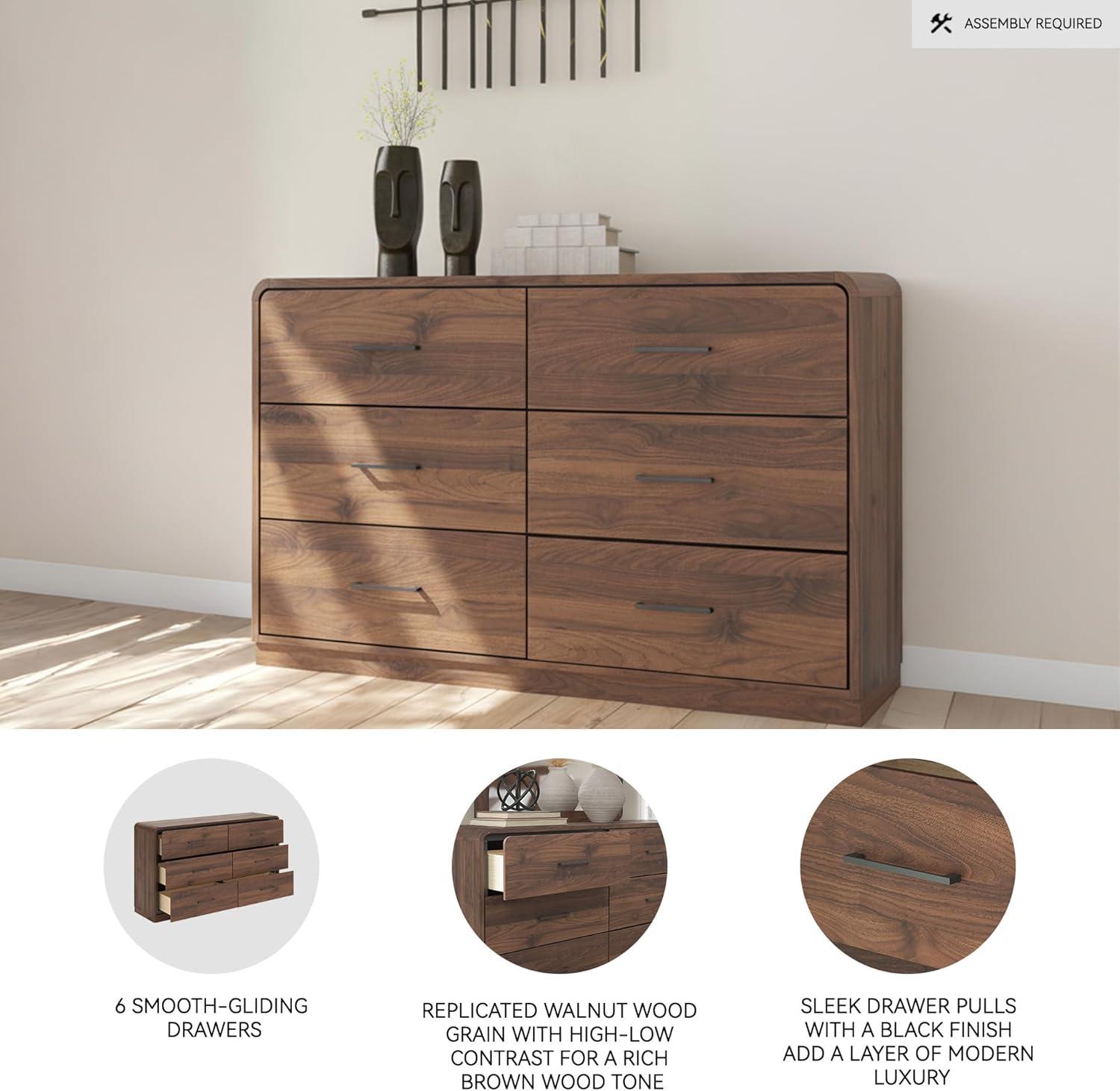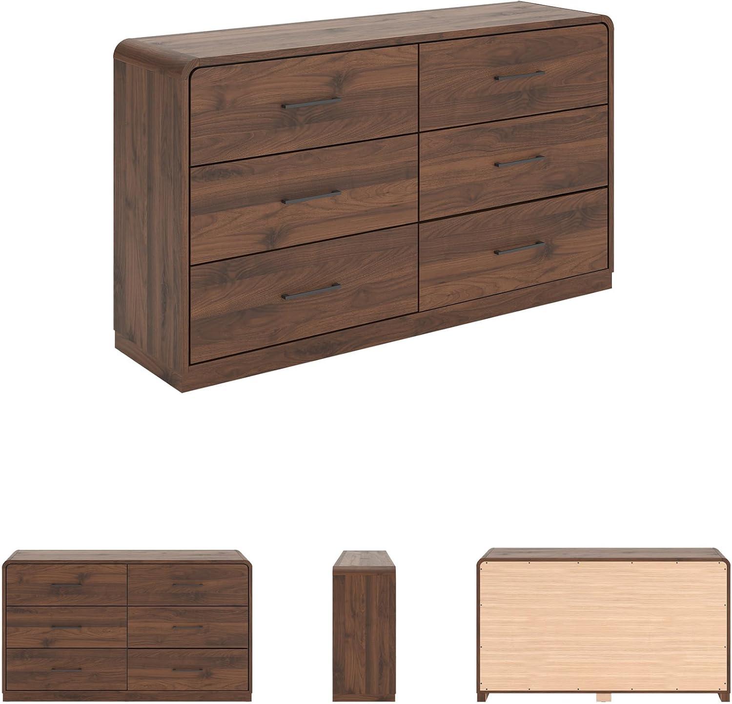QUALITY MADE: Made with MDF substrates & decorative laminate. Replicated walnut wood grain with high-low contrast for a rich brown wood tone. Hardware with black finish. 6 smooth-gliding drawers with dovetail construction & center mount drawer guides