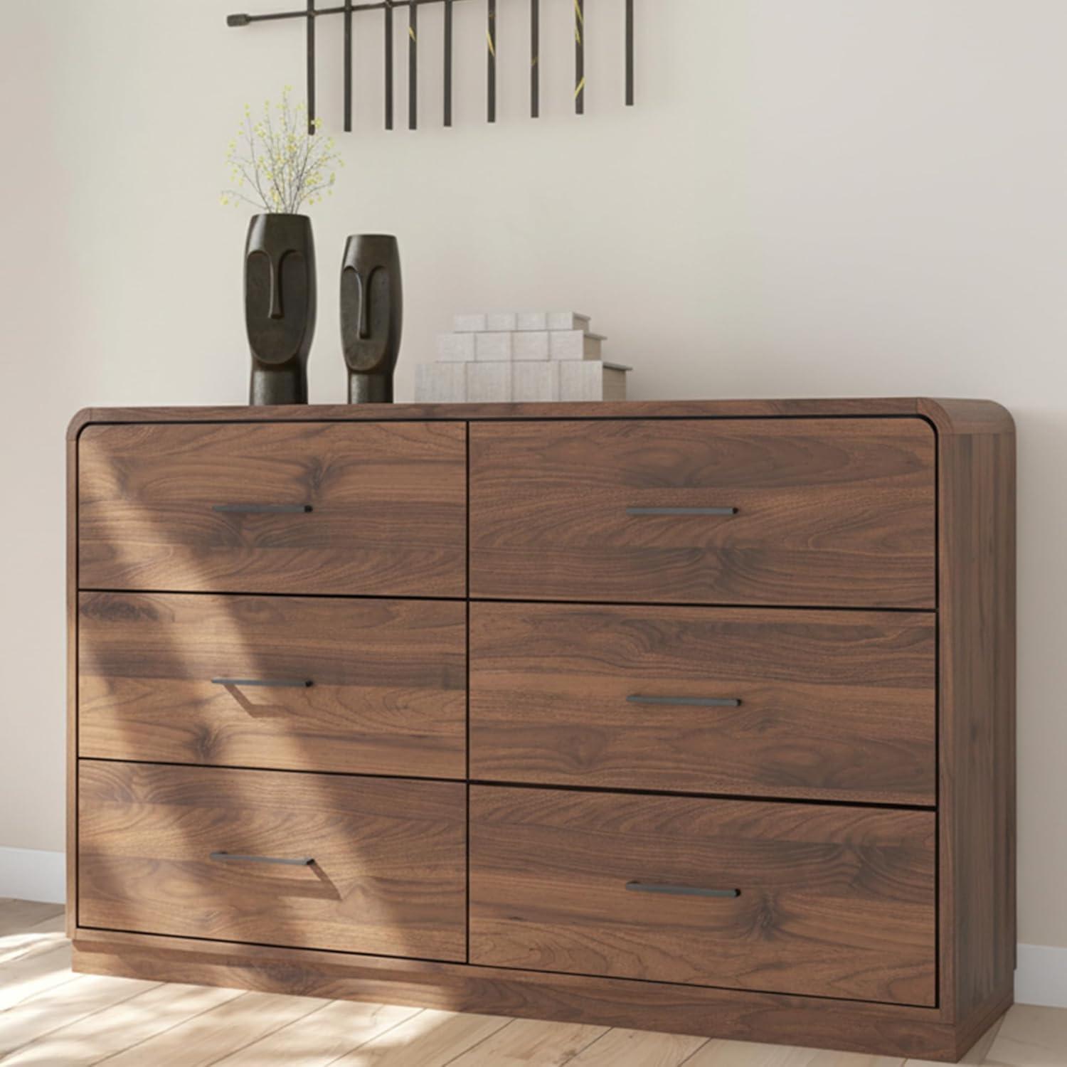 Signature Design by Ashley Chadworth Contemporary 6-Drawer Dresser with Walnut Finish, Dark Brown