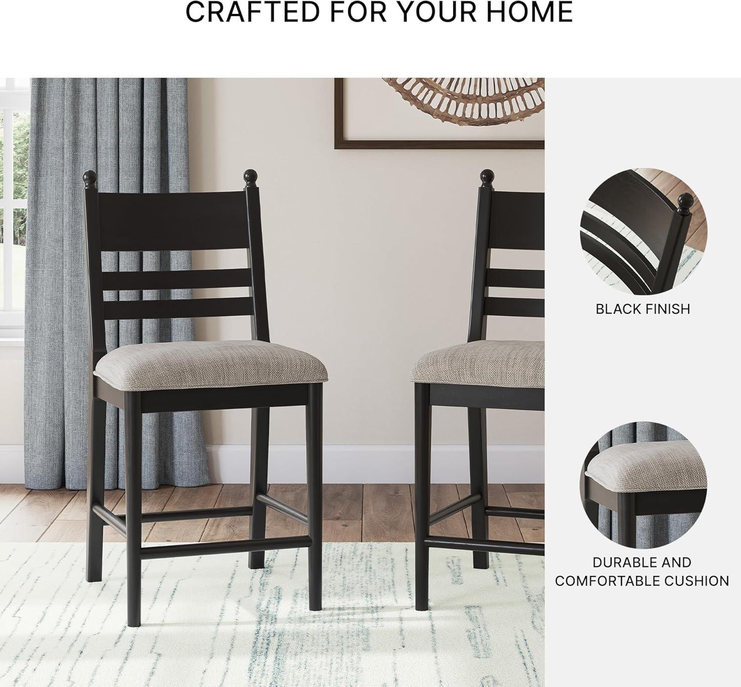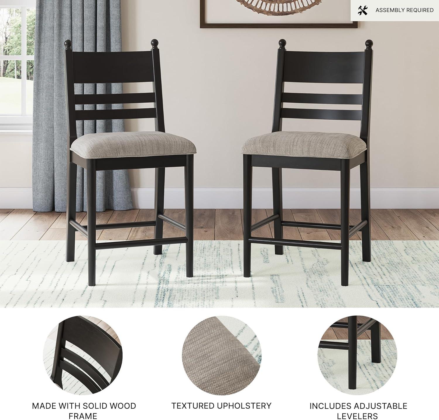 Signature Design by Ashley Chadworth Counter Height Bar Stool, Set of 2, Modern Farmhouse, Foam Cushion, Solid Wood Frame, 19.75″ W x 23.13″ D x 41.63″ H, Brown(Black)