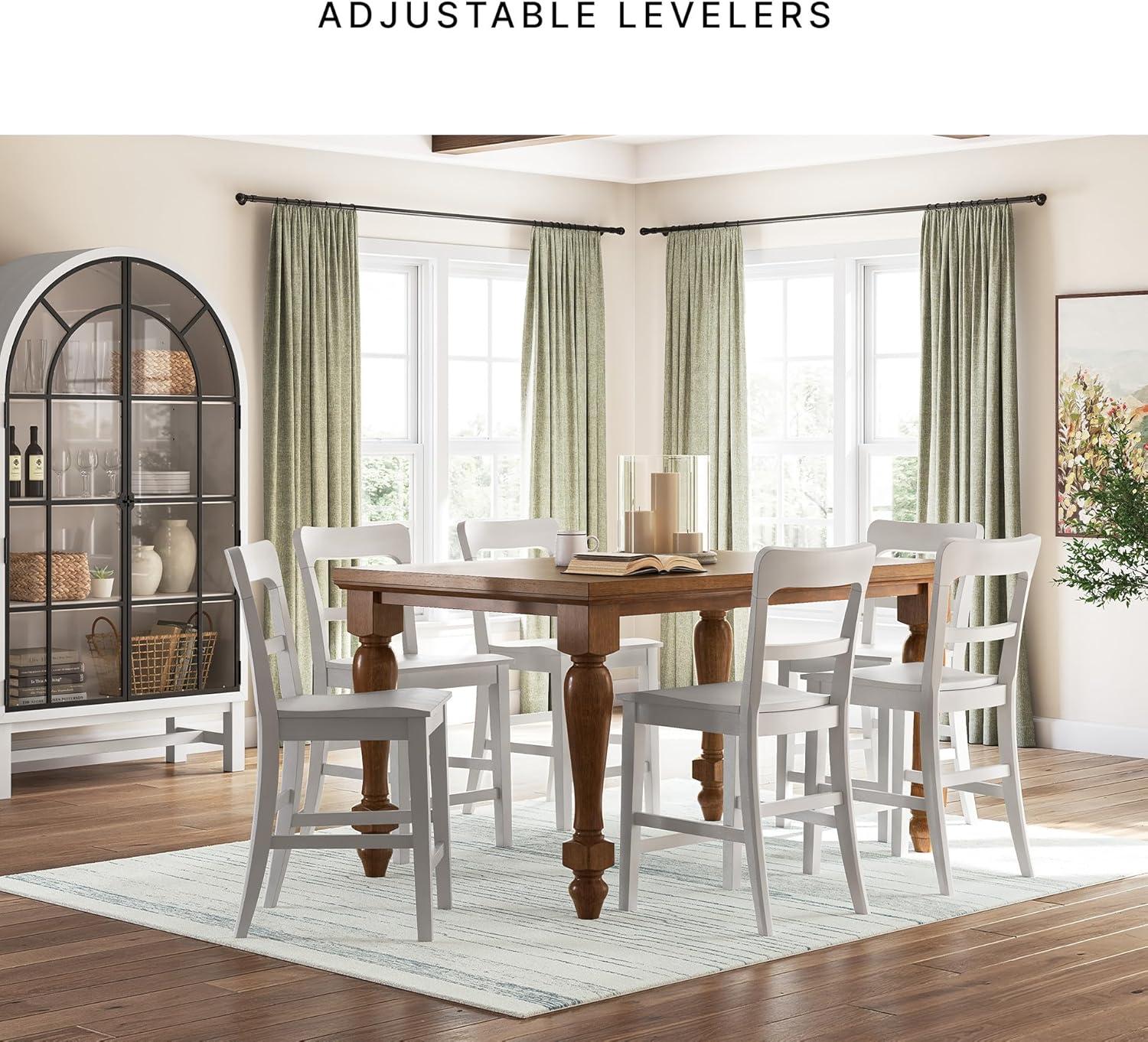 QUALITY CRAFTED: Made with solid wood frame. Antiqued white finish. Includes adjustable levelers