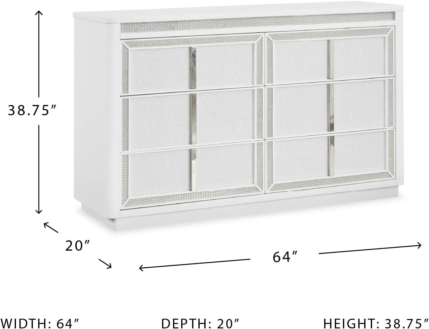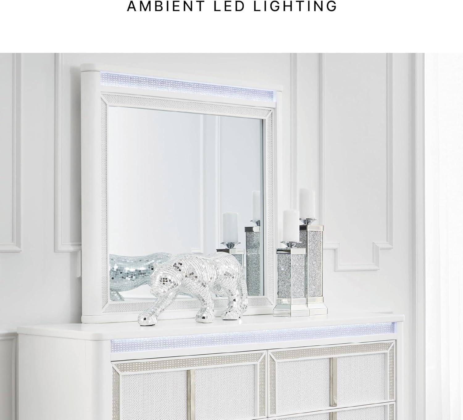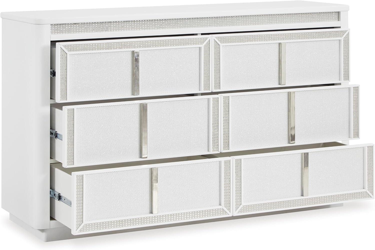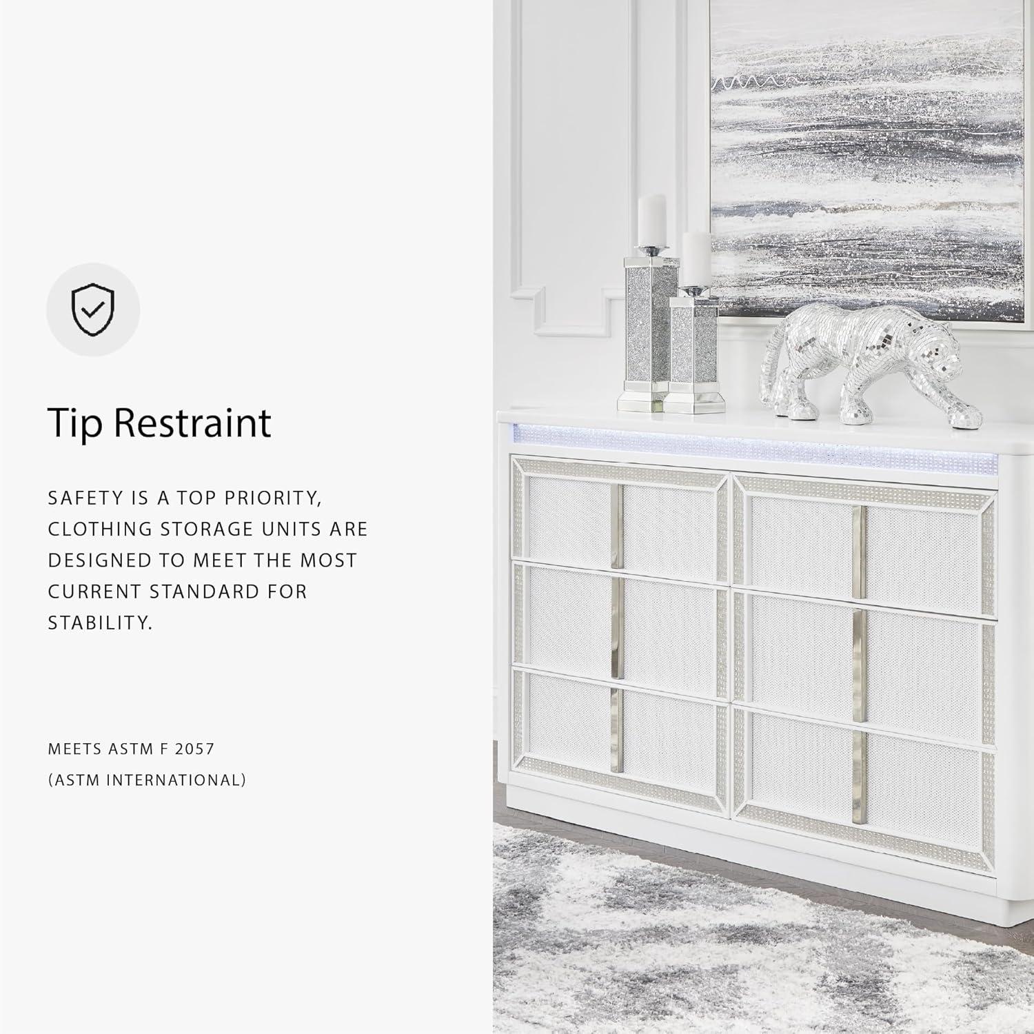 Signature Design by Ashley Chalanna Contemporary 6-Drawer Dresser with LED Lighting, Felt-Lined Top Drawer and Safety Stop, White