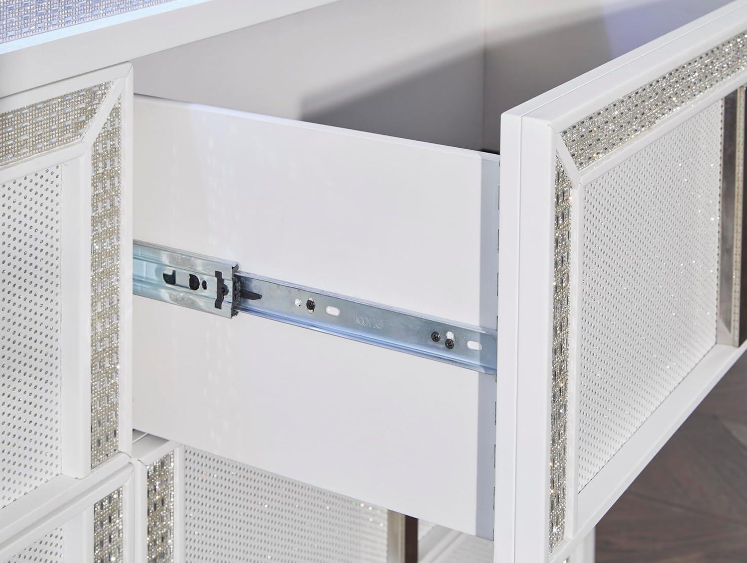 6-DRAWER DRESSER: Transform your bedroom with this dresser. Its modern design & glam details create a sophisticated retreat. LED-lighting & rhinestone-framed drawers add style and practical storage