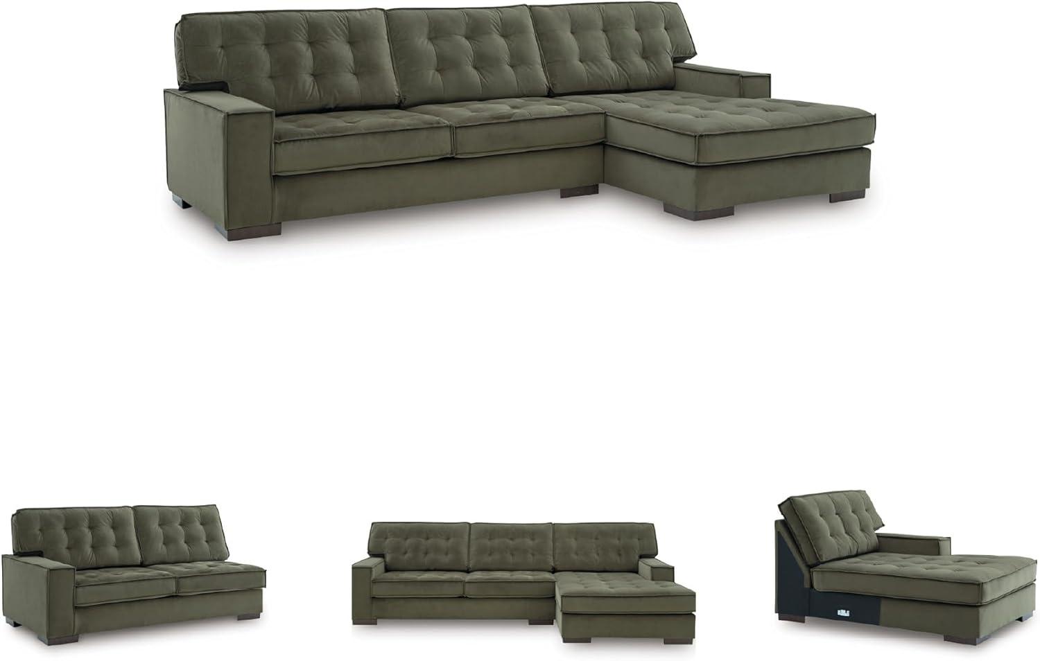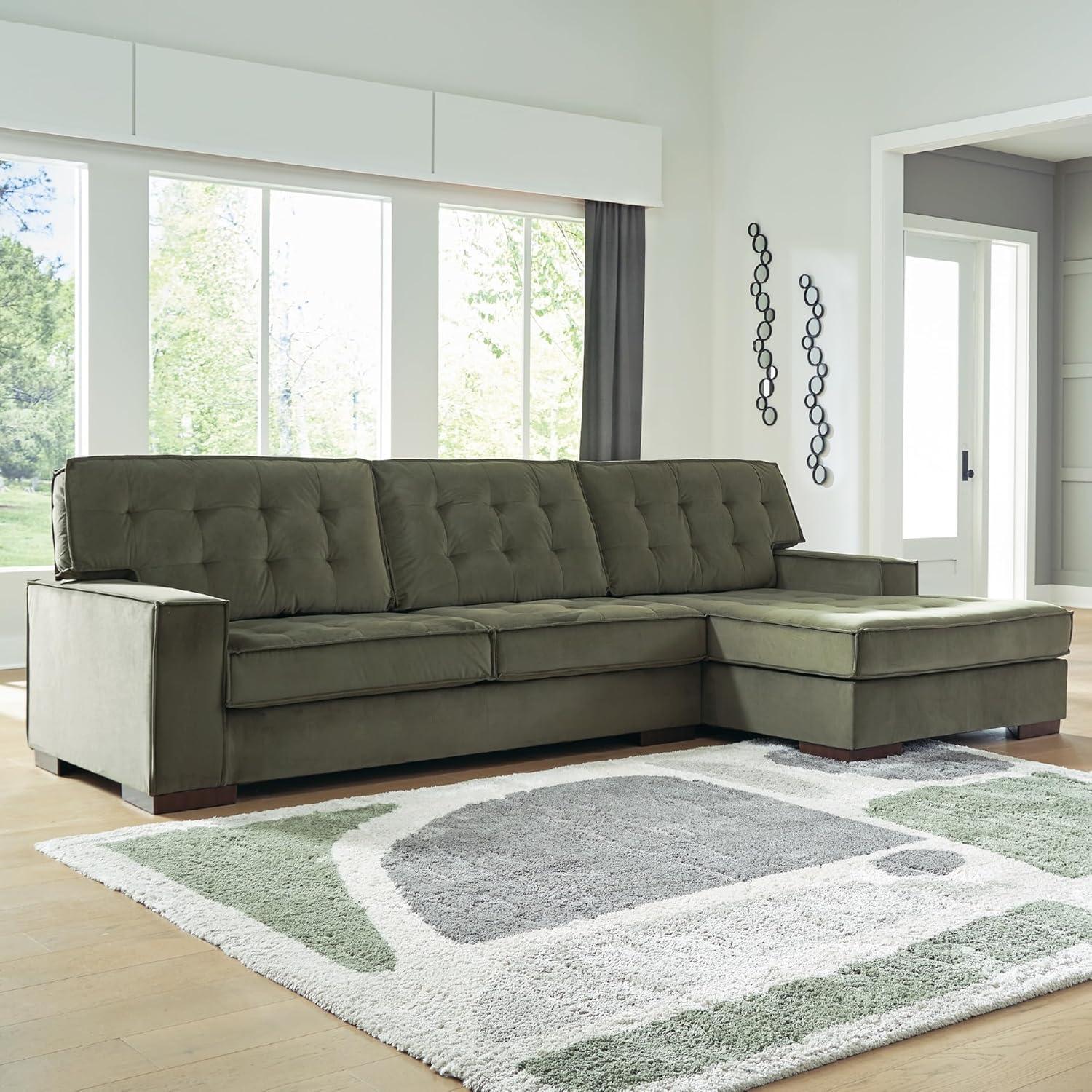 Signature Design by Ashley Chalcombe L-Shape Right-Arm Facing Mid-Century Modern 2-Piece Sectional with Chaise, Reversible Cushion and Tufted Cushion, Green(Right Hand 2-Piece Sectional with Chaise)