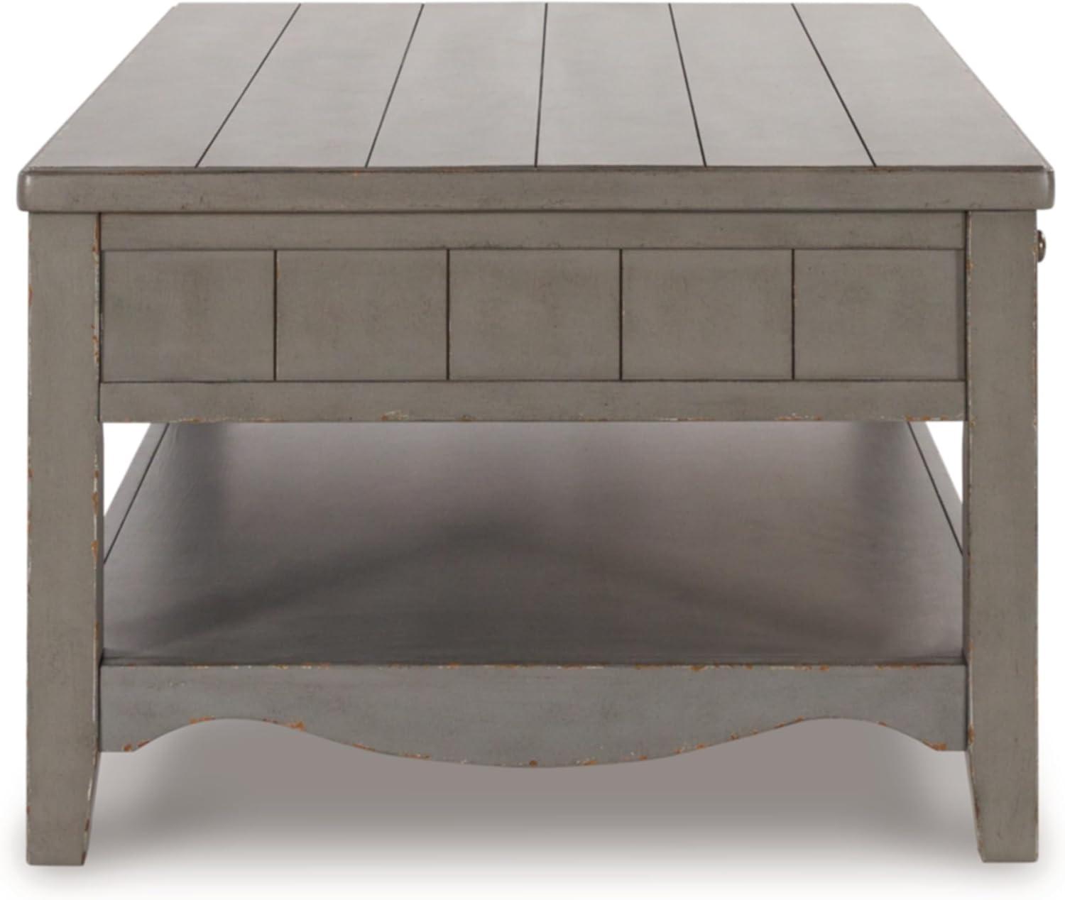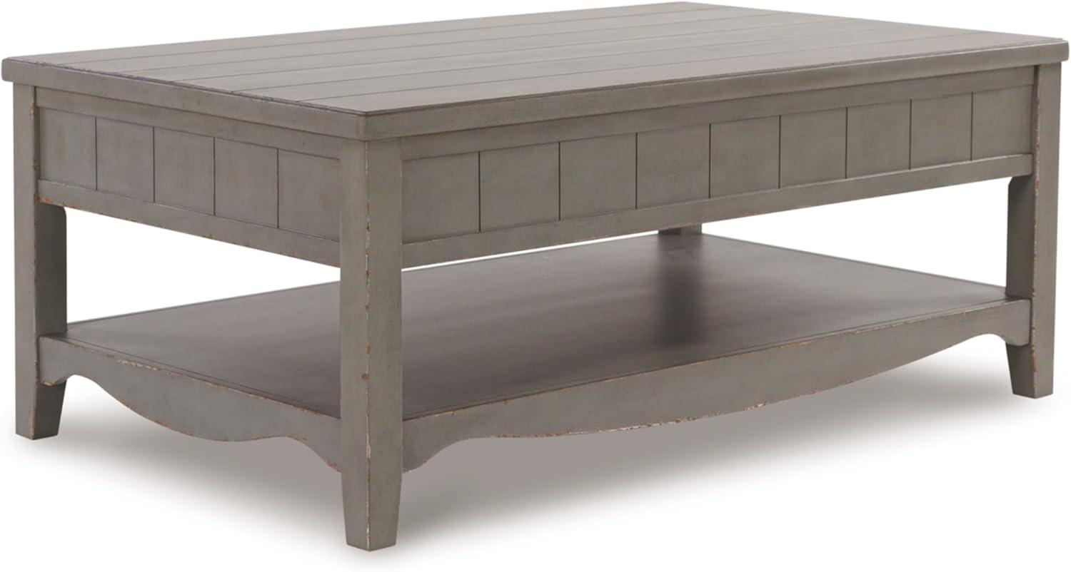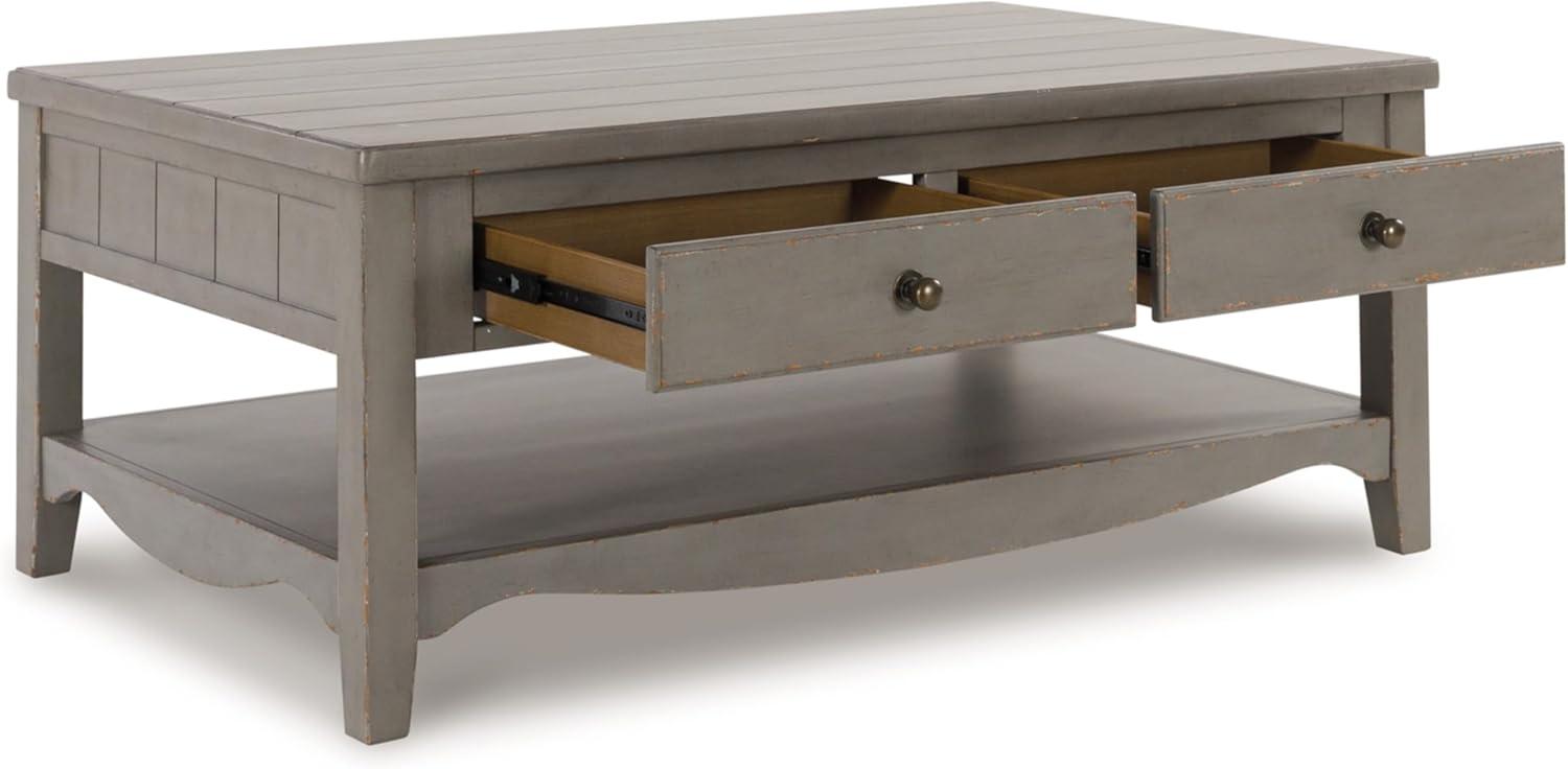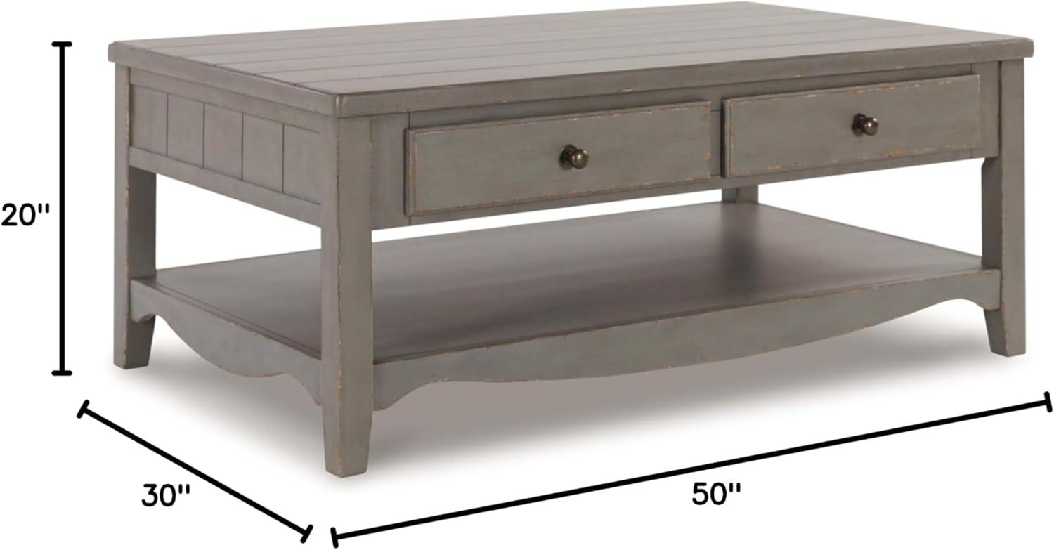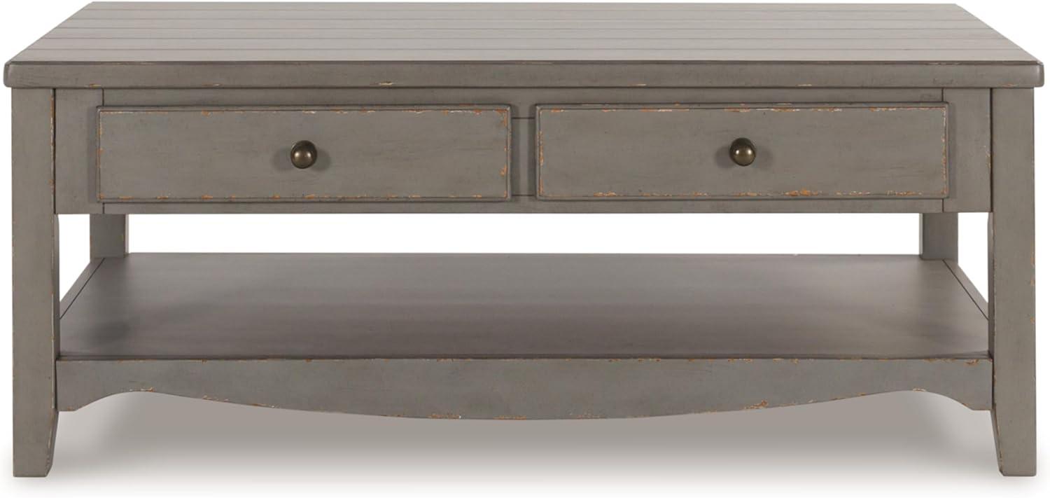 Signature Design by Ashley Charina Classic Cocktail Table with 2 Drawers and Open Lower Shelf, Light Gray