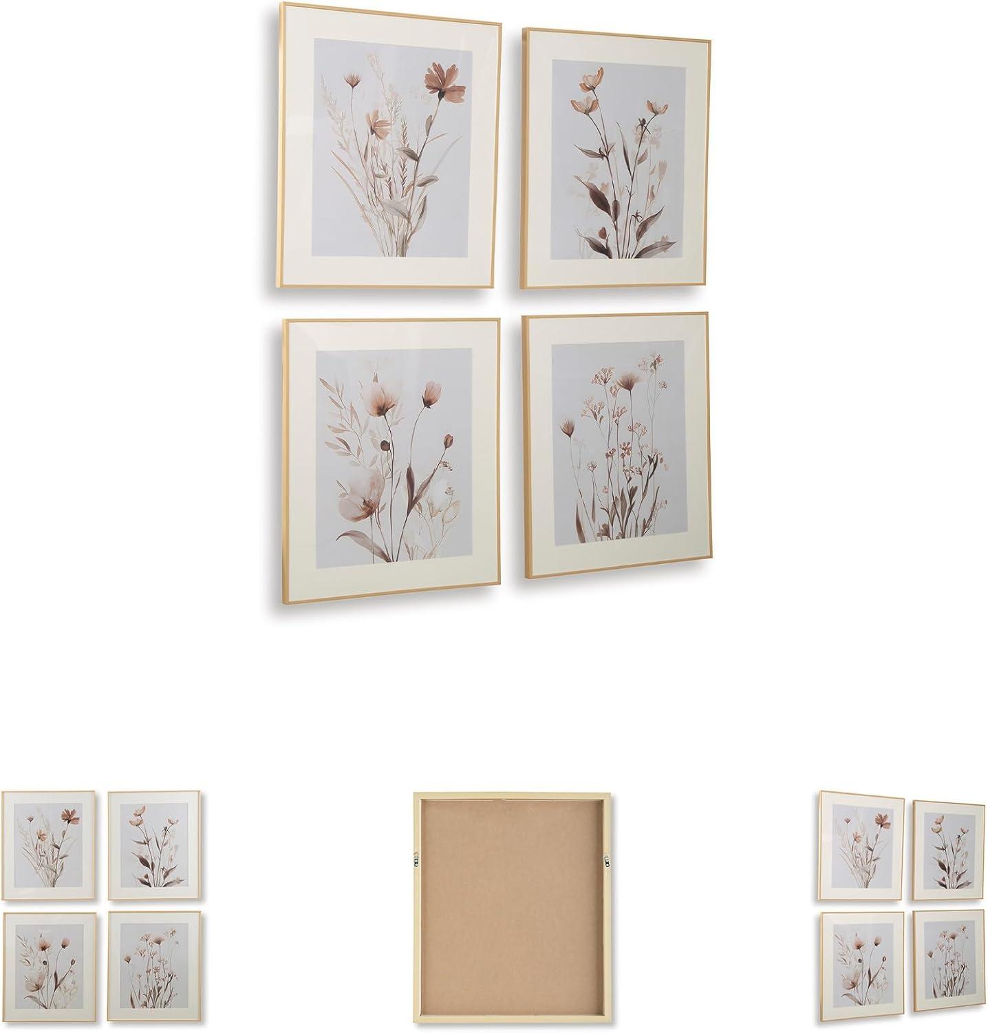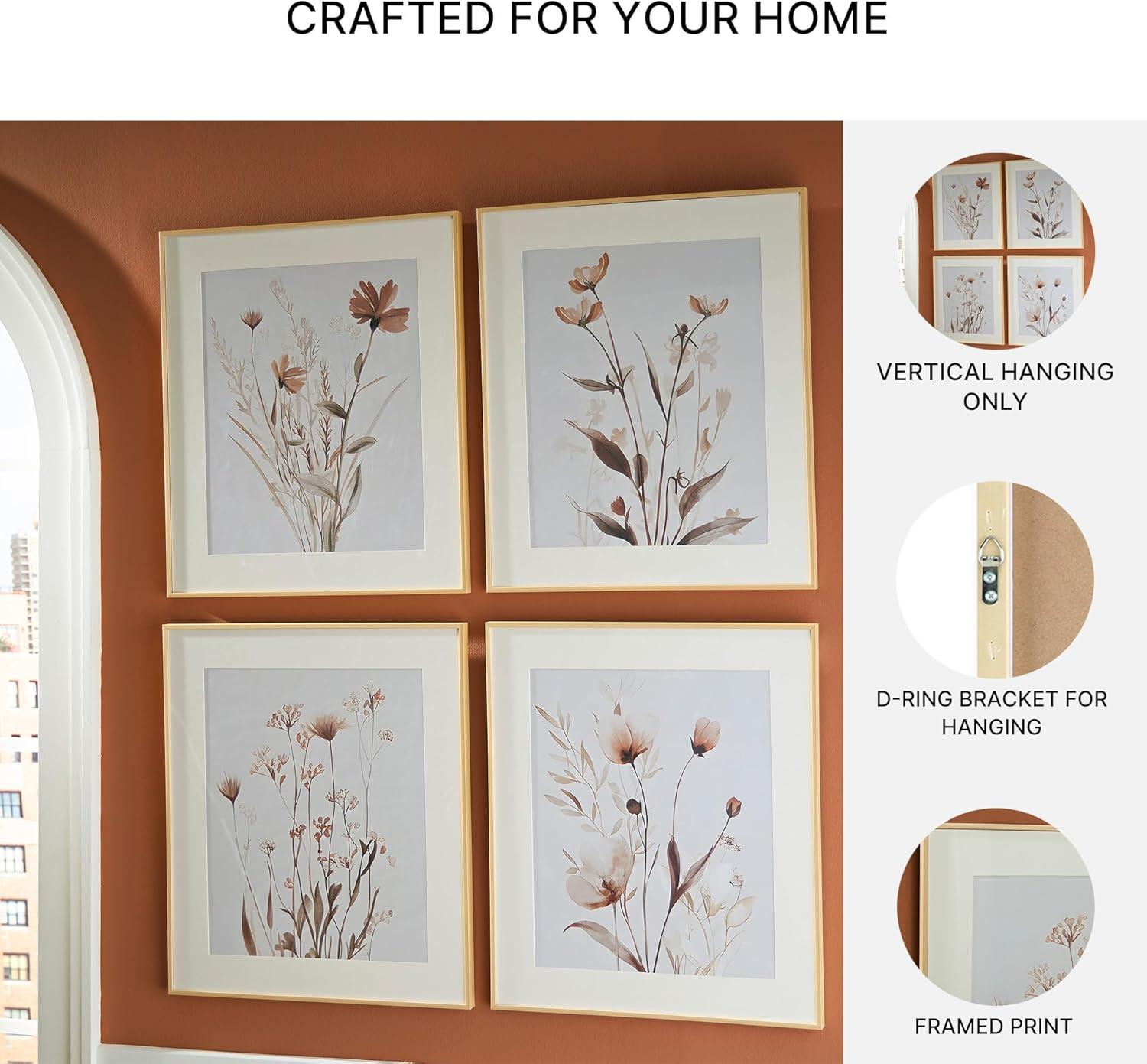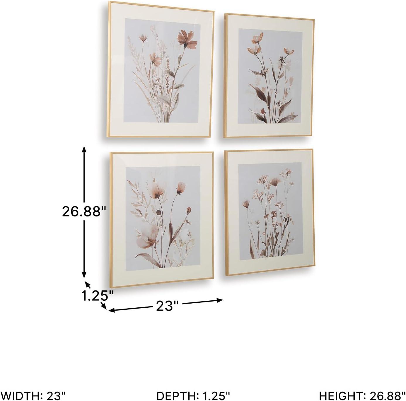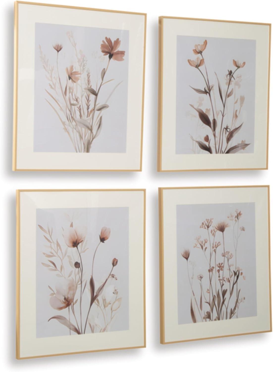 4-PIECE WALL ART SET: Bask in the beauty of botanical style. This wall art set is well-suited to casual spaces, with each piece featuring a unique floral design in muted beige, gray and blush tones. Hang together to make a charming statement