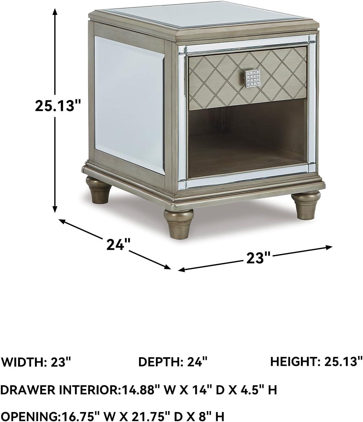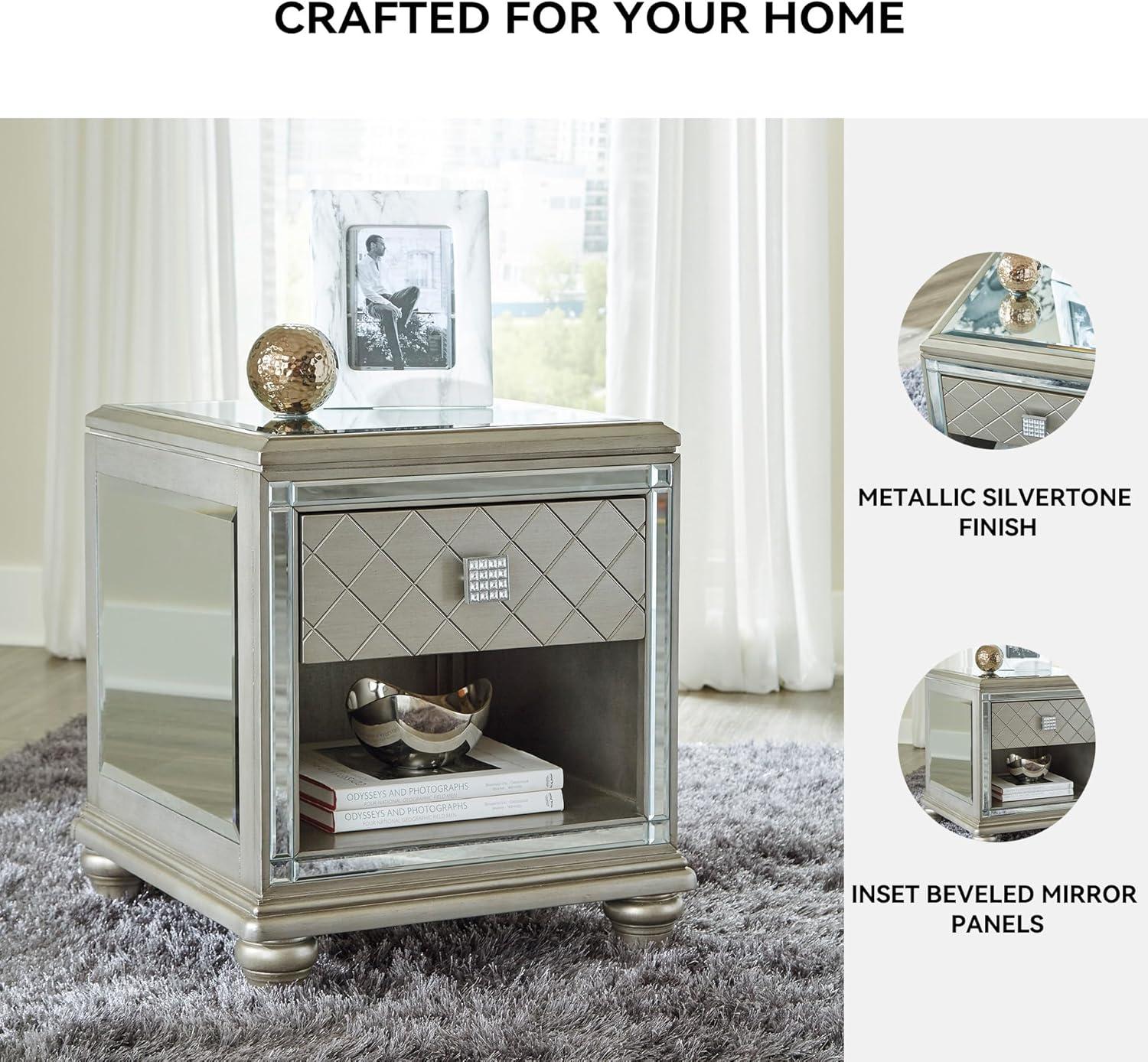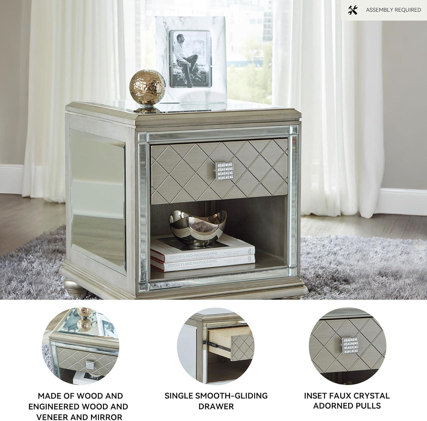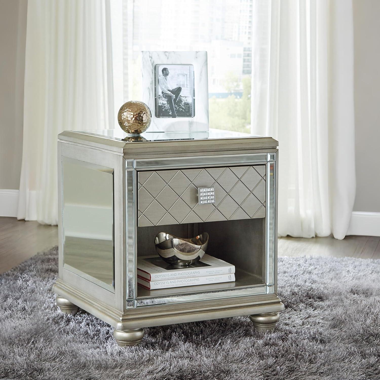 Signature Design by Ashley Chevanna Glam Beveled Mirrror Faux Crystal End Table, Silver