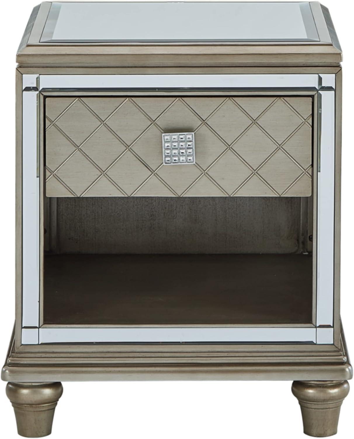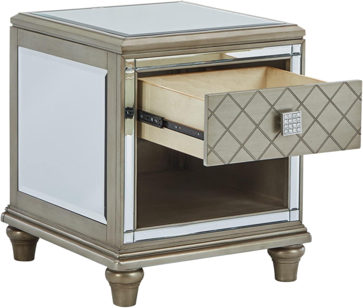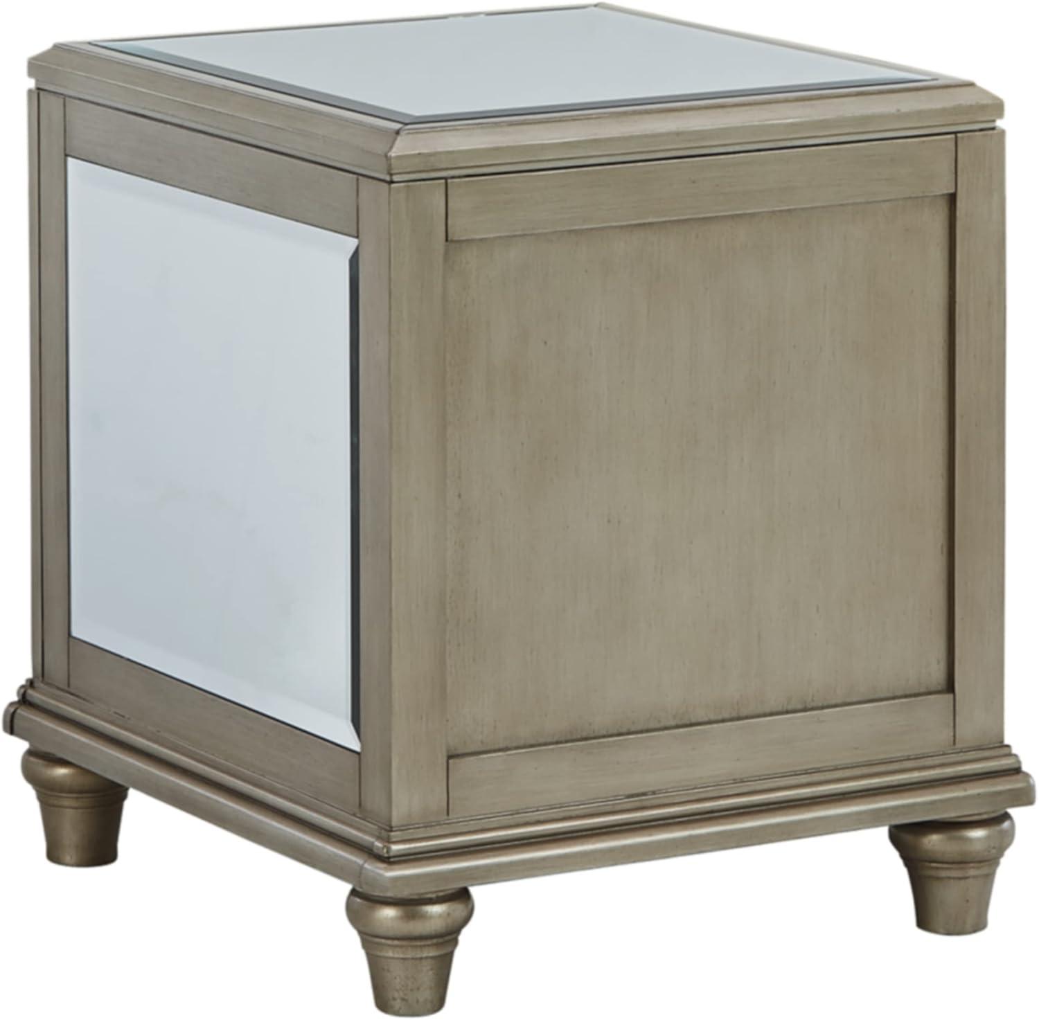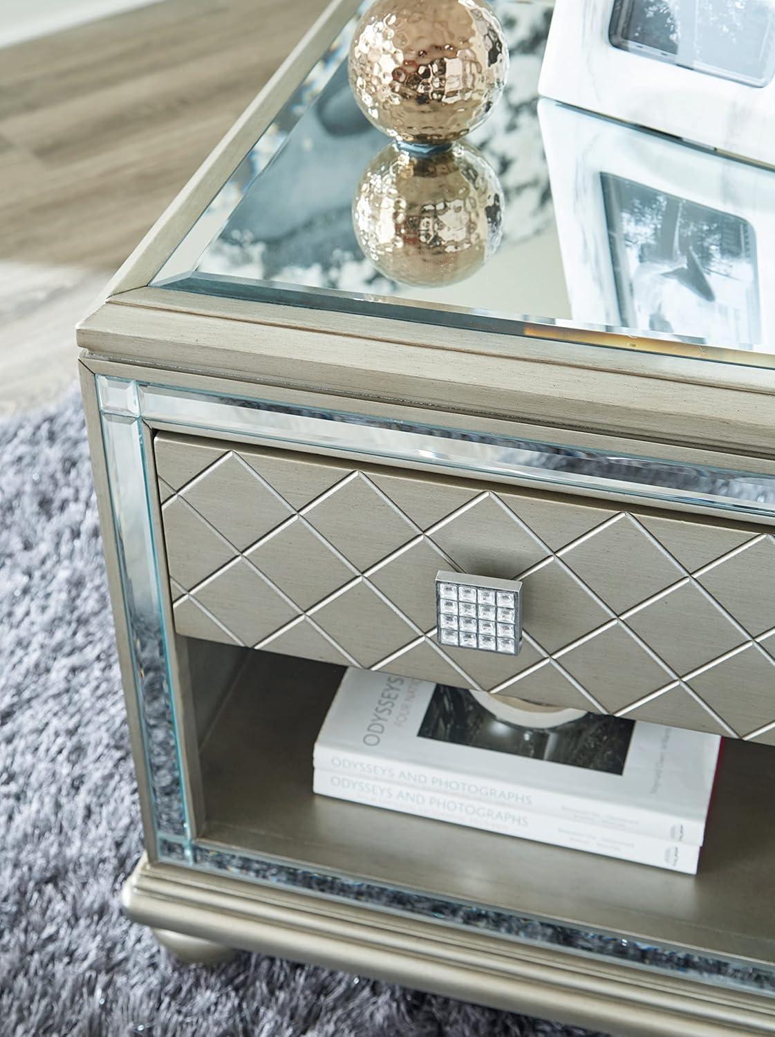 Signature Design by Ashley Chevanna Glam Beveled Mirrror Faux Crystal End Table, Silver