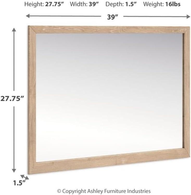 Signature Design by Ashley Cielden Casual Framed Bedroom Mirror for Wall and Dresser Mount, Wood, 38.86″ W x 1.3″ D x 27.68″ H, Light Brown(Tan)