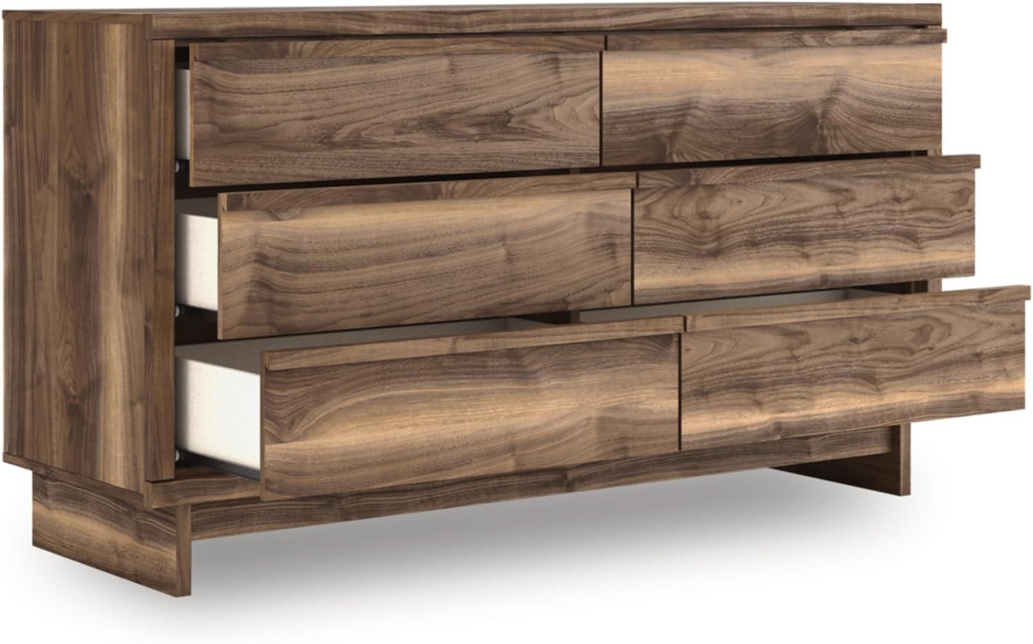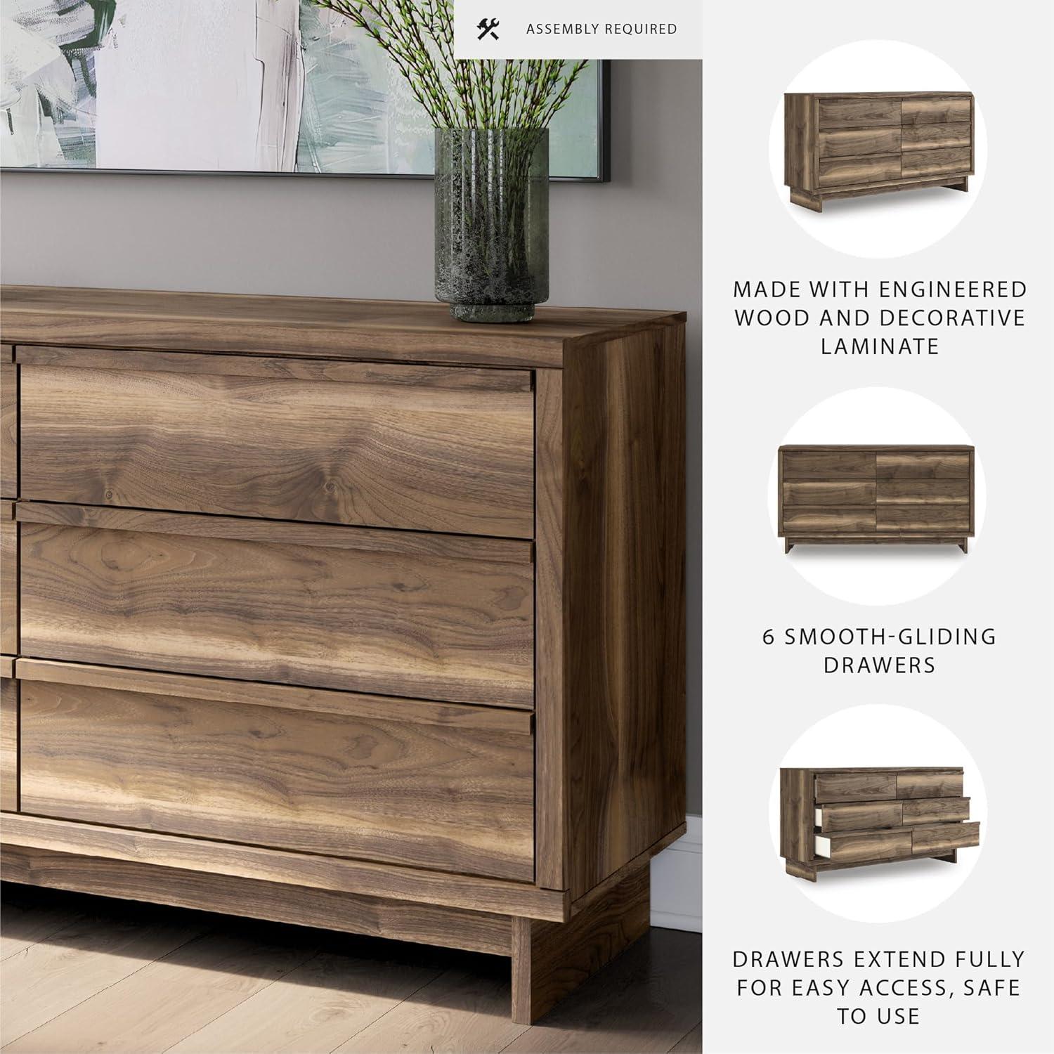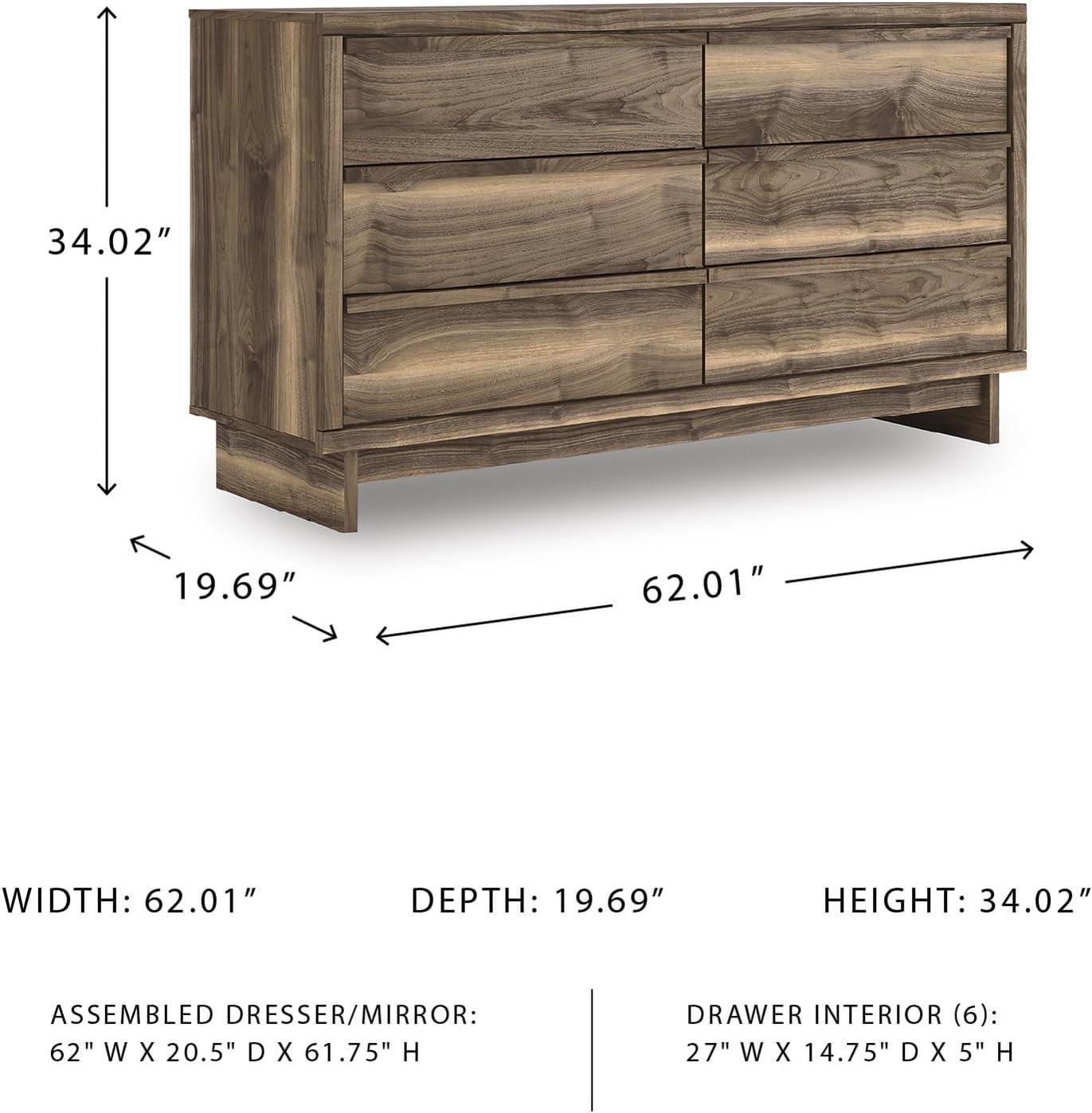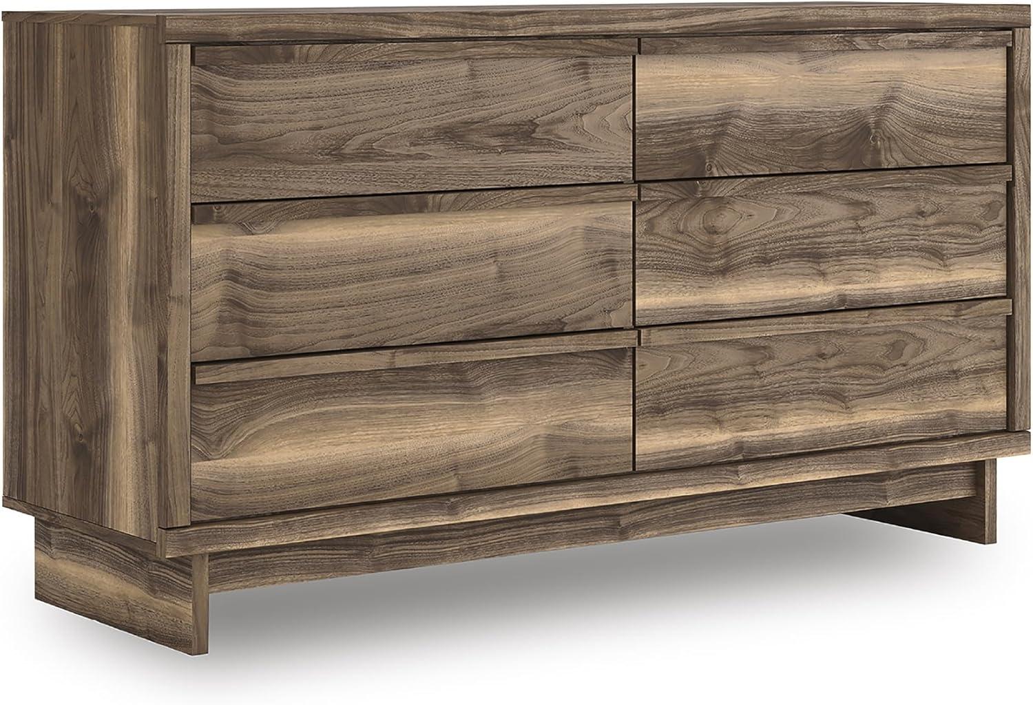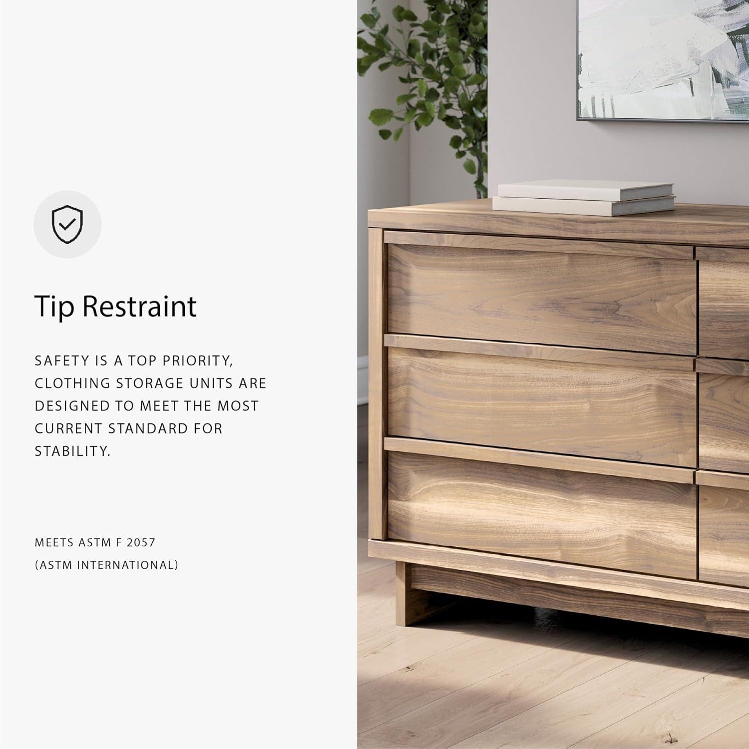 Signature Design by Ashley Cielden French Country 6-Drawer Dresser and Mirror with Safety Stop, Light Brown(Rustic Brown)