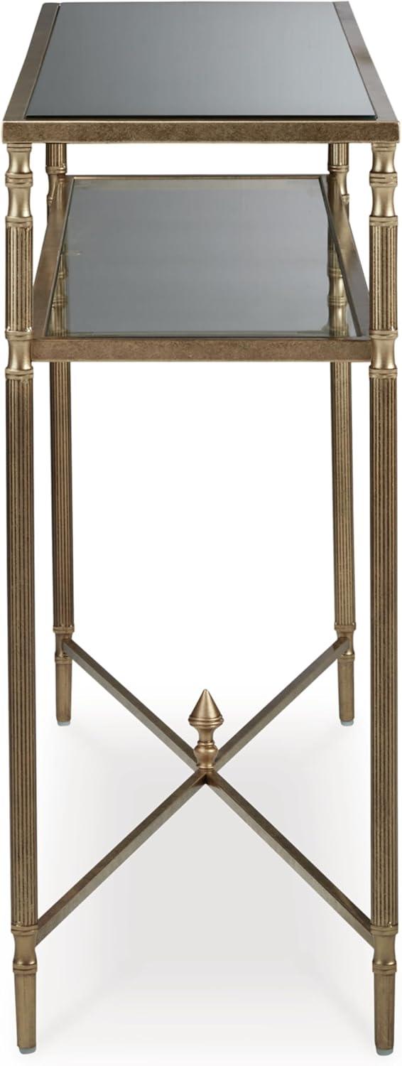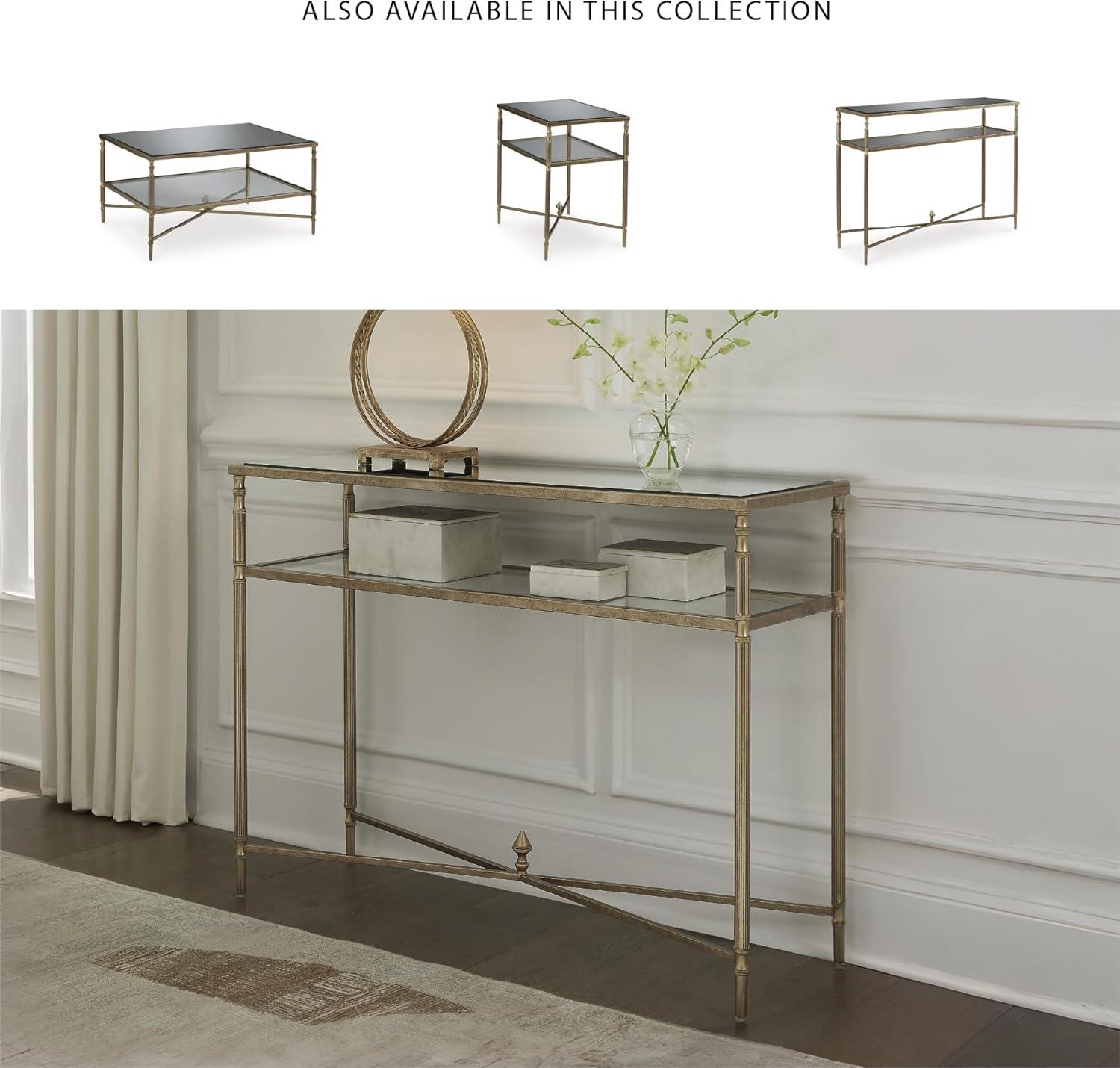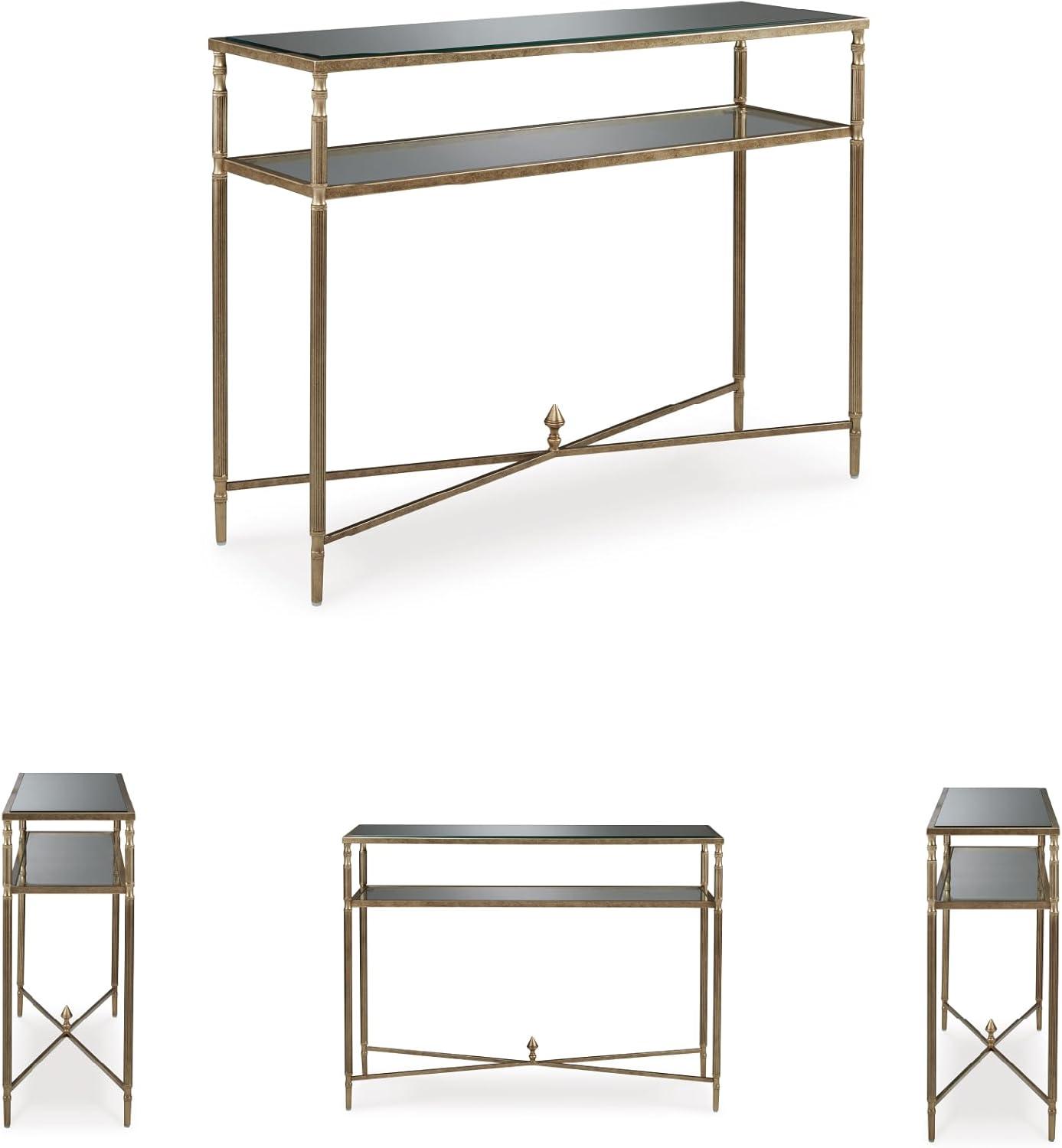 Signature Design by Ashley Cloverty Industrial Mirror-Tabletop Sofa Table with Round Legs and Glass Shelf, Metallic