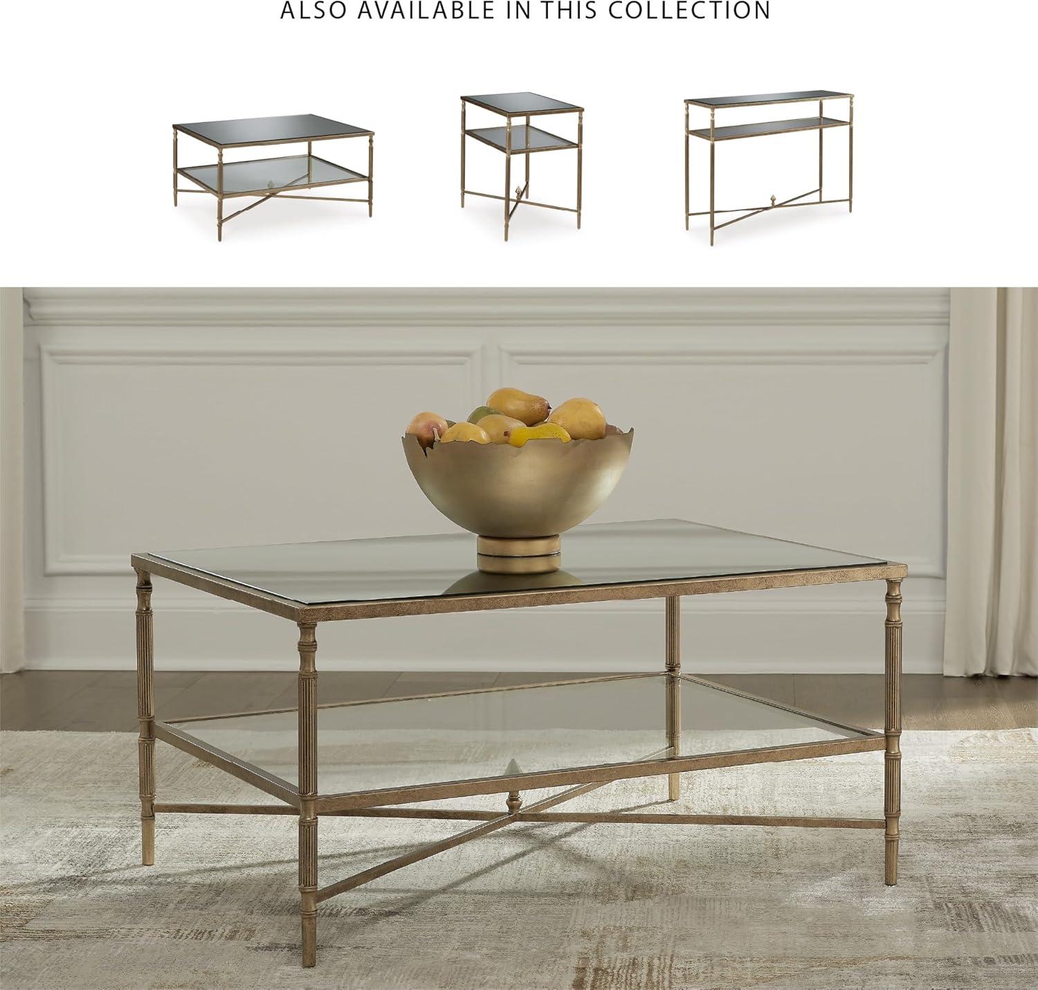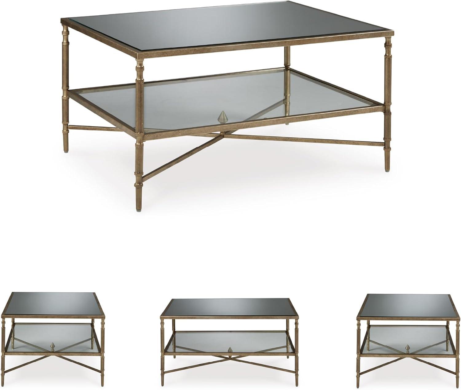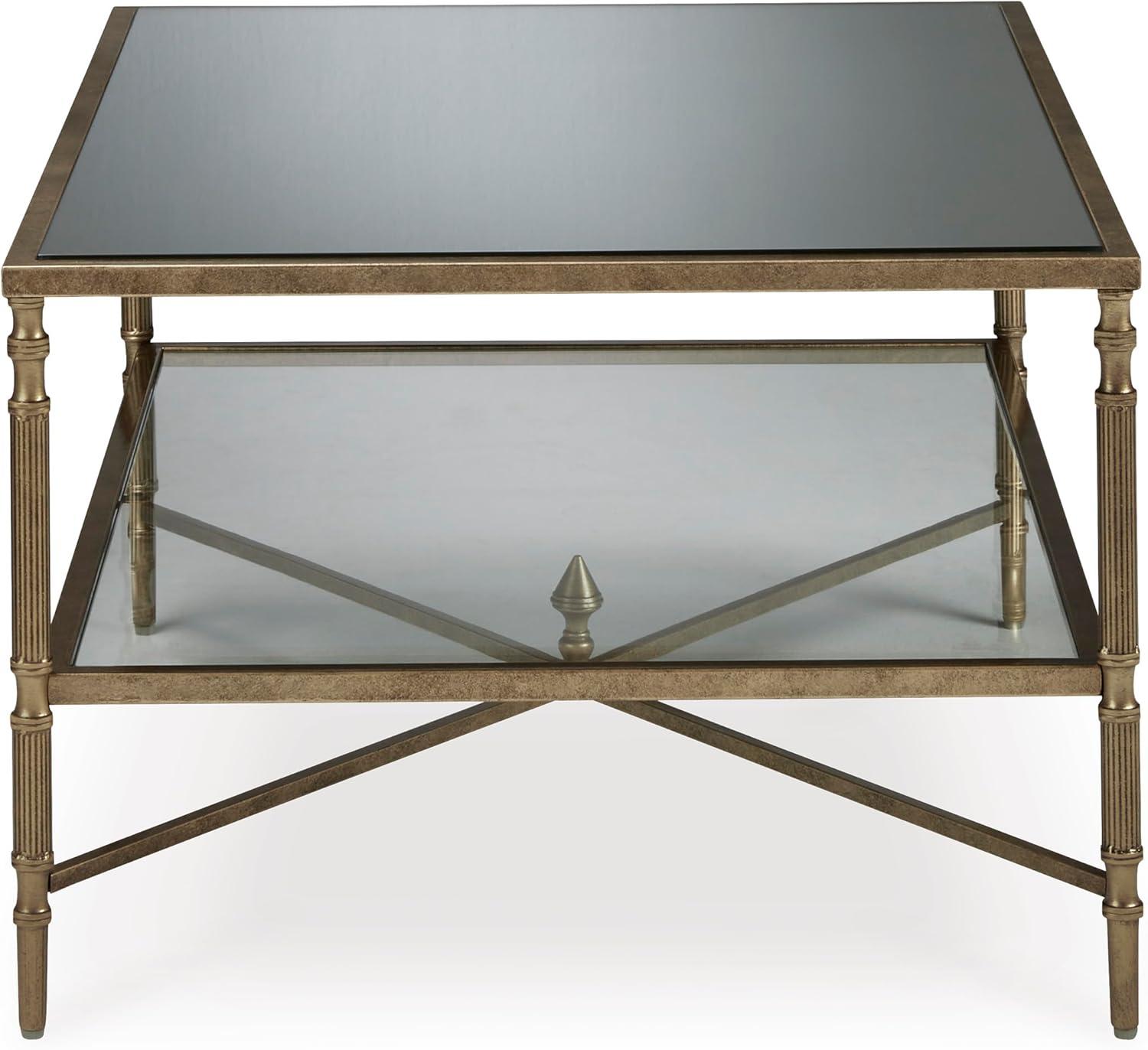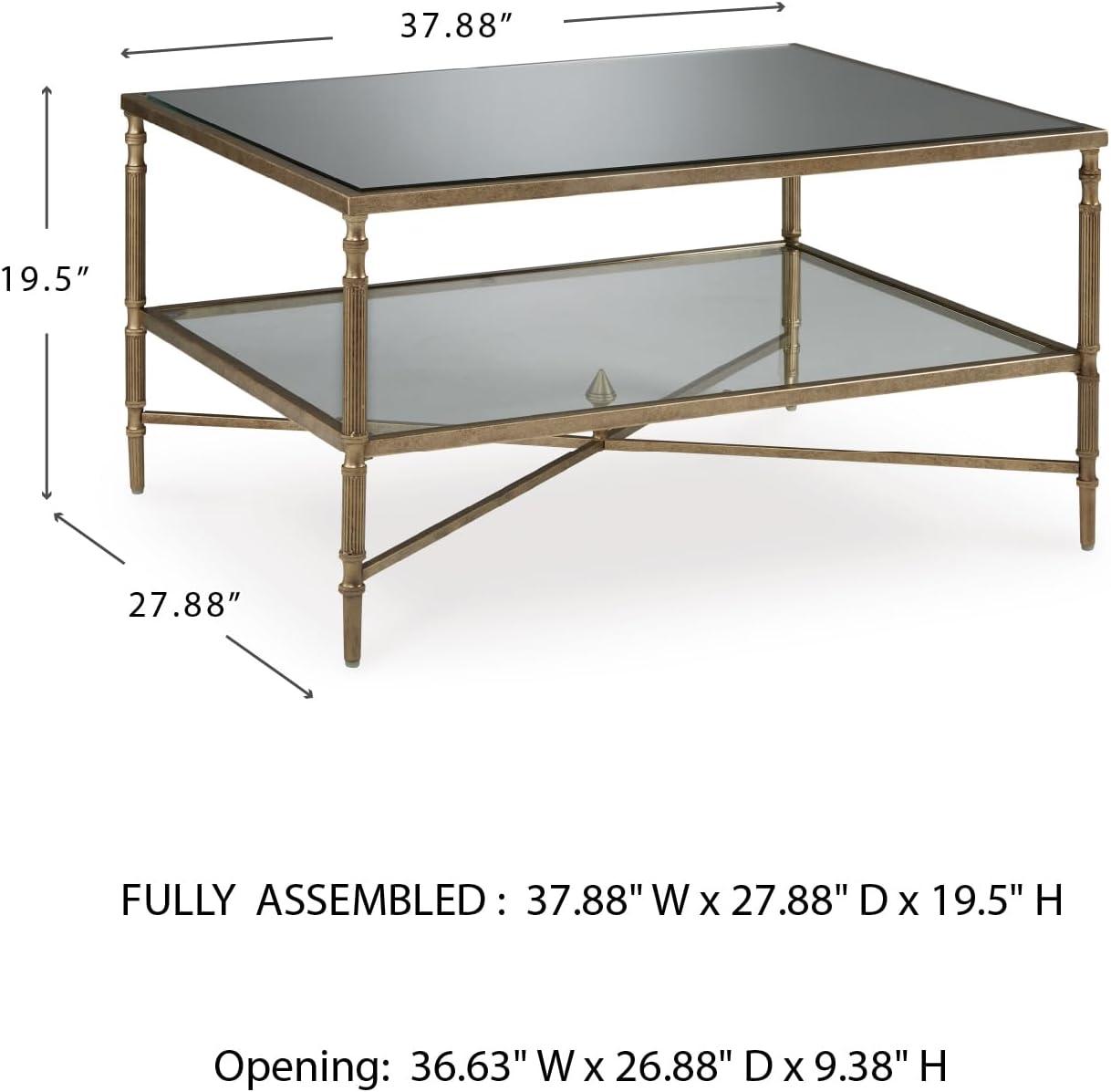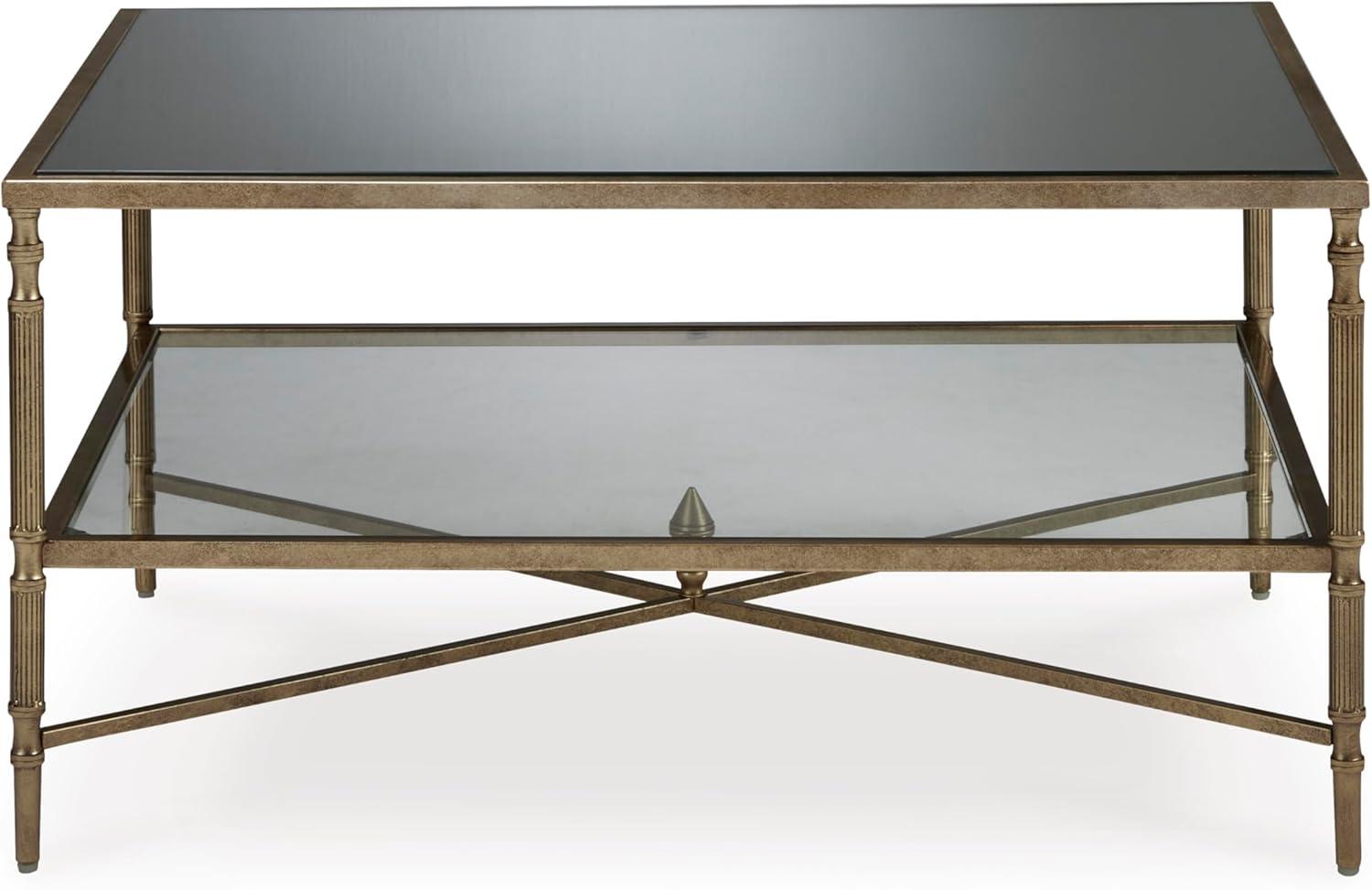 Signature Design by Ashley Cloverty Mid-Century Coffee Table with 1 Glass Shelf and Embellished Legs, Metallic
