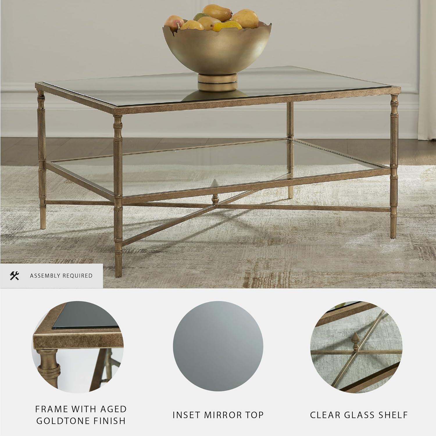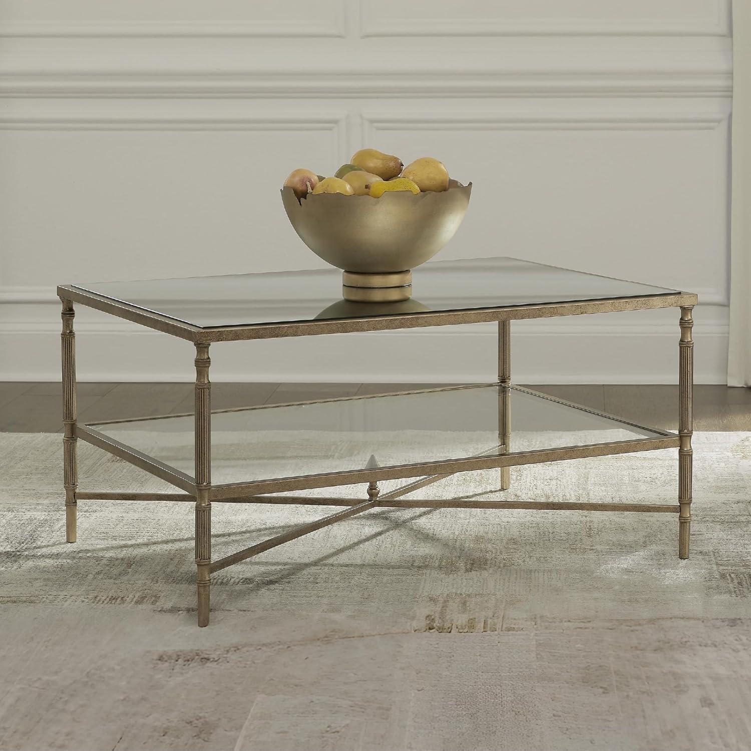 RECTANGULAR COFFEE TABLE: This table's details are timeless classics. The aged goldtone coloration is the essence of relaxed elegance. An underlying shelf adds style, substance and functionality