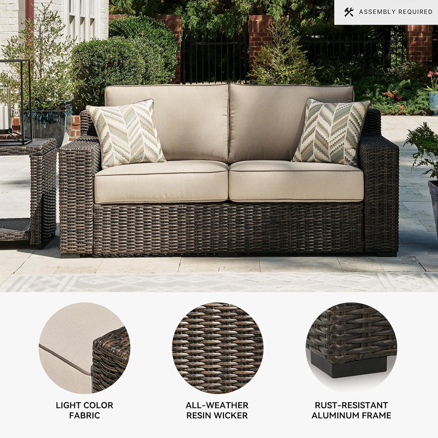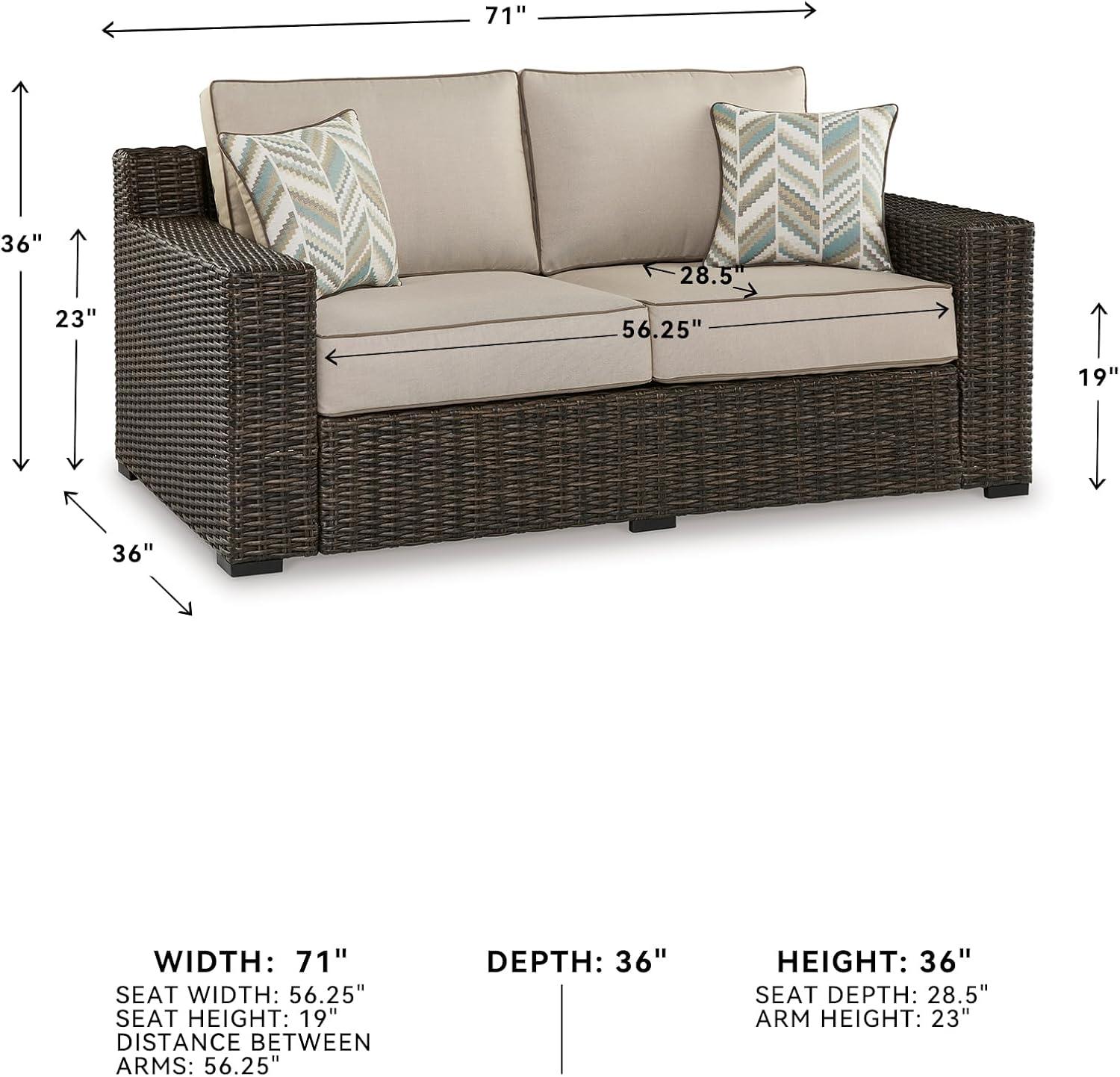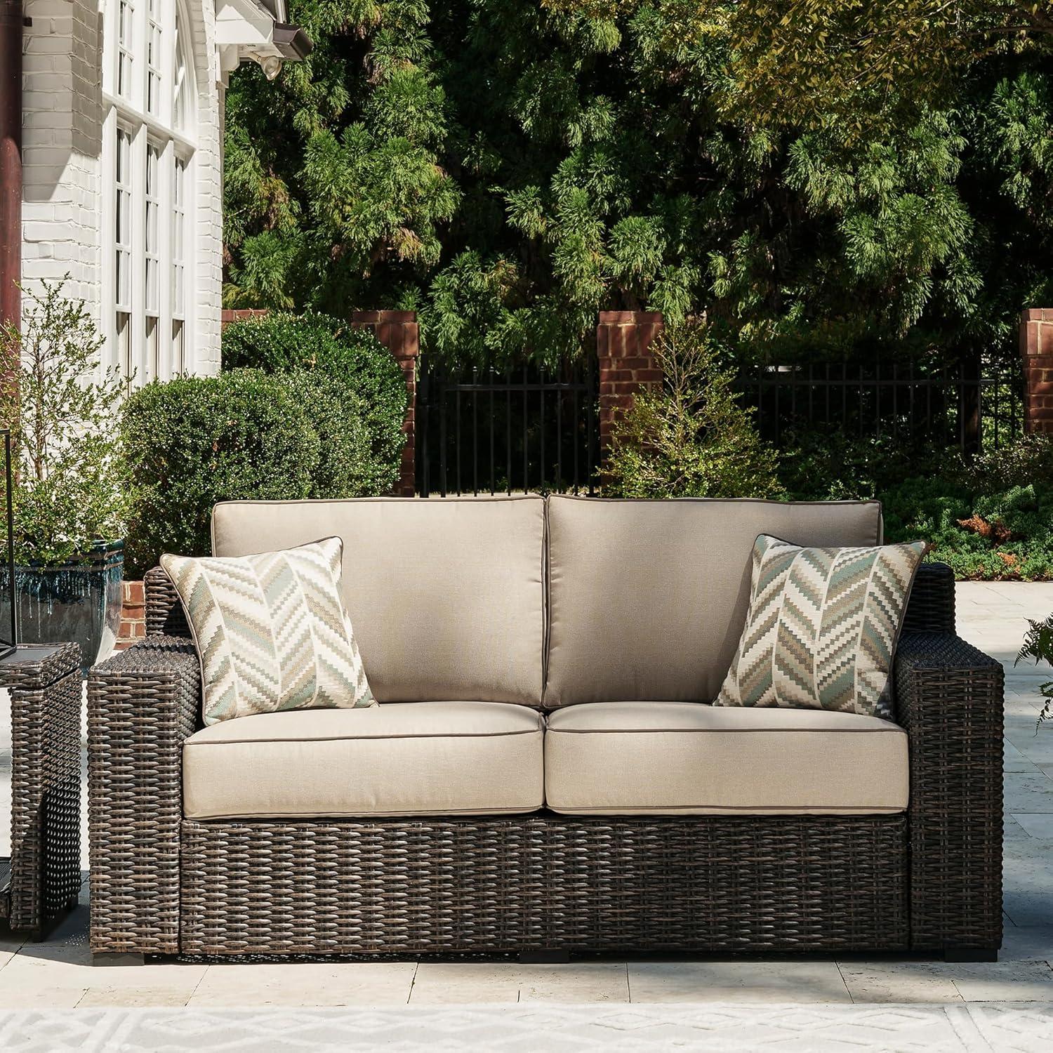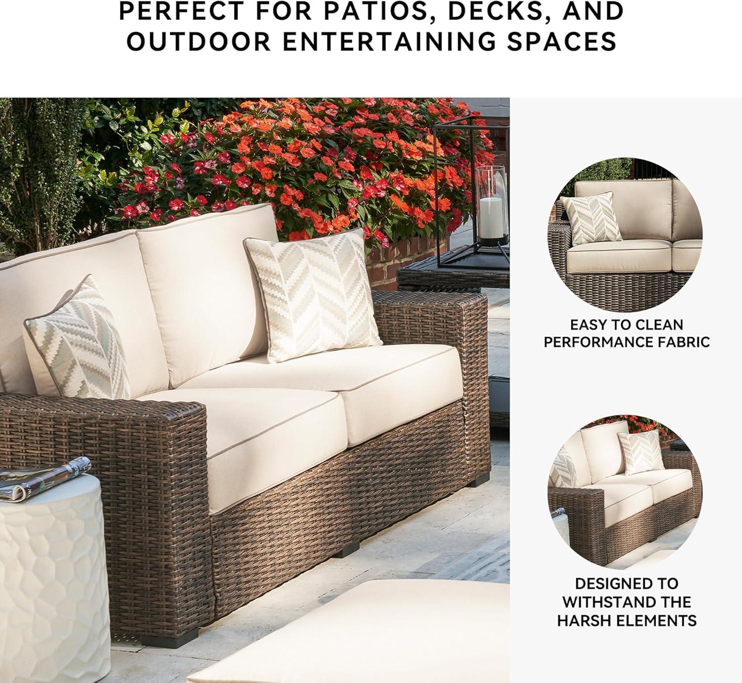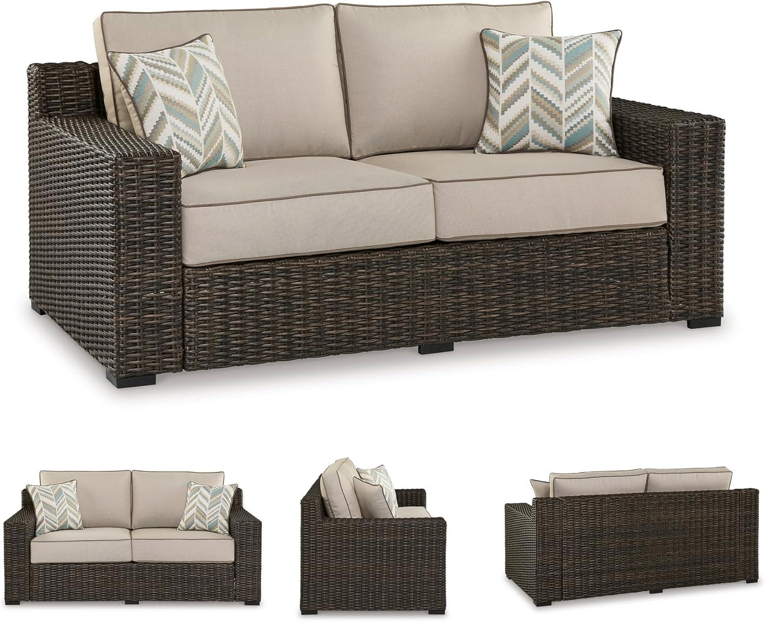 Signature Design by Ashley Coastline Bay Casual Outdoor Armless Chaise Lounge with Cushion and Adjustable Height, Beige & Dark Brown(Outdoor Loveseat with Cushion)