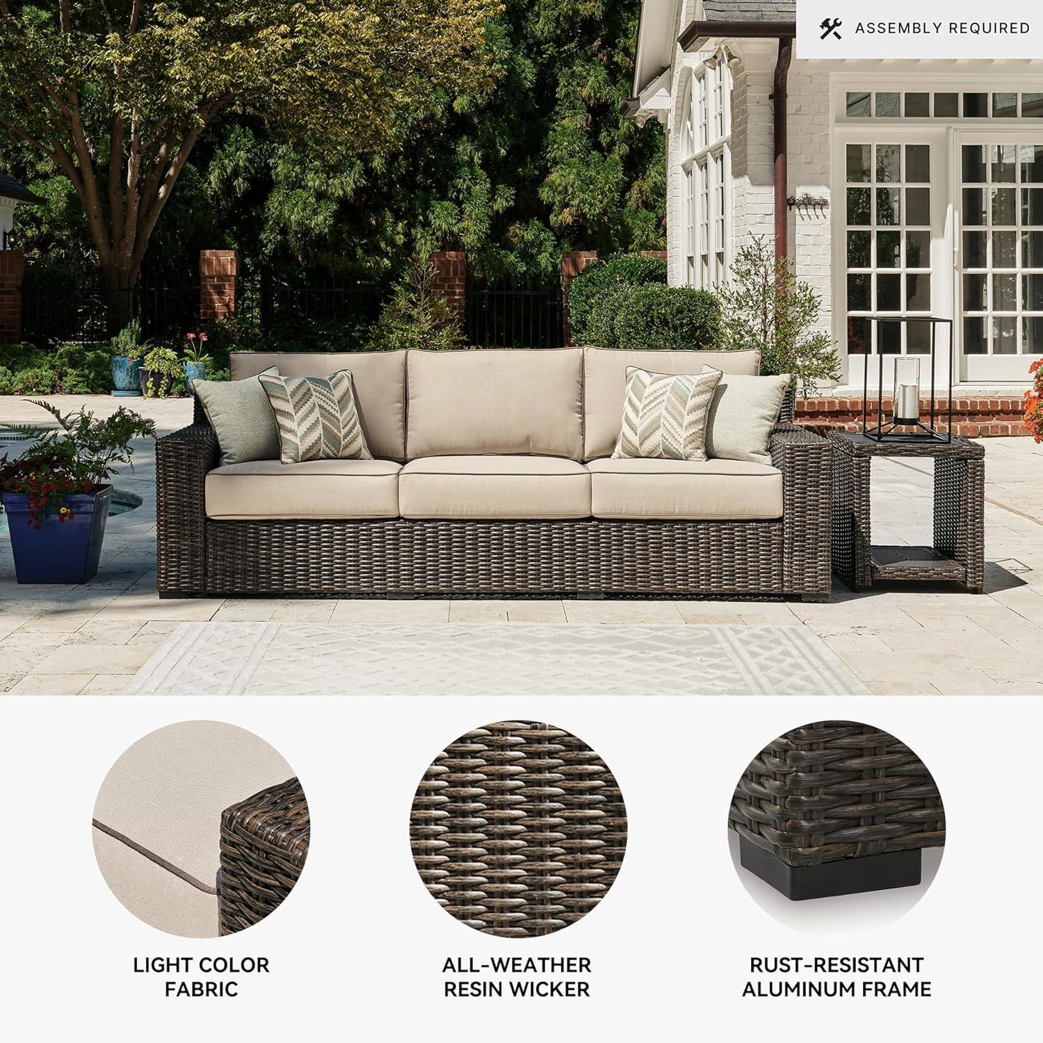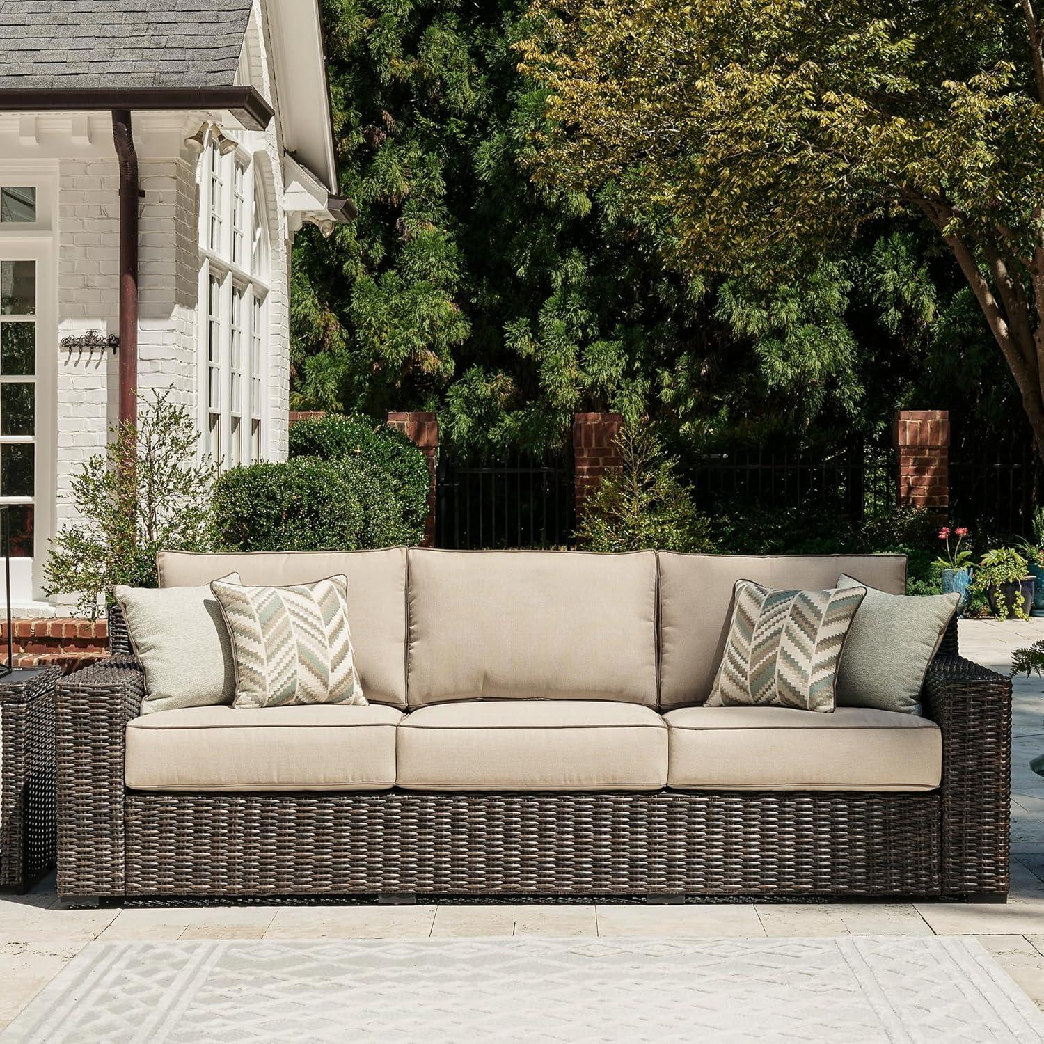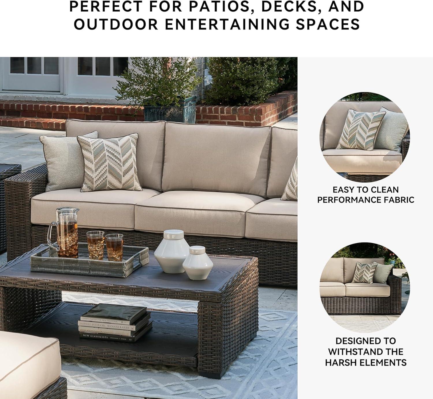 Signature Design by Ashley Coastline Bay Casual Outdoor Armless Chaise Lounge with Cushion and Adjustable Height, Beige & Dark Brown(Outdoor Sofa with Cushion)