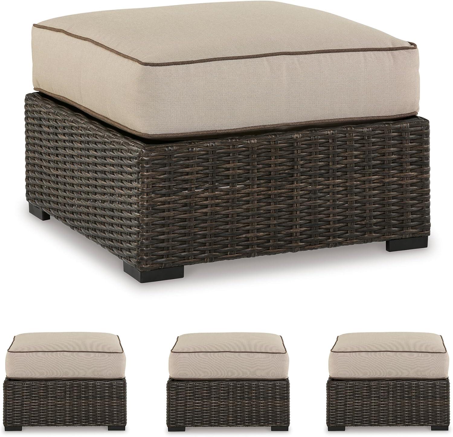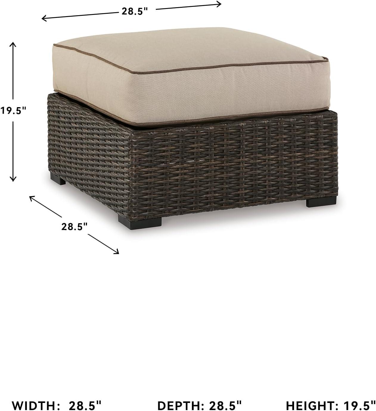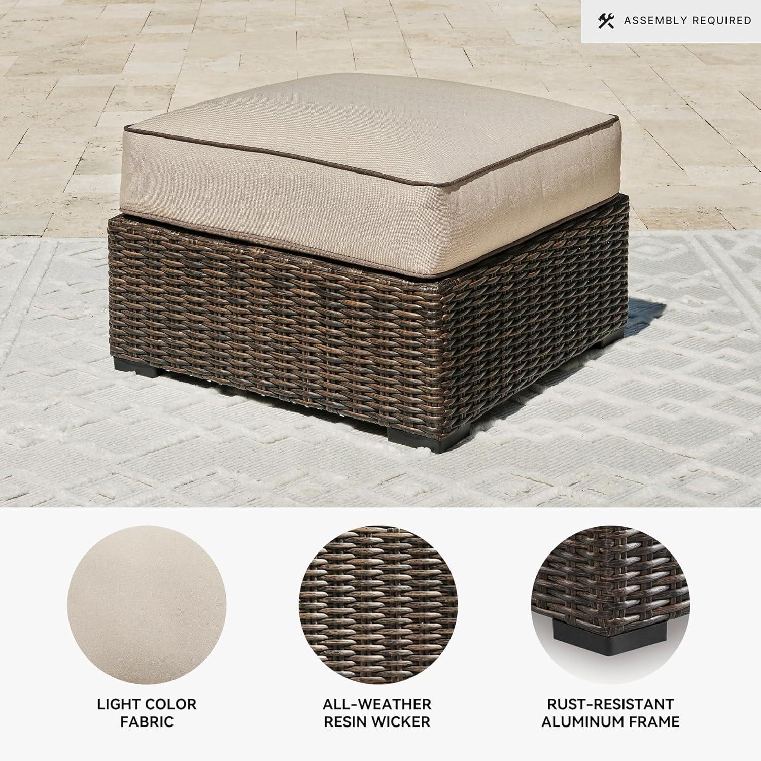 Signature Design by Ashley Coastline Bay Casual Weather Resistant Outdoor Loveseat with Cushion and 2 Throw Pillows, Nuvella Weather Resistant Fabric, Beige & Dark Brown(Outdoor Ottoman with Cushion)