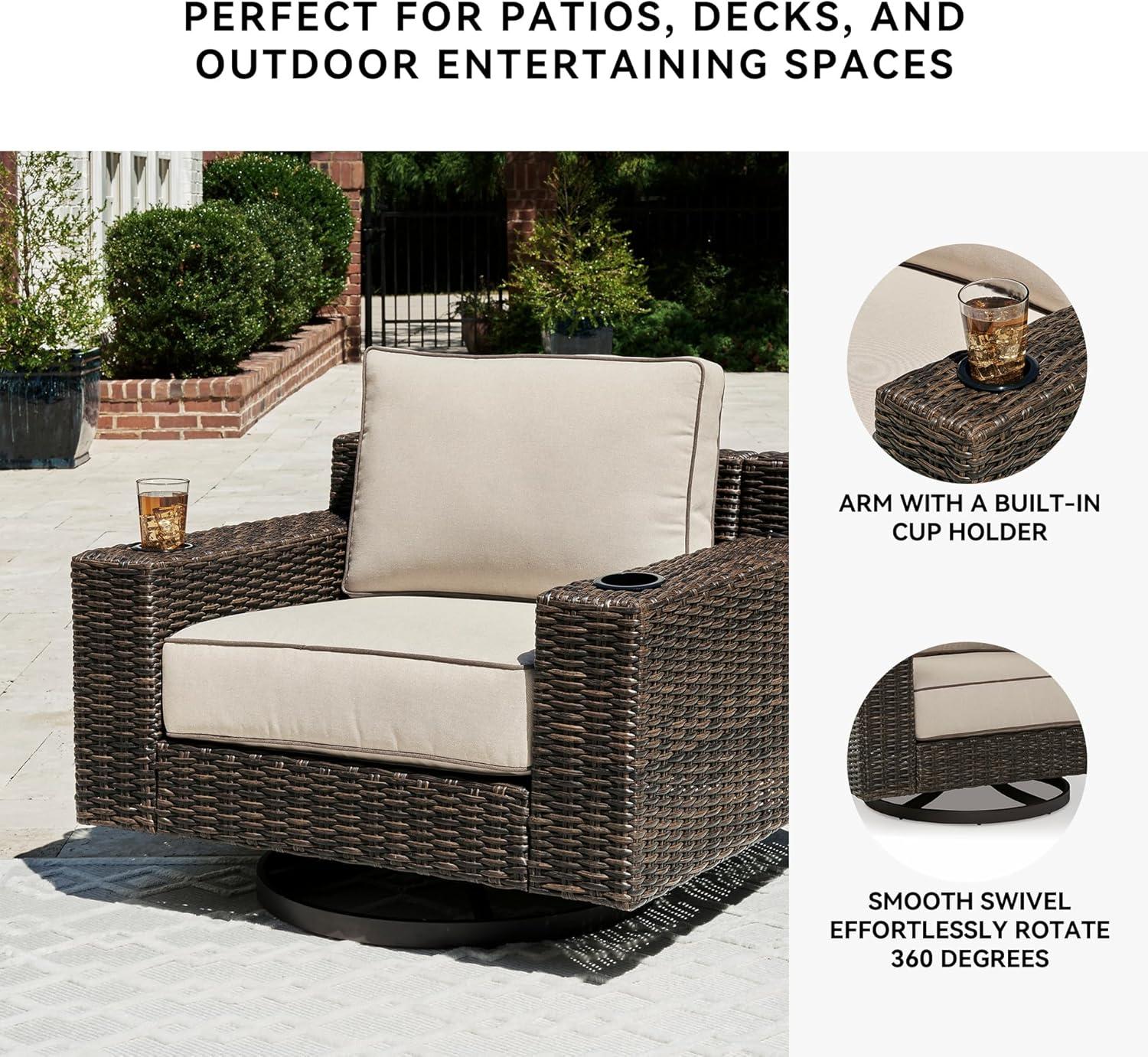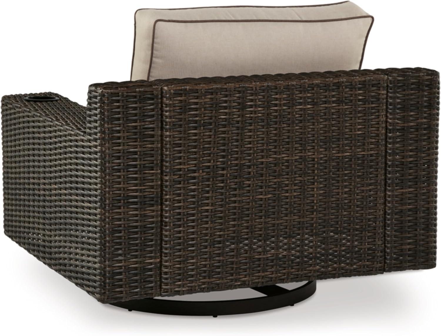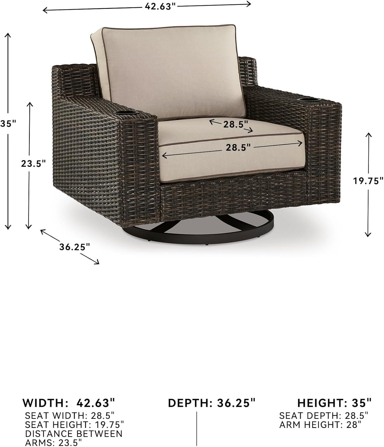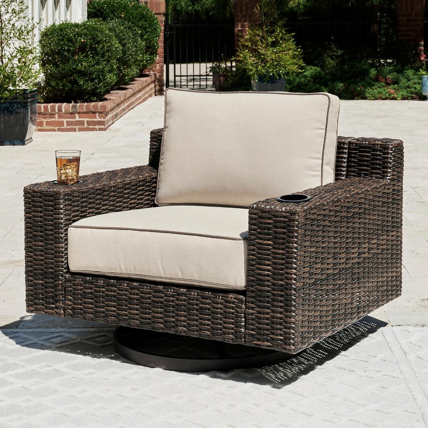 Signature Design by Ashley Coastline Bay Casual Weather Resistant Outdoor Loveseat with Cushion and 2 Throw Pillows, Nuvella Weather Resistant Fabric, Beige & Dark Brown(Outdoor Swivel Lounge with Cushion)