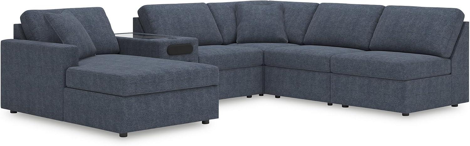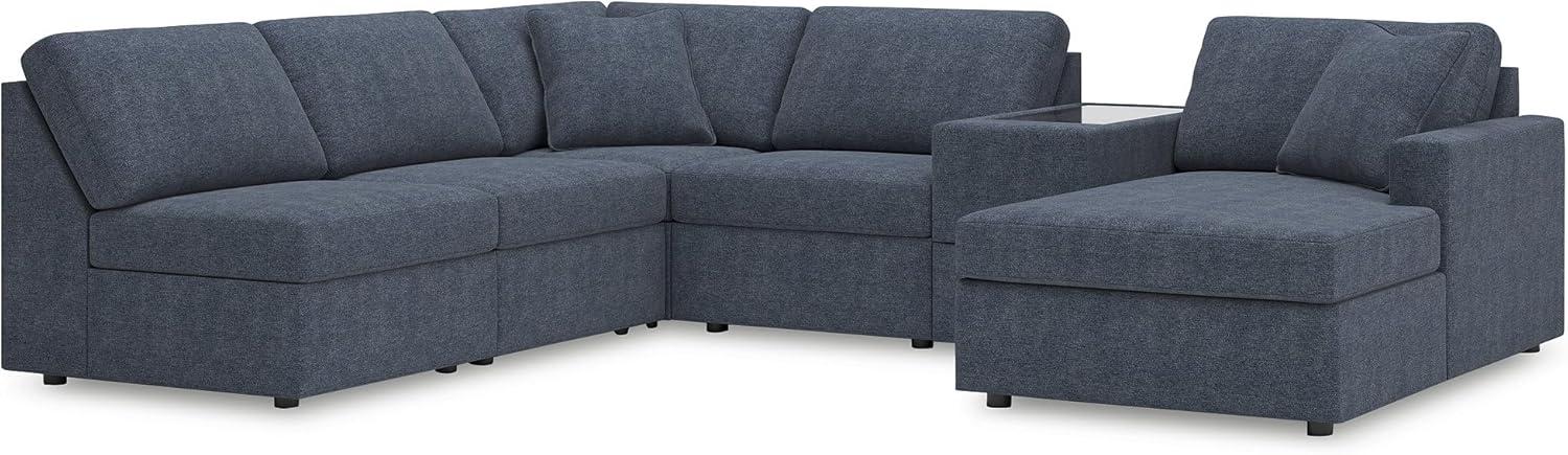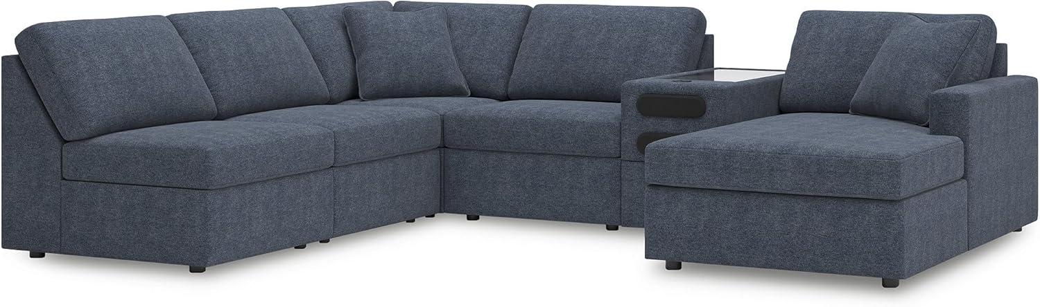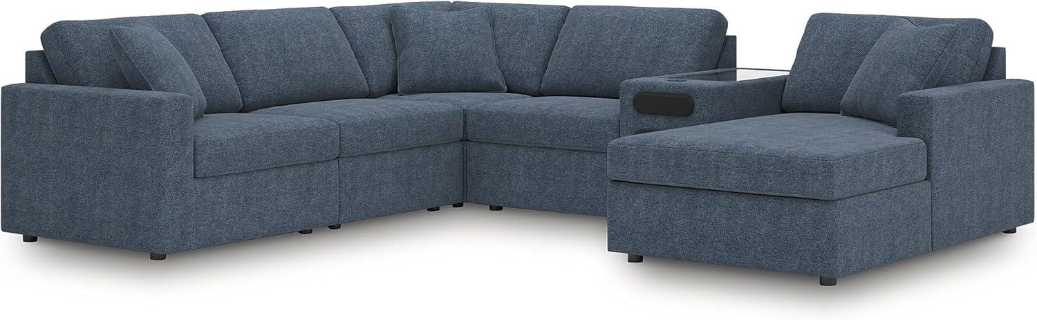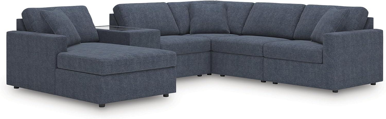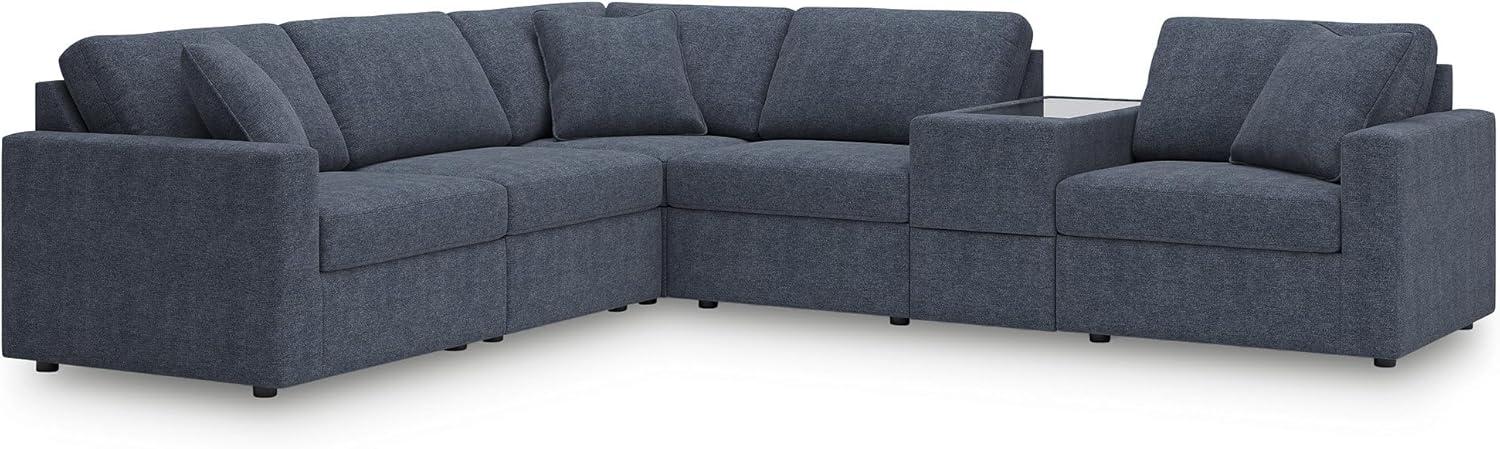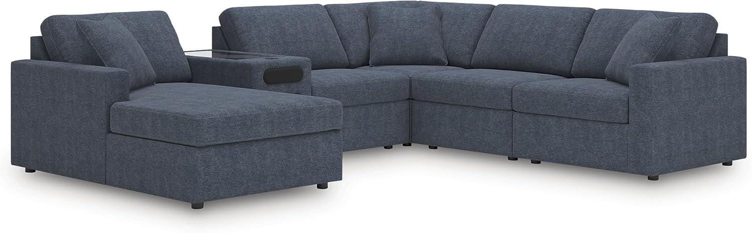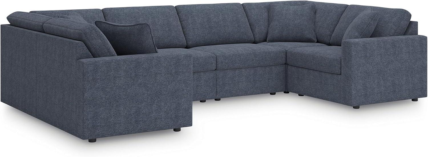 Signature Design by Ashley Contemporary Modmax Stain Resistant L-Shape Right-Arm Facing 6-Piece Sectional with Reversible Cushion and Armrest, Dark Blue(Blue)
