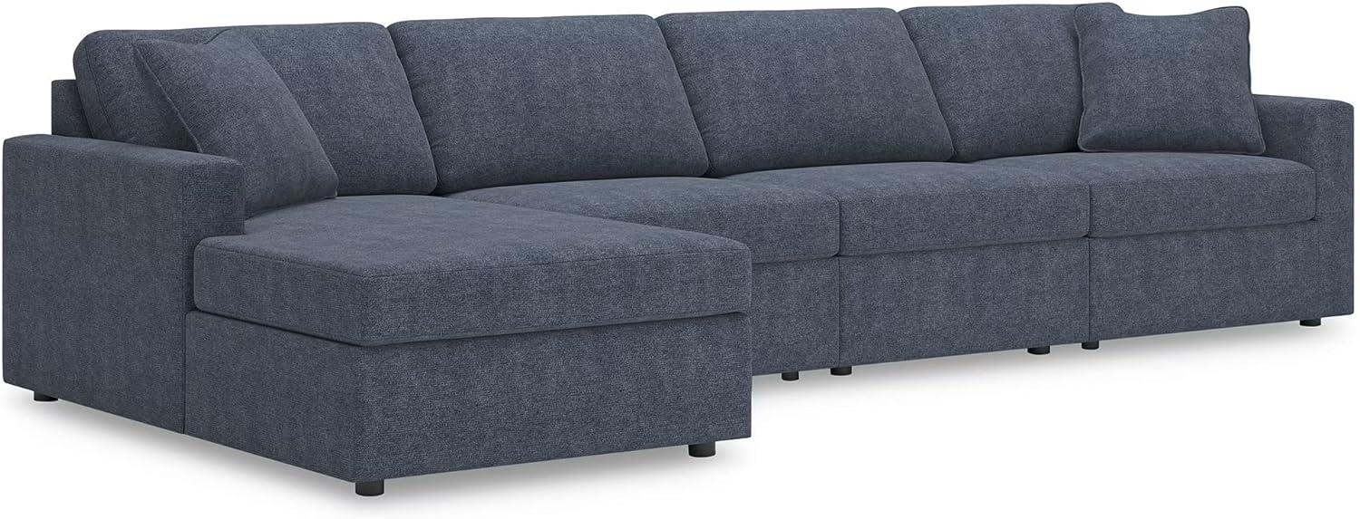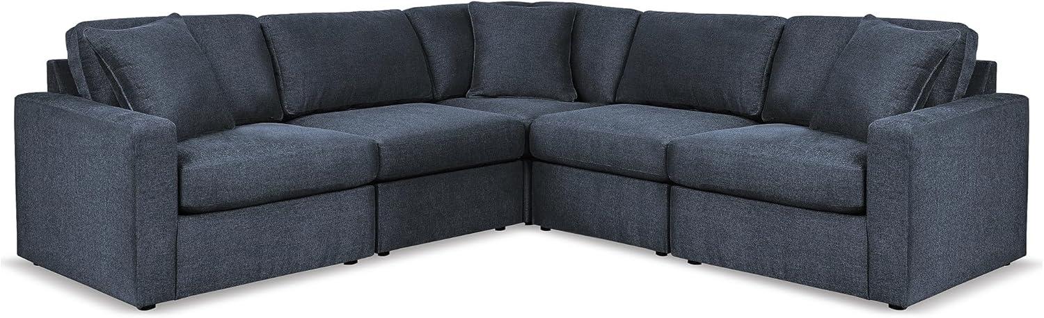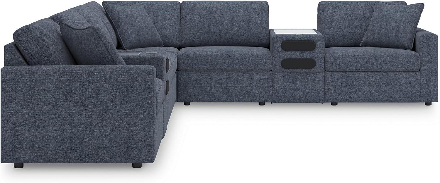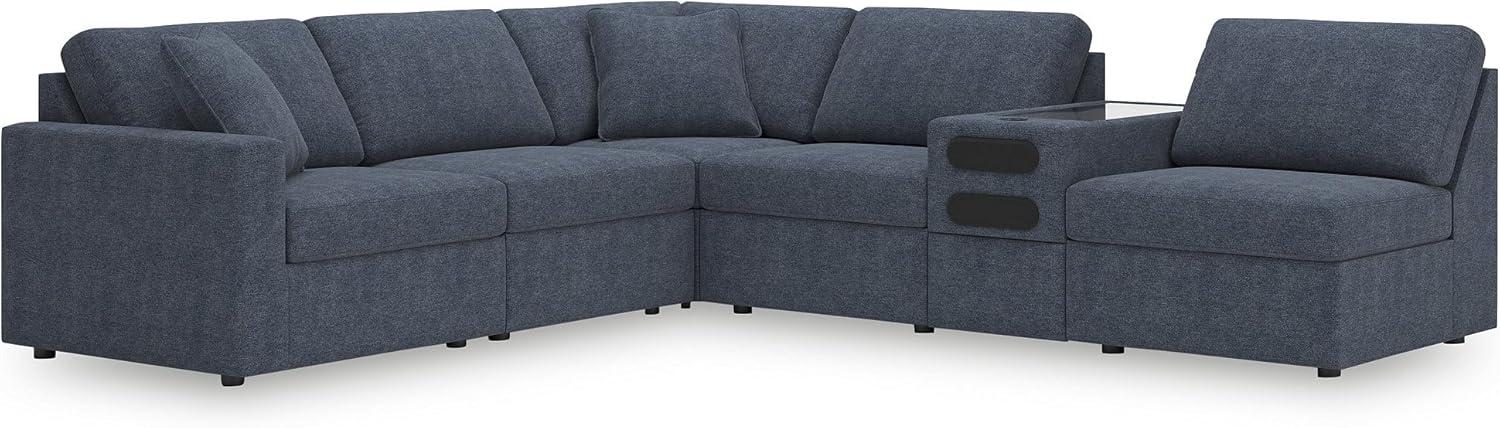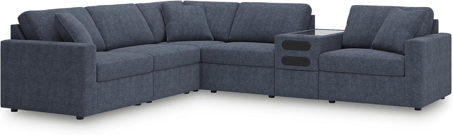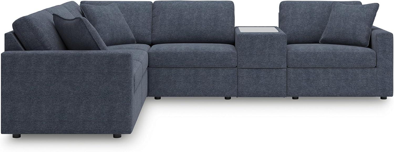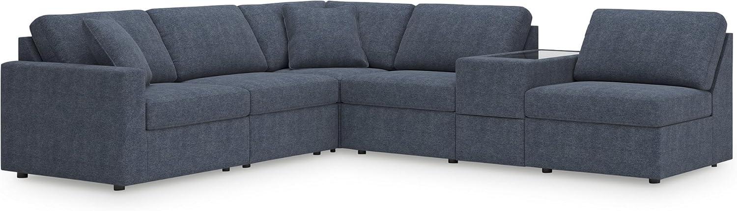 Signature Design by Ashley Contemporary Modmax Stain Resistant L-Shape Right-Arm Facing 6-Piece Sectional with Reversible Cushion and Armrest, Dark Blue(Blue)