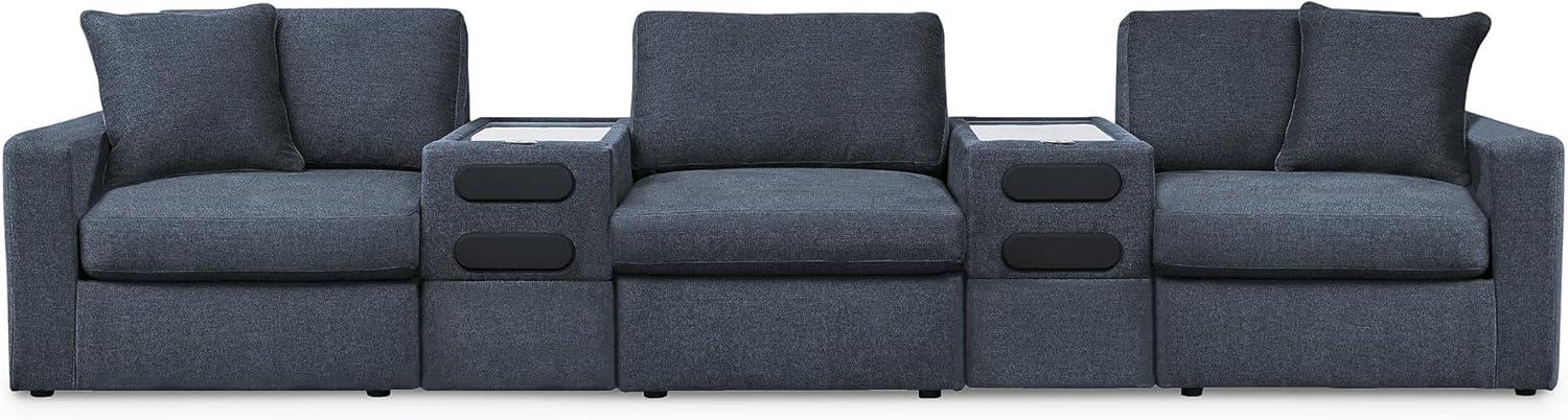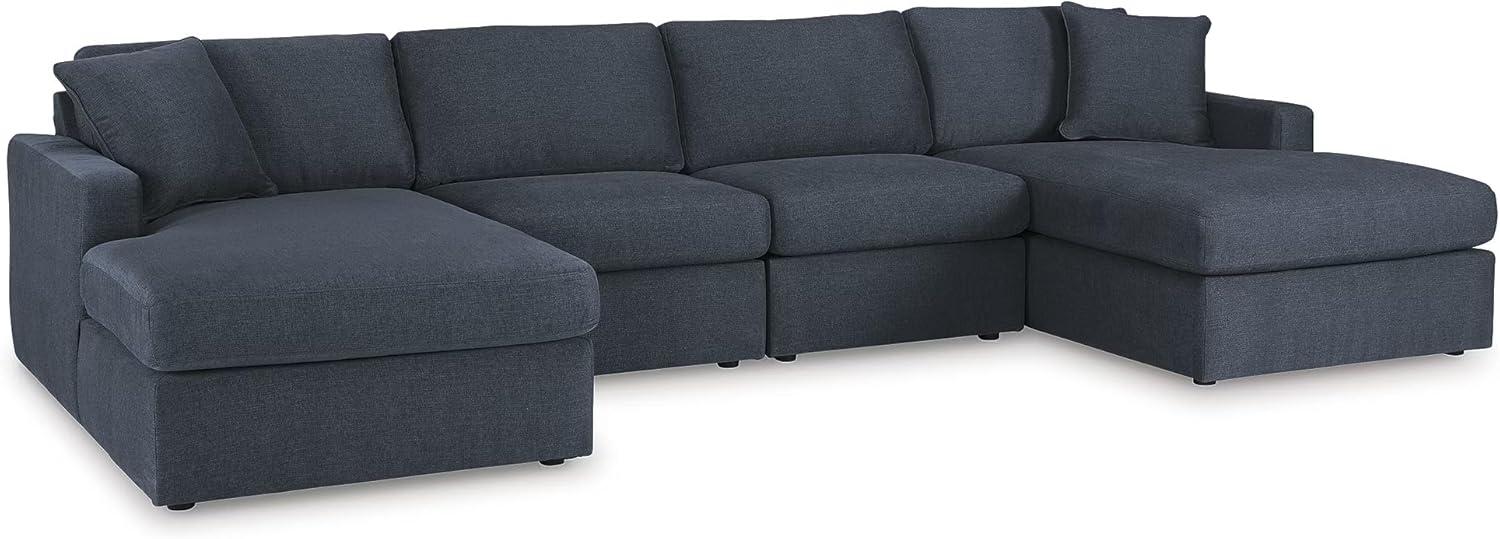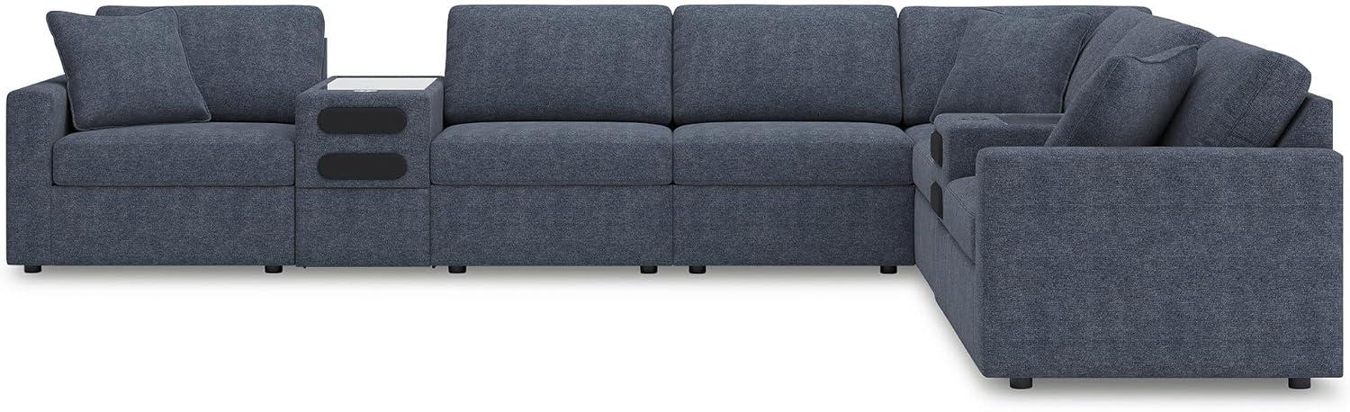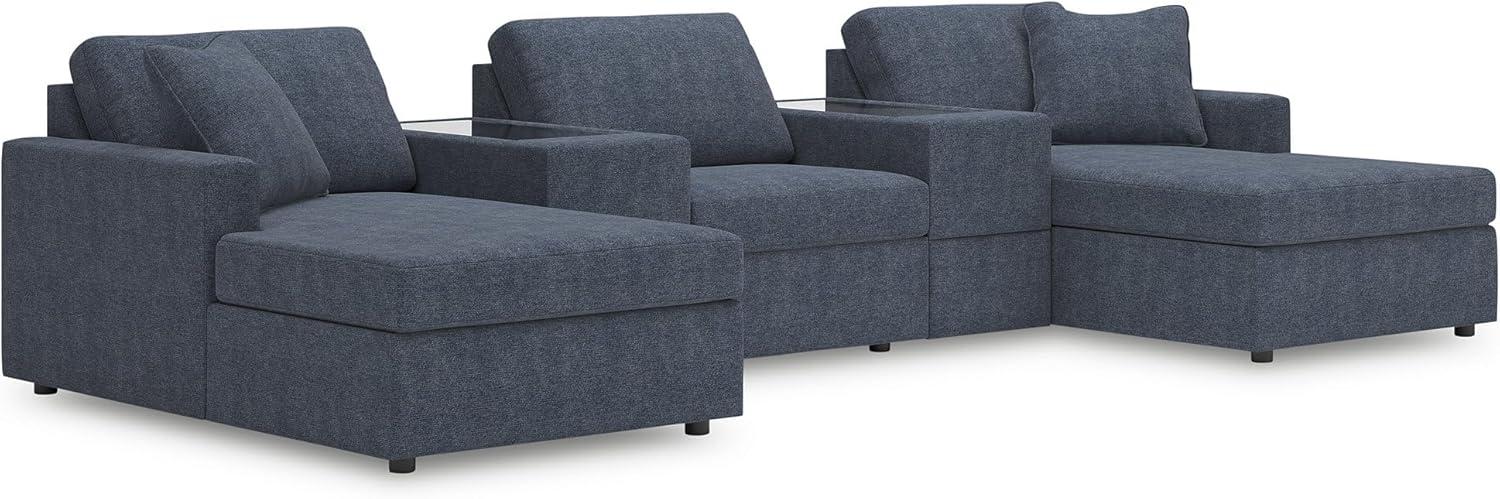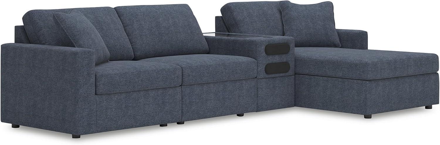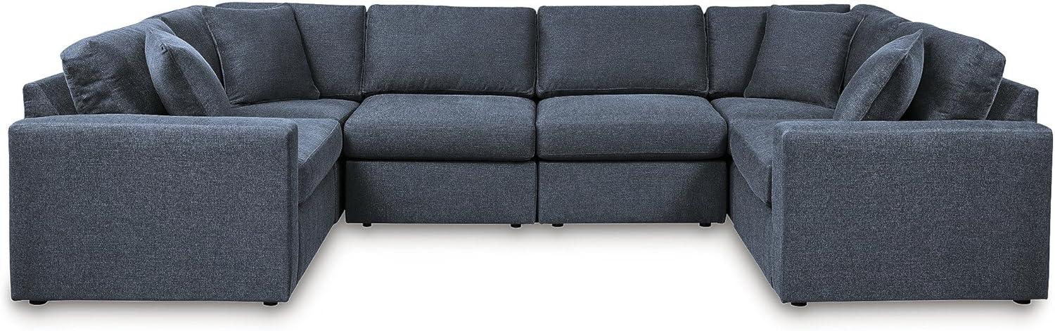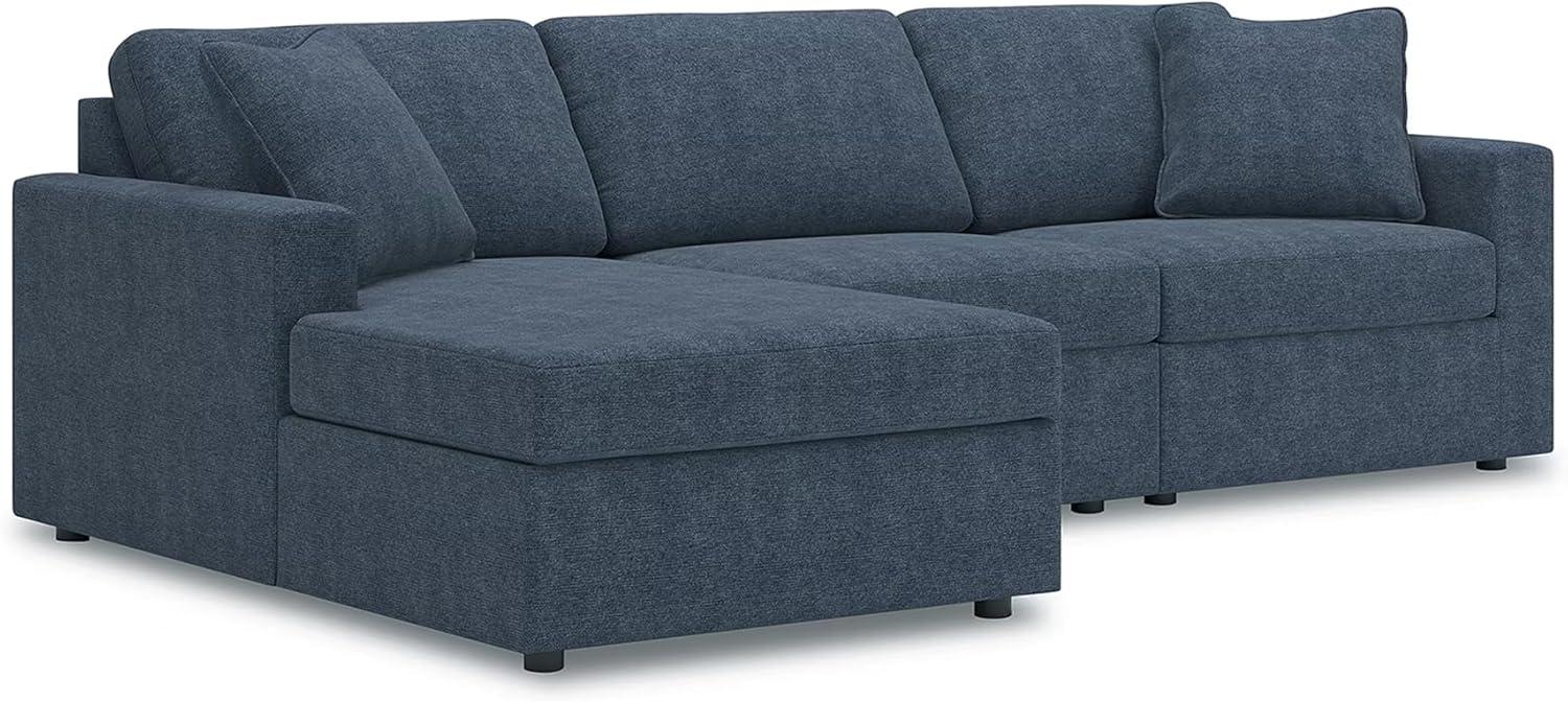 Signature Design by Ashley Contemporary Modmax Stain Resistant L-Shape Right-Arm Facing 6-Piece Sectional with Reversible Cushion and Armrest, Dark Blue(Blue)