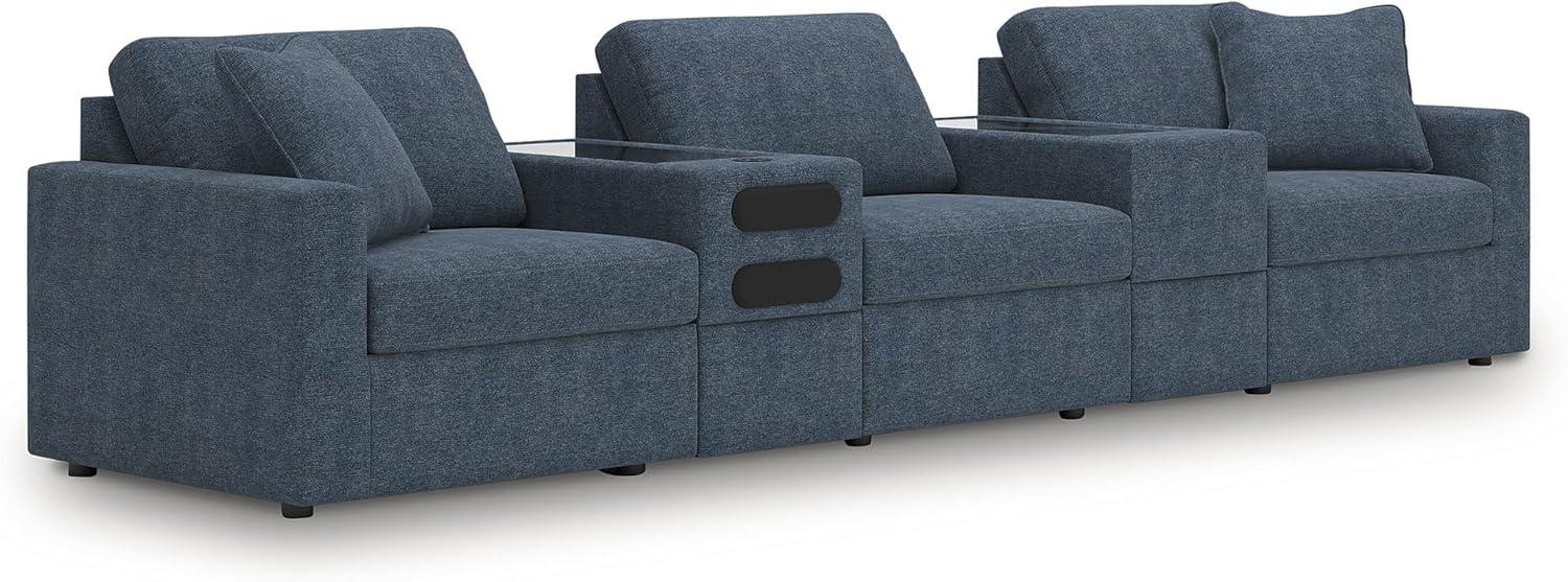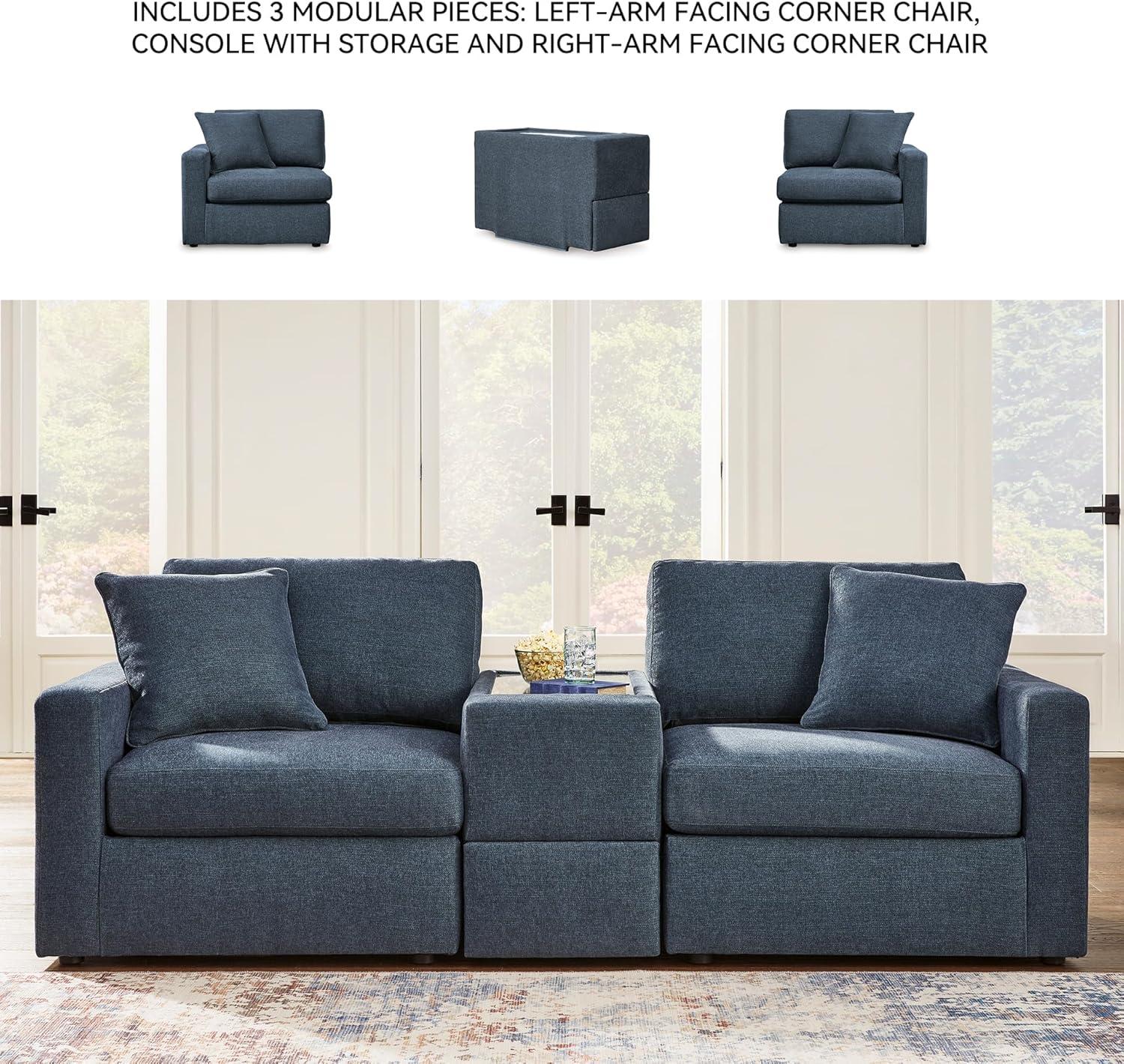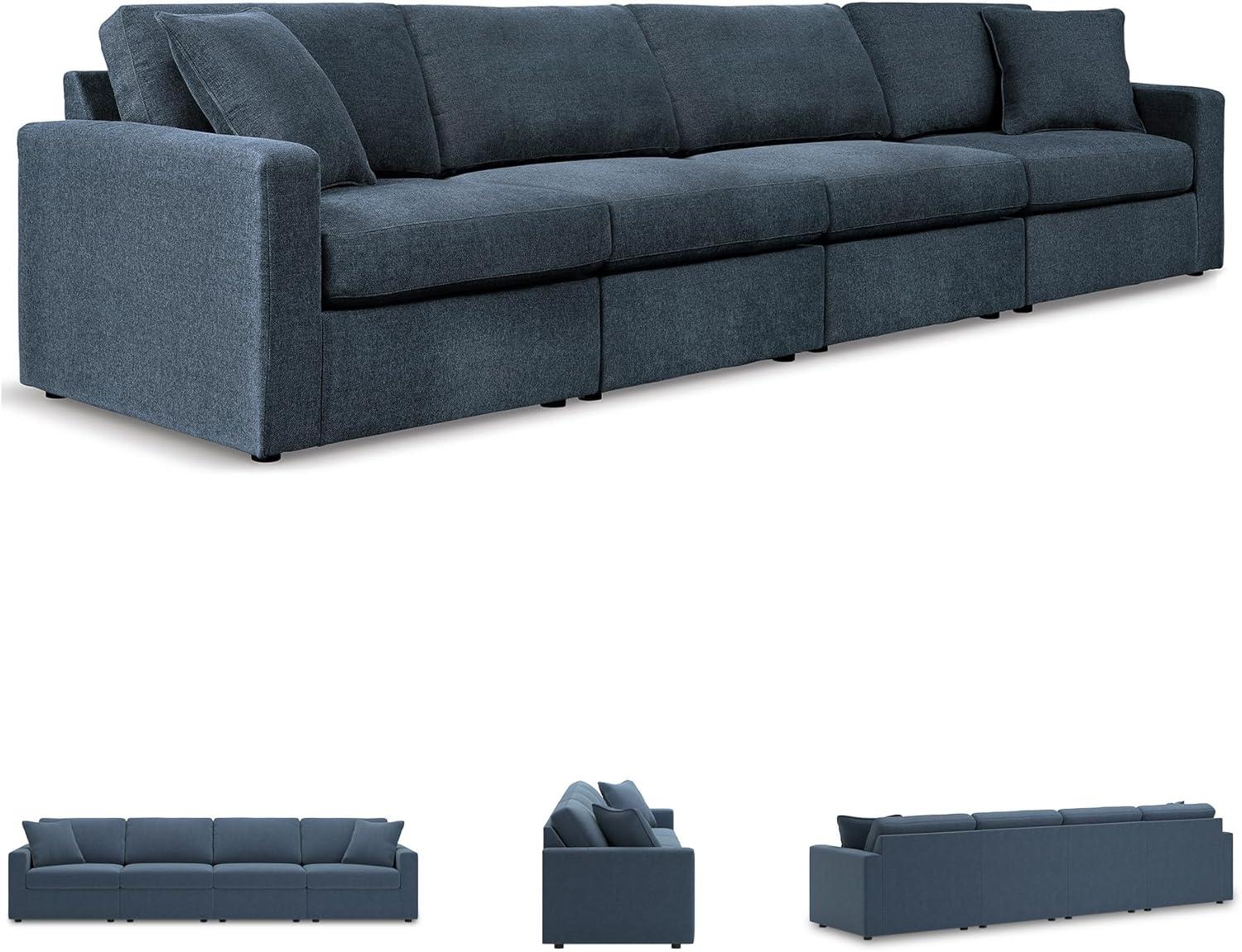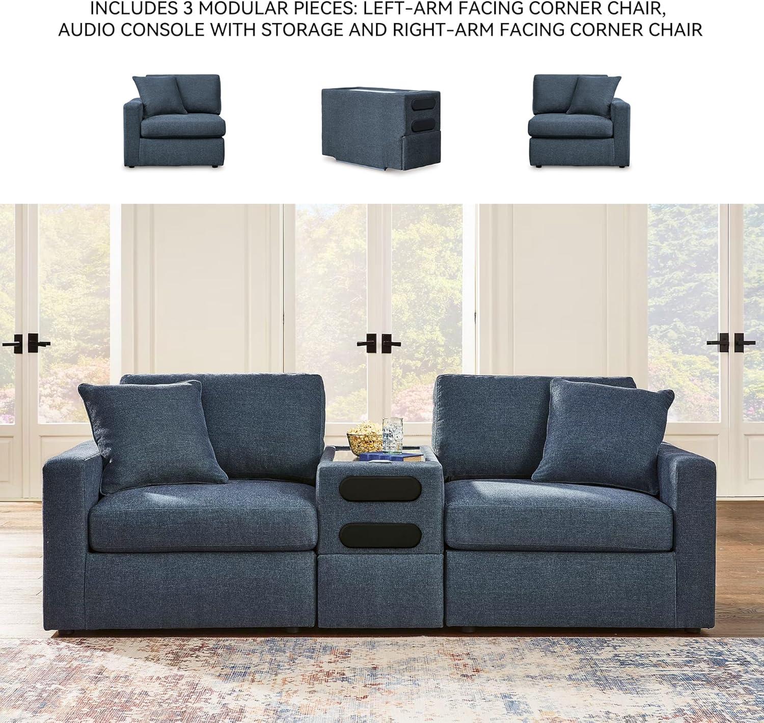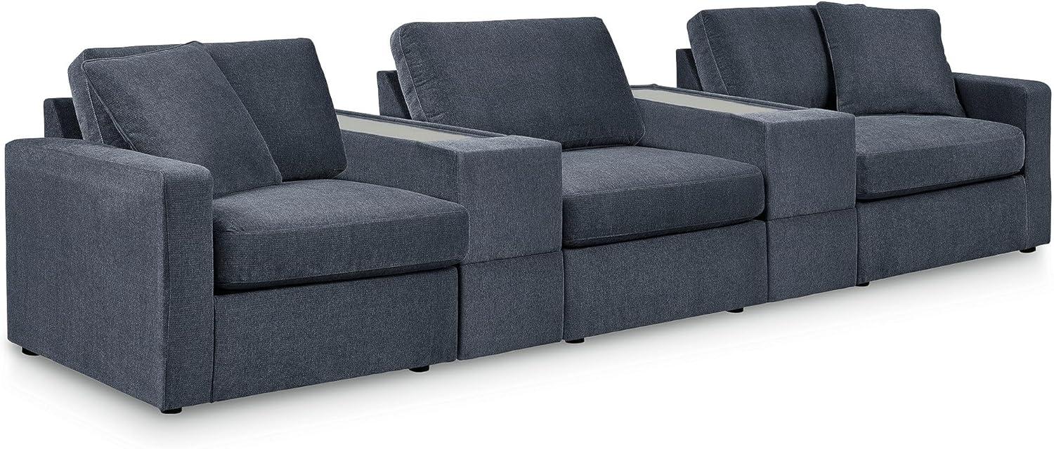 Signature Design by Ashley Contemporary Modmax Stain Resistant L-Shape Right-Arm Facing 6-Piece Sectional with Reversible Cushion and Armrest, Dark Blue(Blue)