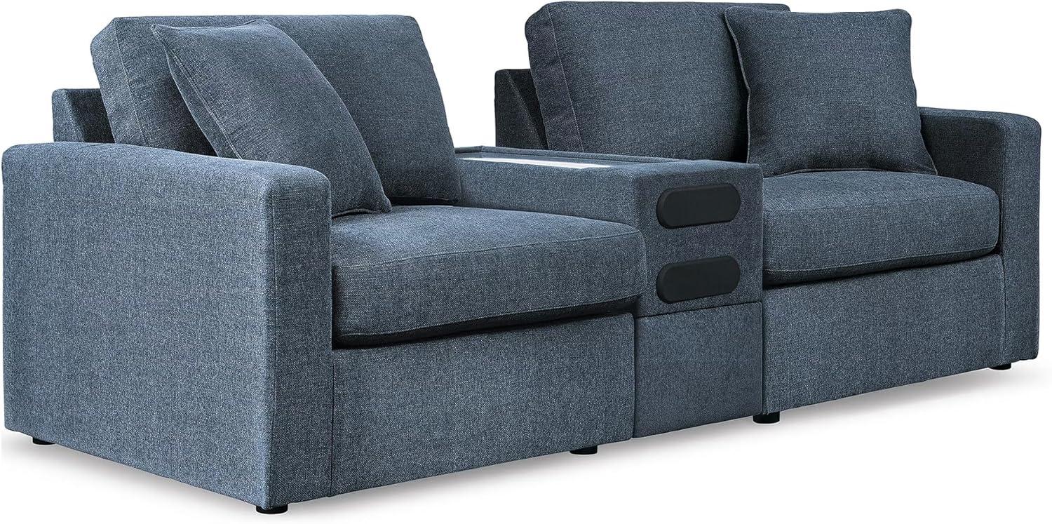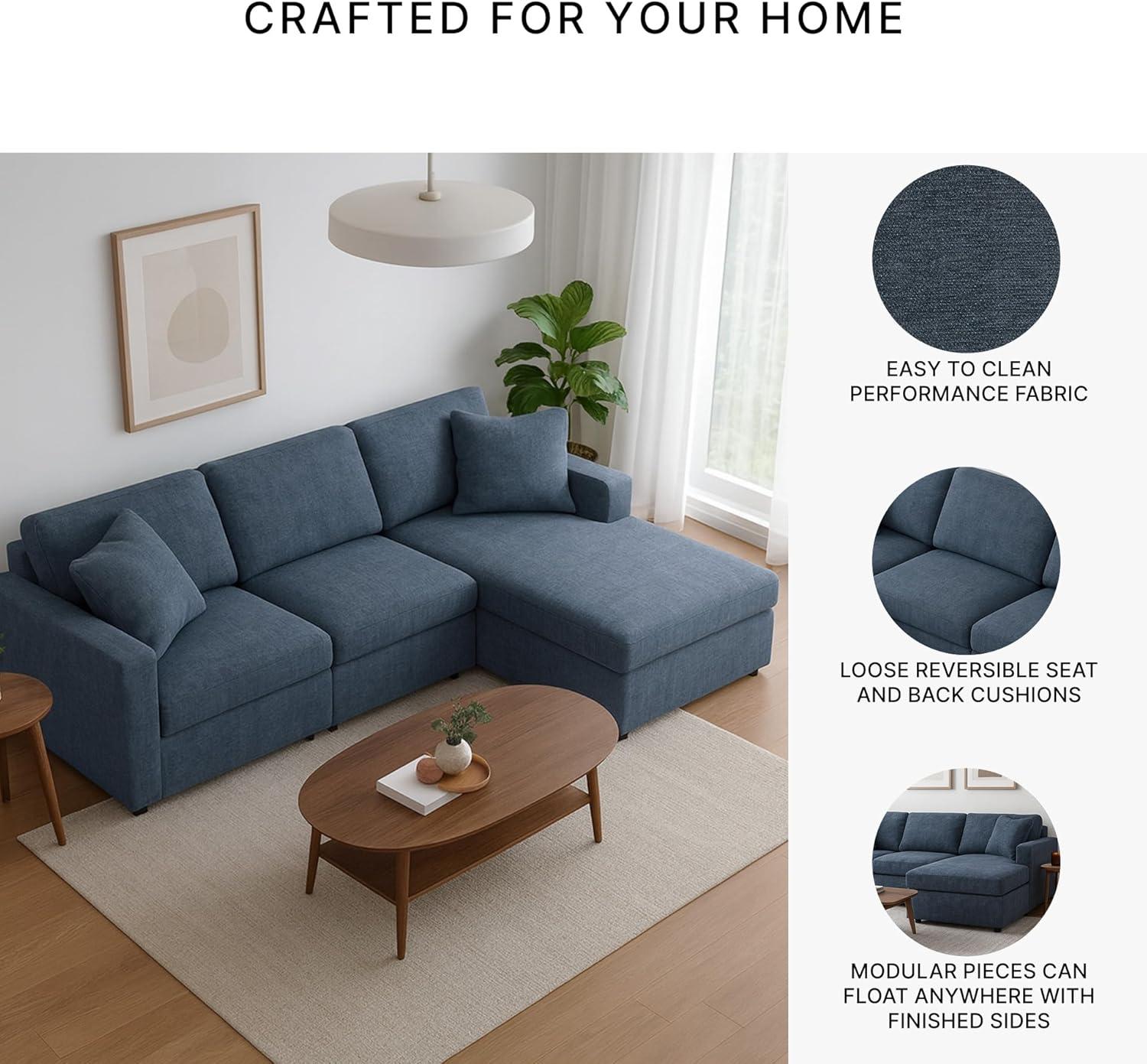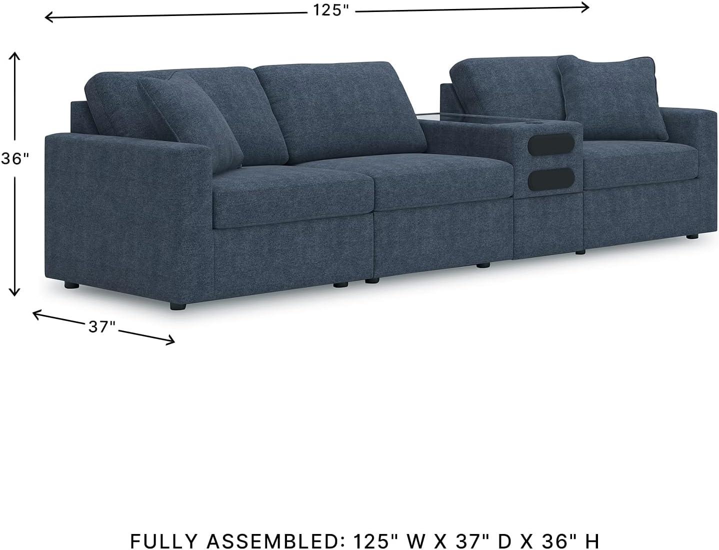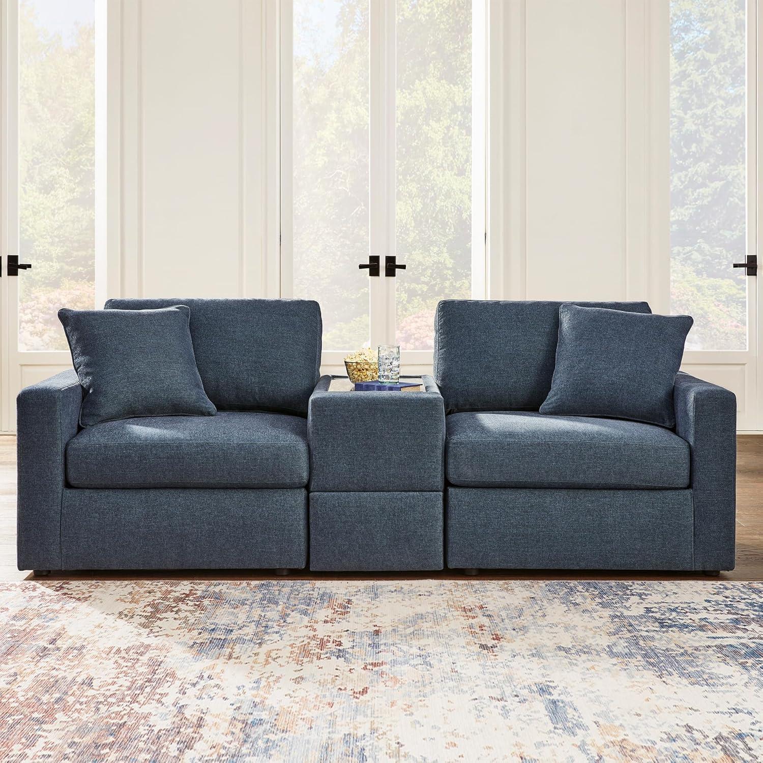 Signature Design by Ashley Contemporary Modmax Stain Resistant L-Shape Right-Arm Facing 6-Piece Sectional with Reversible Cushion and Armrest, Dark Blue(Blue)