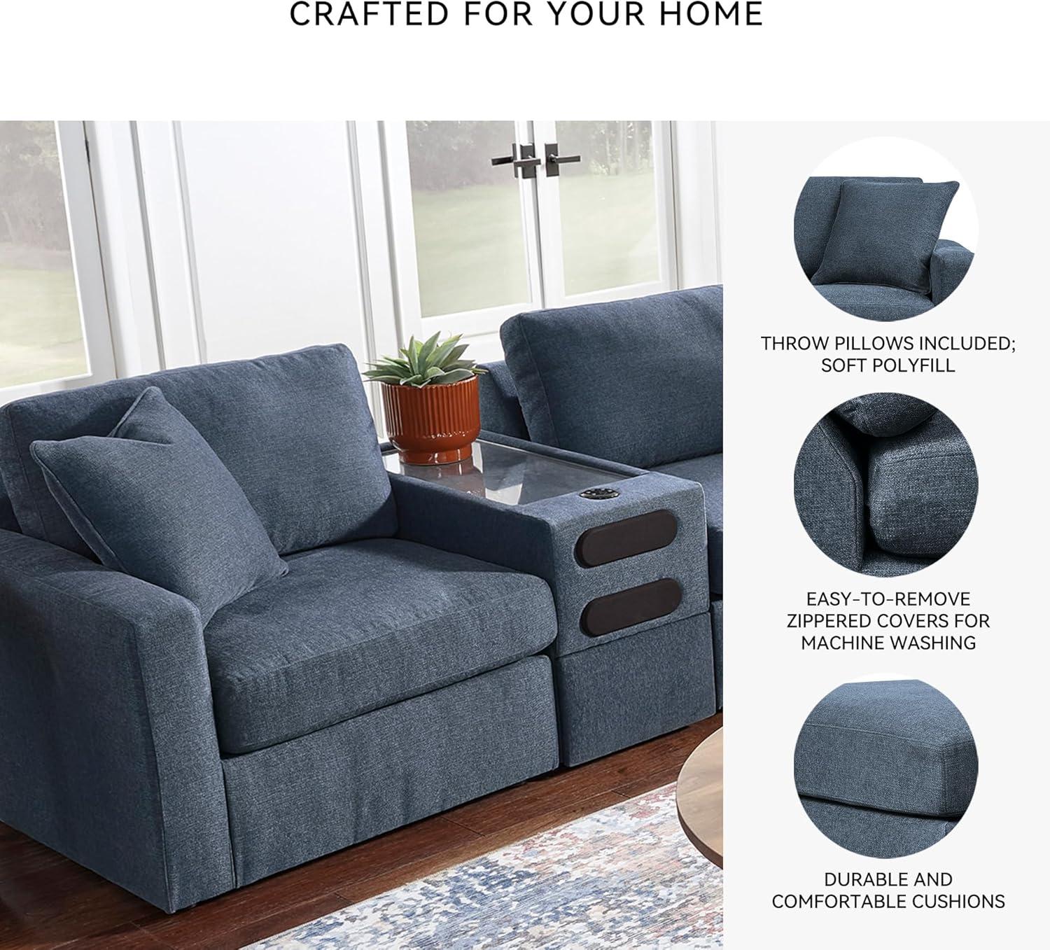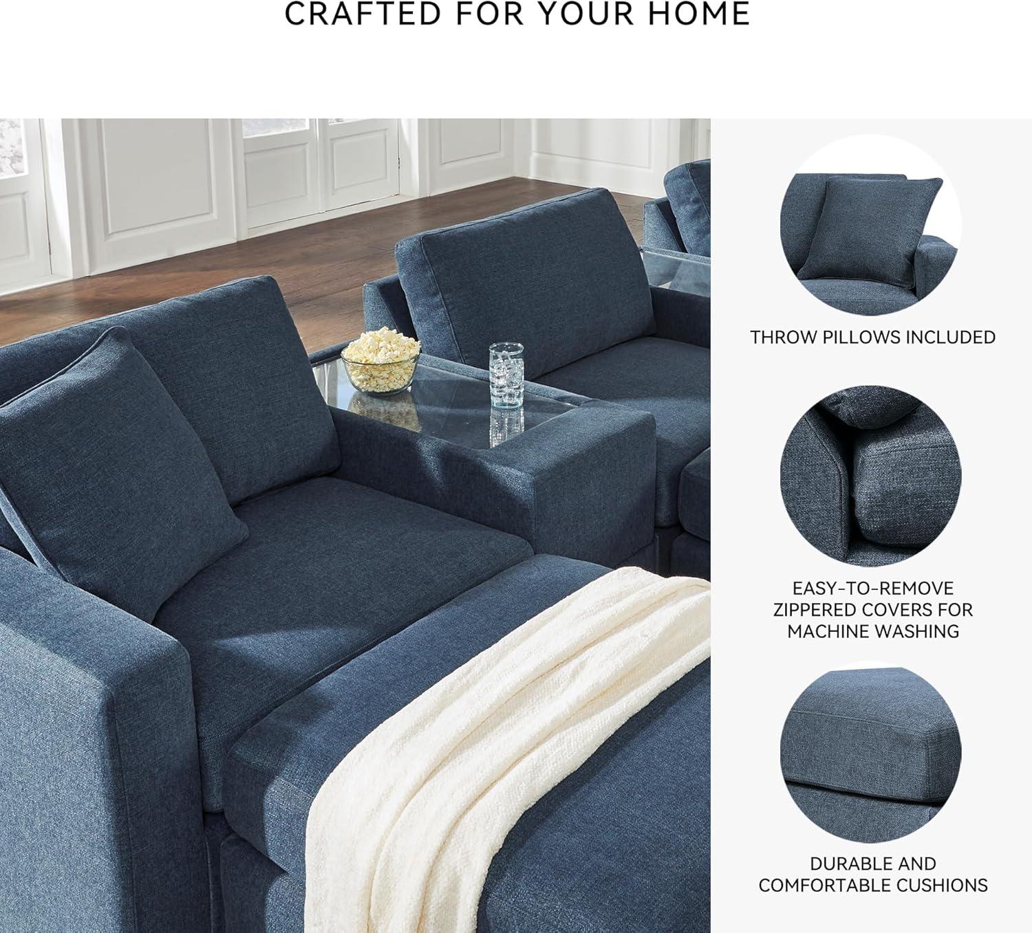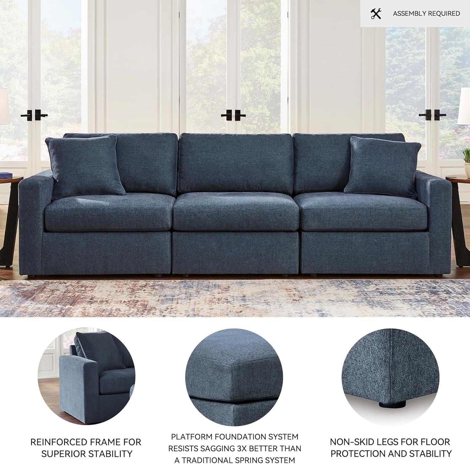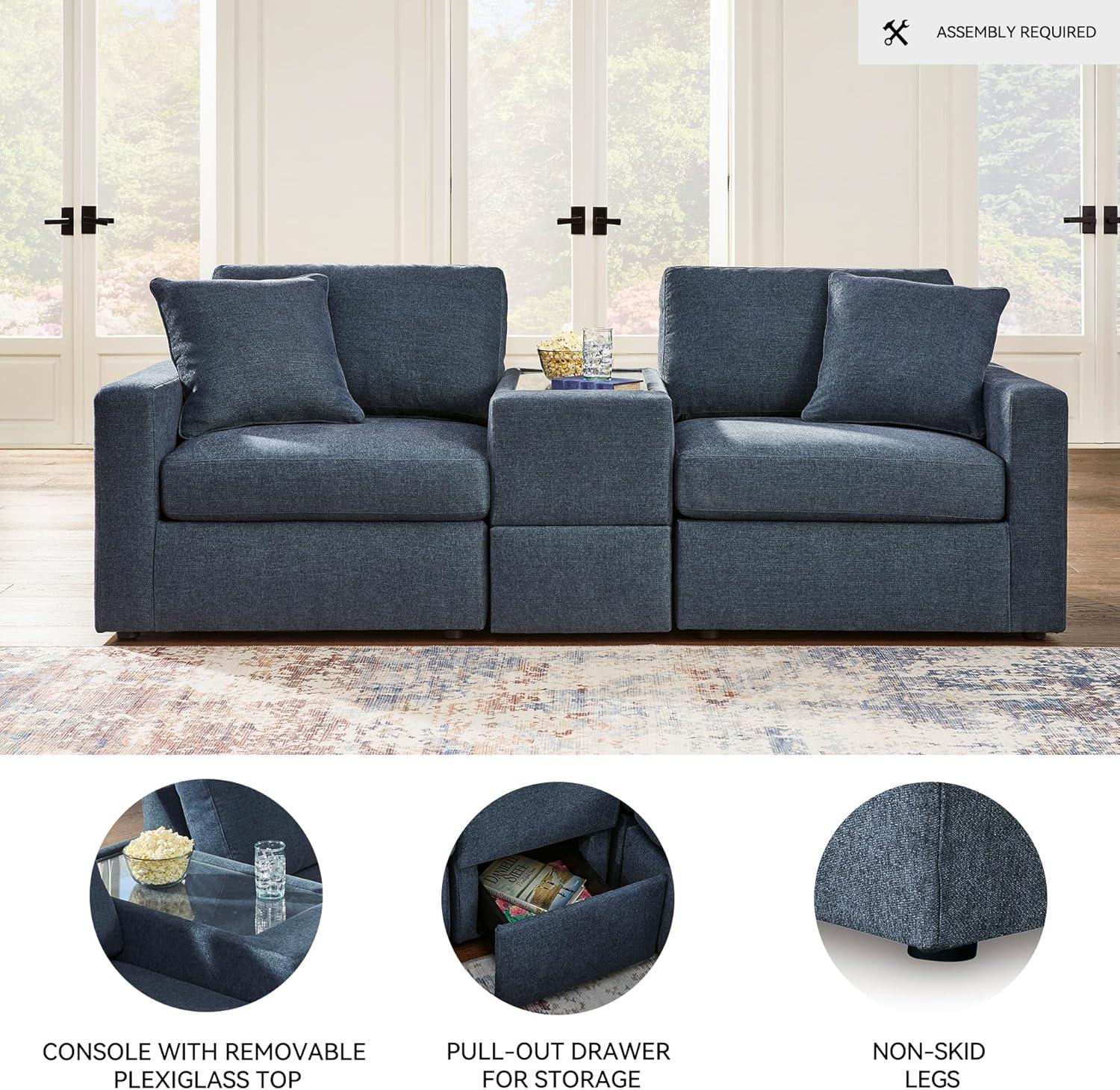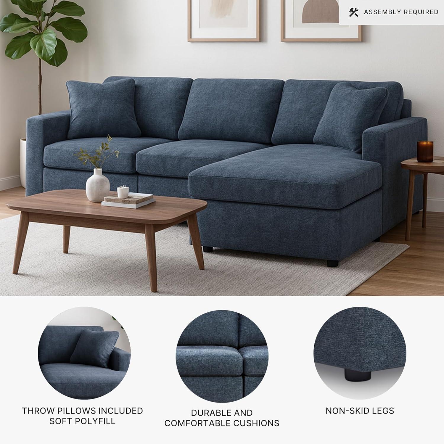 Signature Design by Ashley Contemporary Modmax Stain Resistant L-Shape Right-Arm Facing 6-Piece Sectional with Reversible Cushion and Armrest, Dark Blue(Blue)