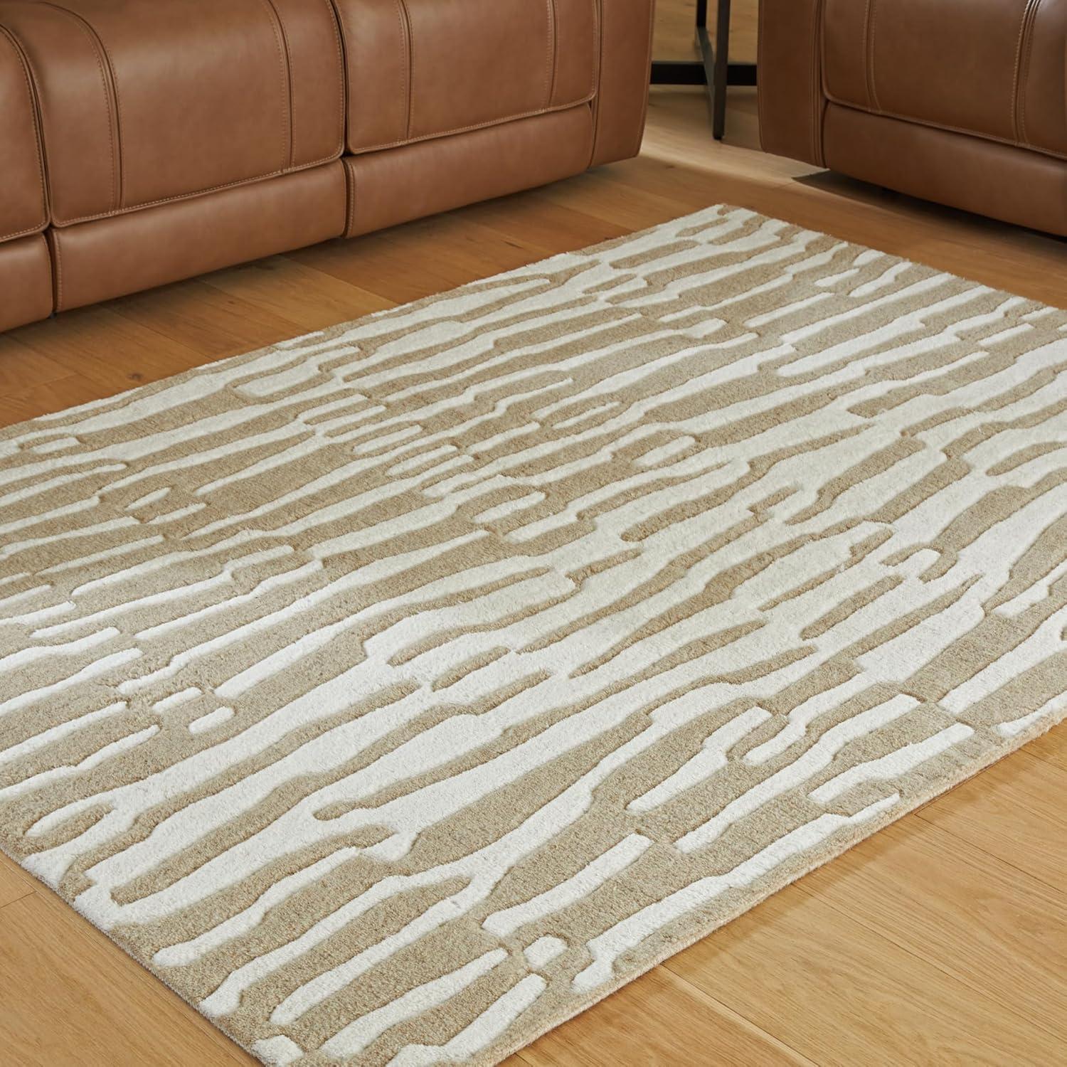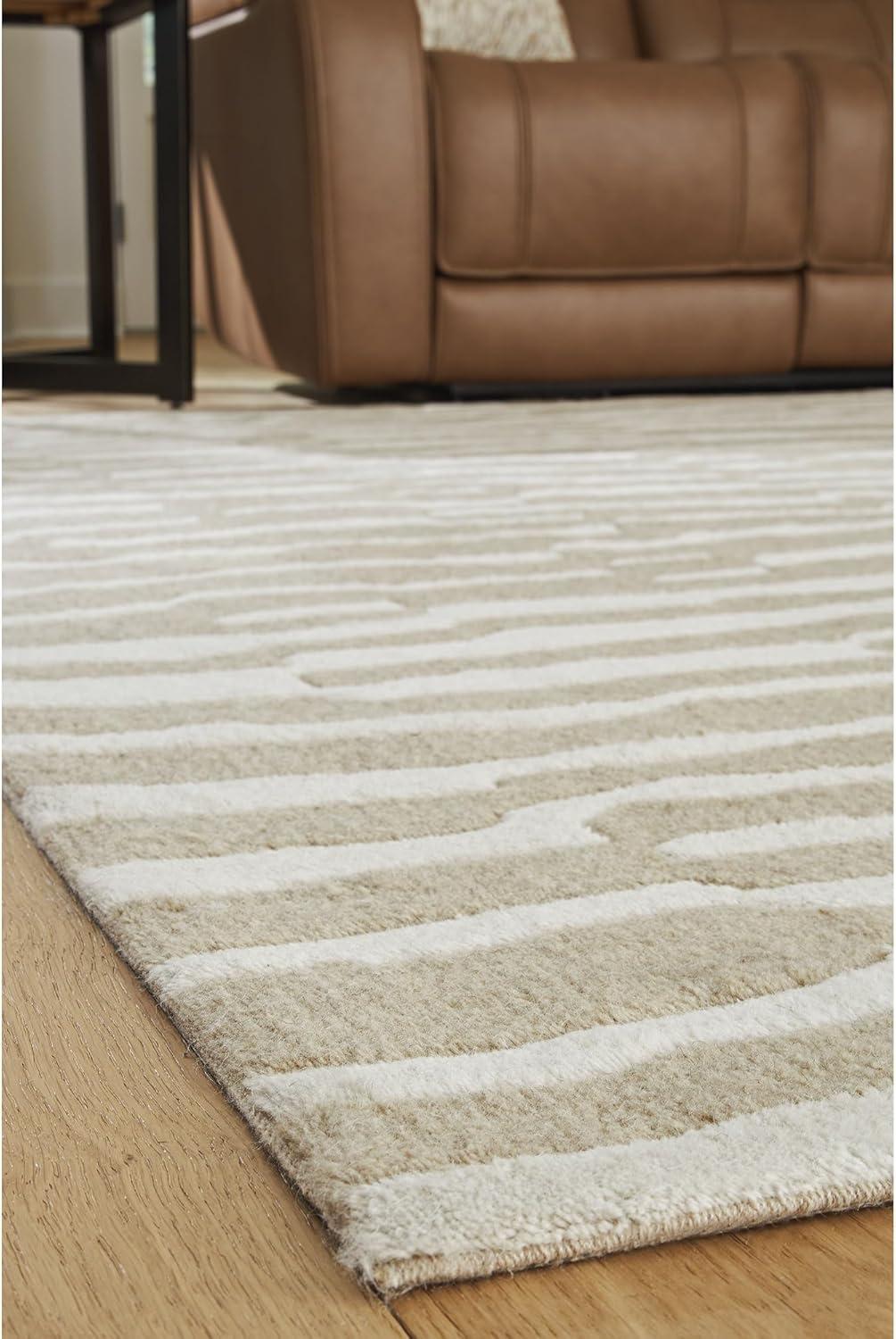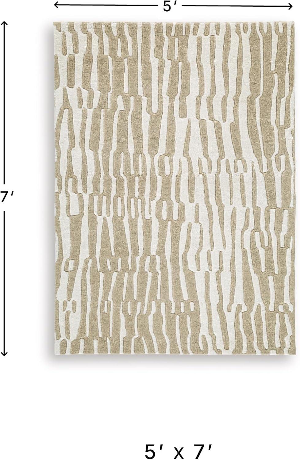 Signature Design by Ashley Corrbell Transitional Indoor Geometric Rectangular 5 x 7 Area Rug, Beige & White