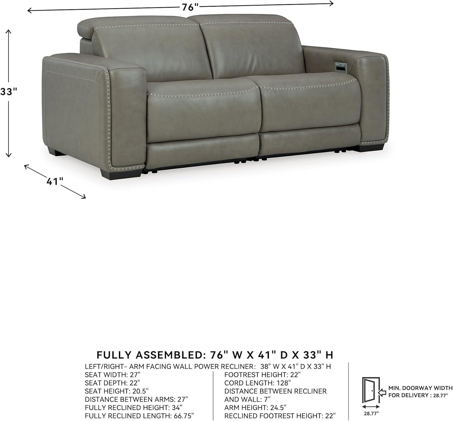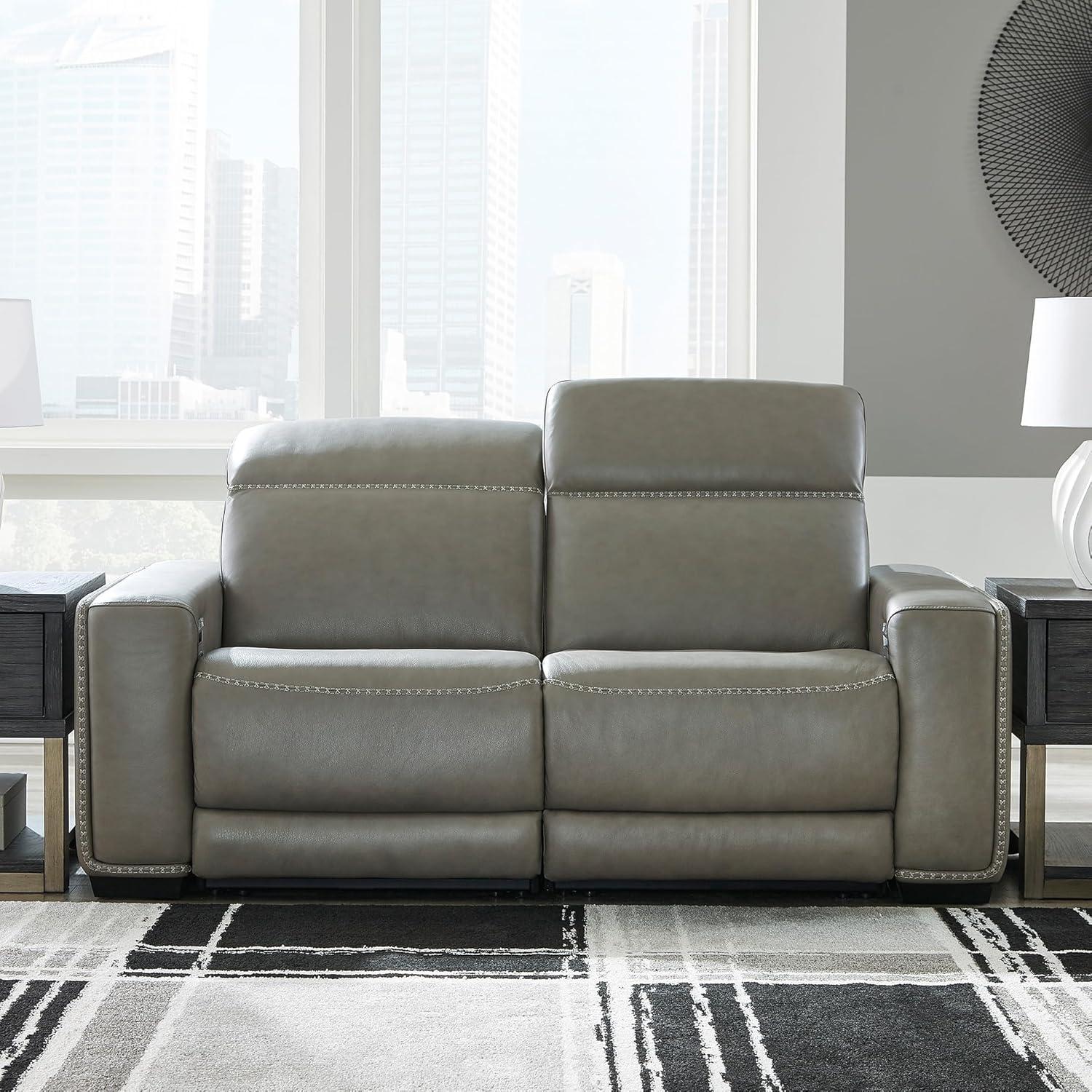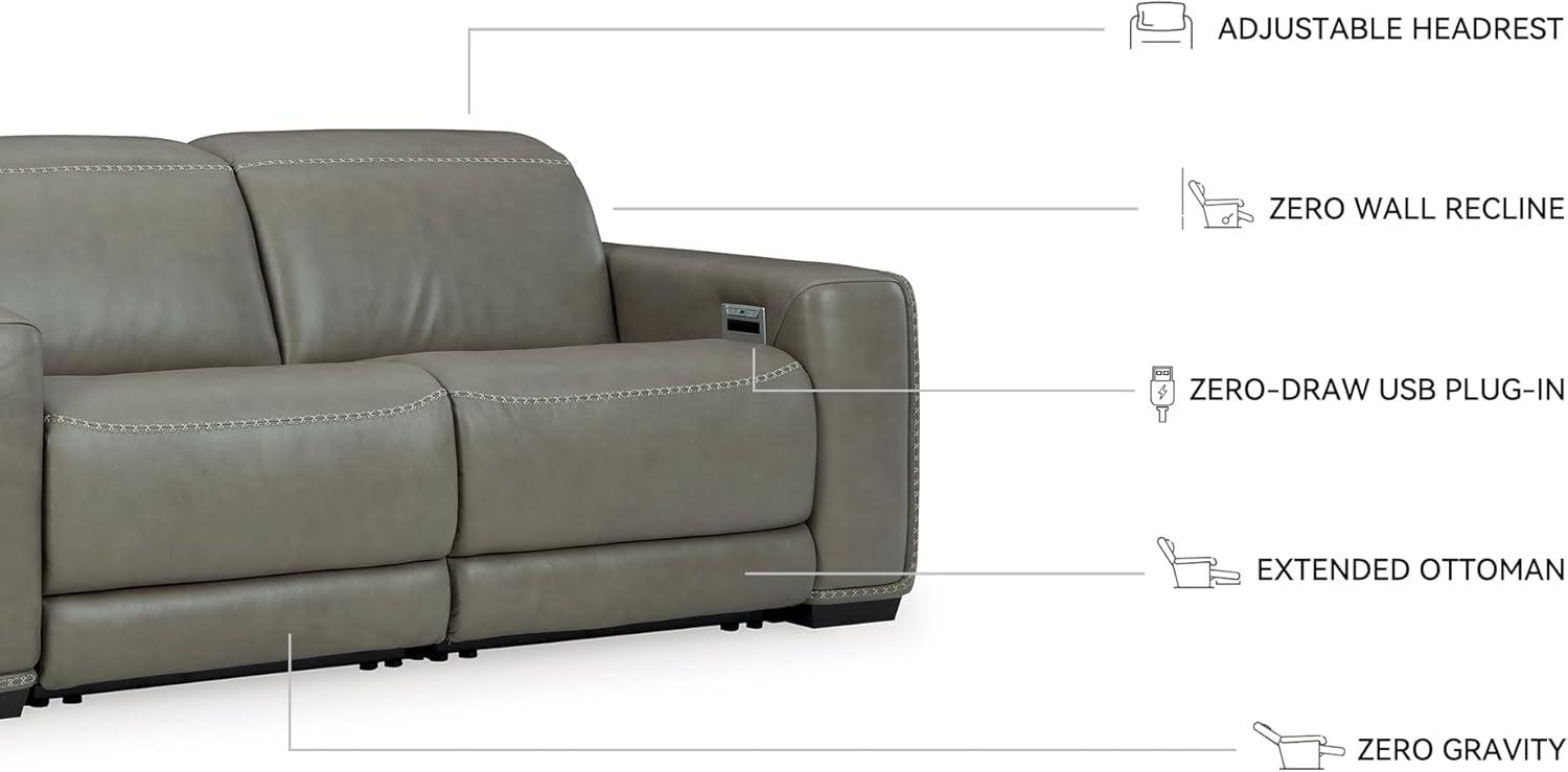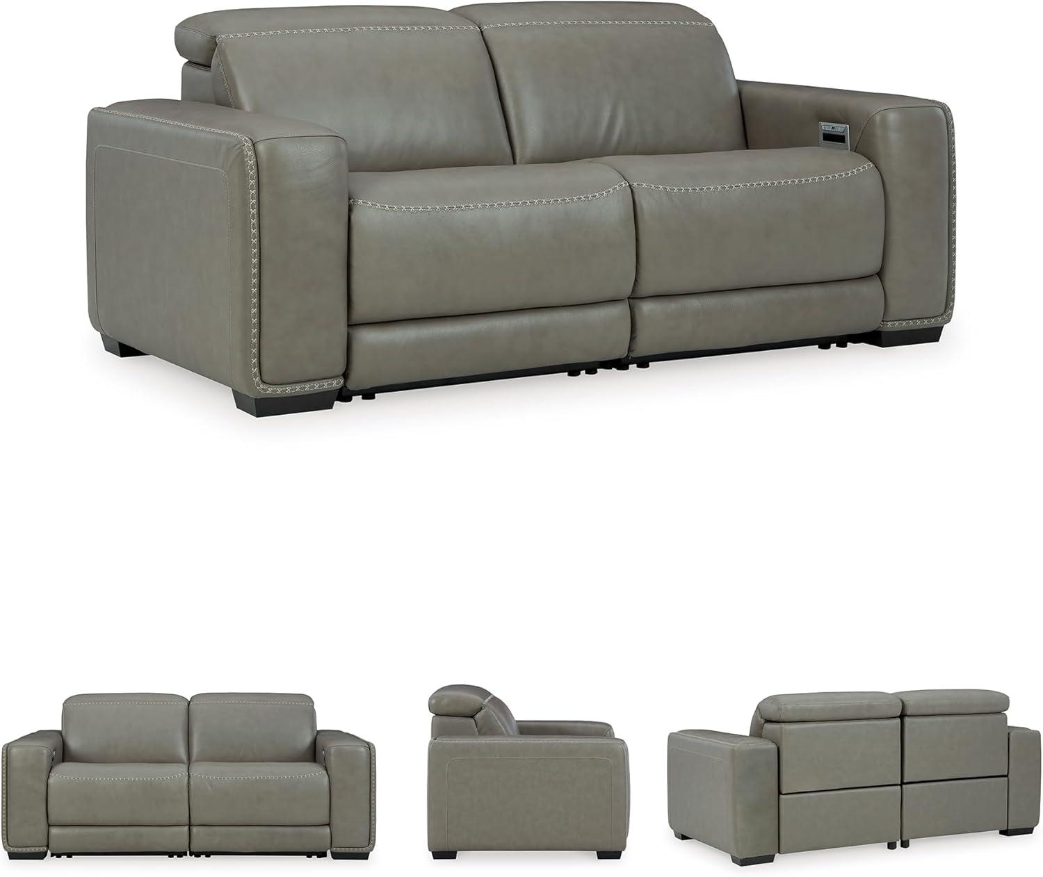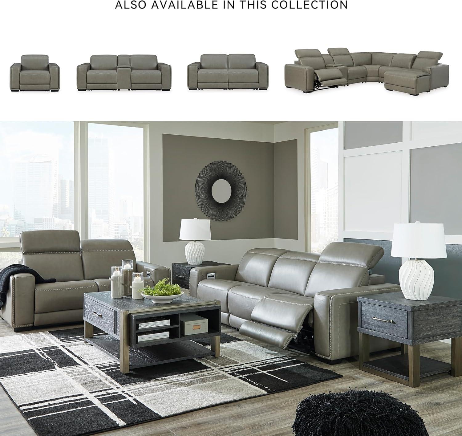 Signature Design by Ashley Correze Contemporary Leather Match 3-Piece Power Reclining Sectional Loveseat with Adjustable Headrest, USB Ports, Console, Storage and 2 Cup Holders, Light Gray(Reclining Loveseat)