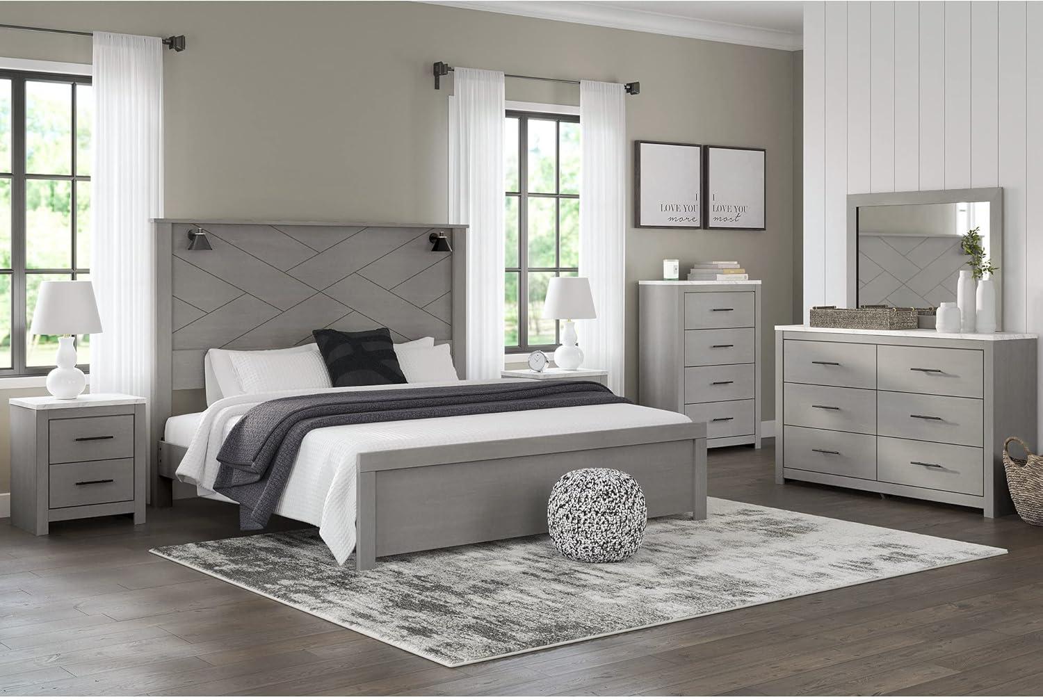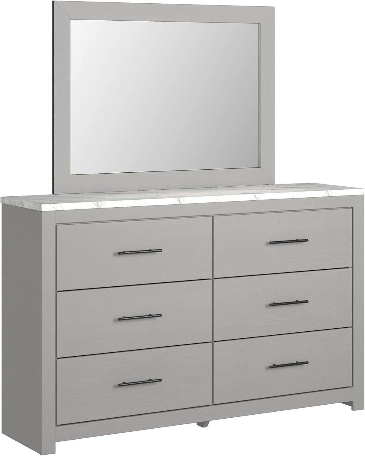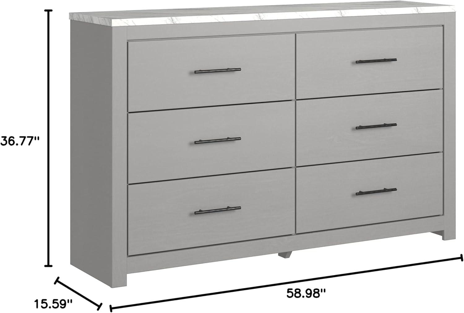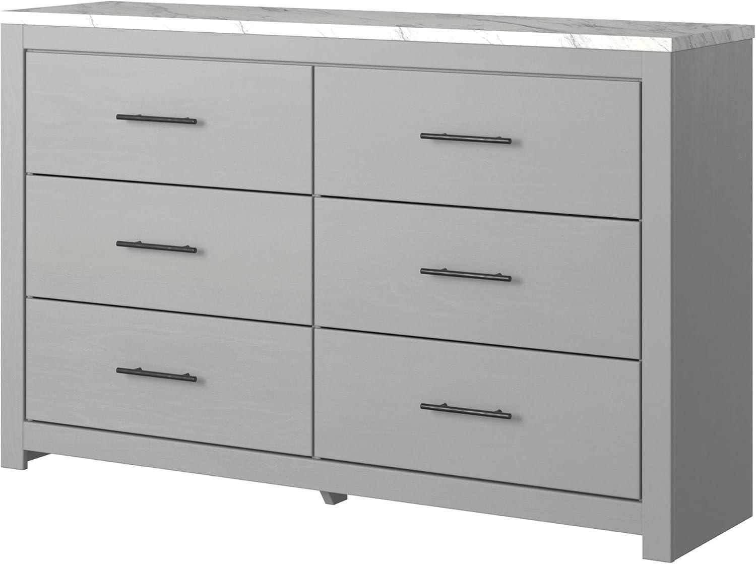 Signature Design by Ashley Cottonburg Modern Six Drawer Dresser with Faux Marble Top, Light Gray(Light Gray)