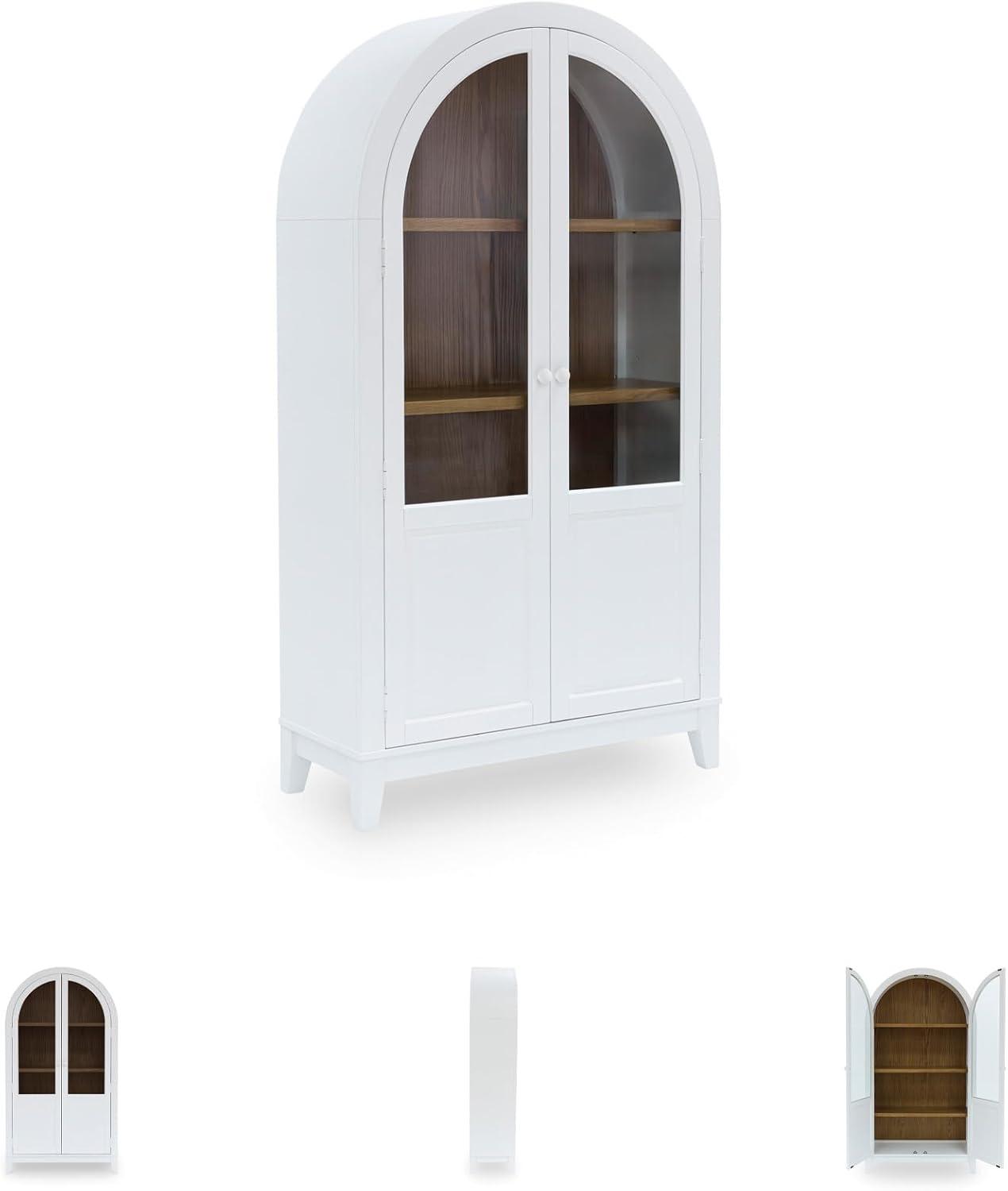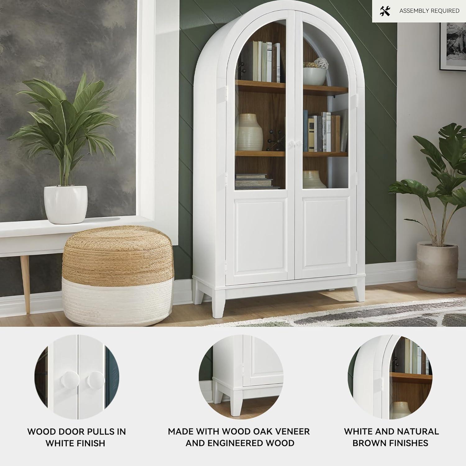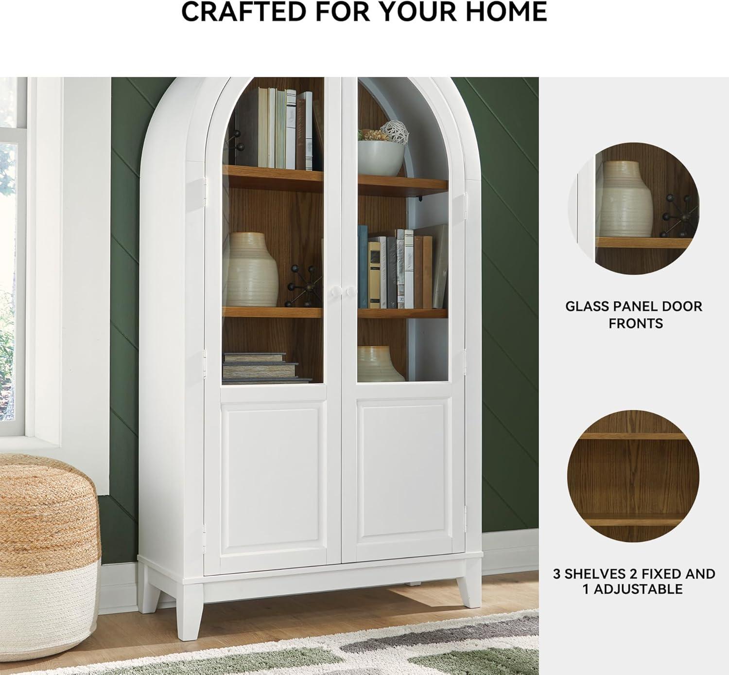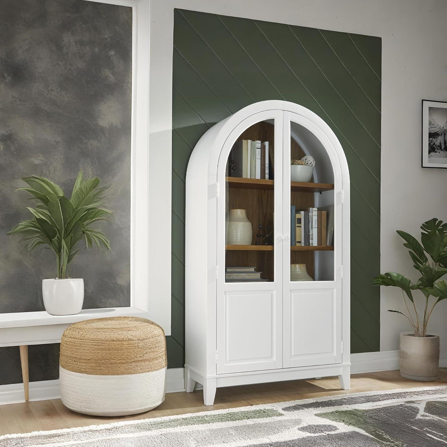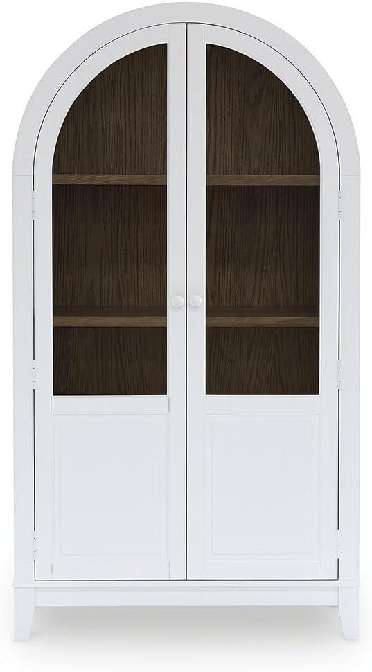 This accent cabinet is a stunning marriage of architectural intrigue and sophisticated storage. Its glass-paneled doors and natural wood tone create an inviting warmth well-suited to transitional spaces. Ideal for showcasing fine china or storing everyday essentials, this versatile piece proves that practical storage can be utterly beautiful.