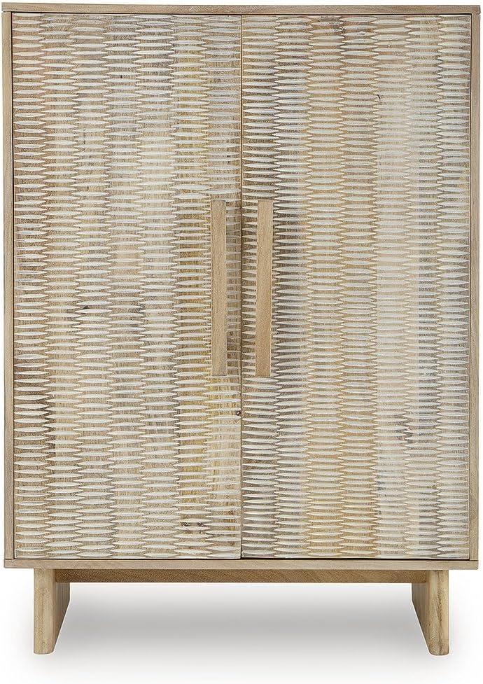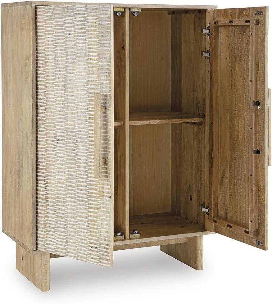 Signature Design by Ashley Dallinbury Accent Cabinet with Doors, Solid Mango Wood Construction for Living Room, Entryway Or Dining Space, Whitewash/Natural