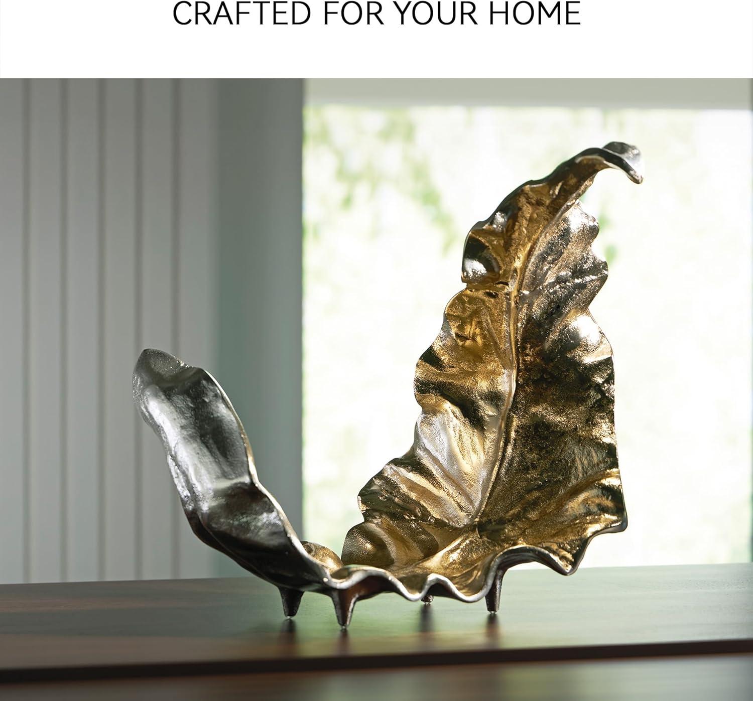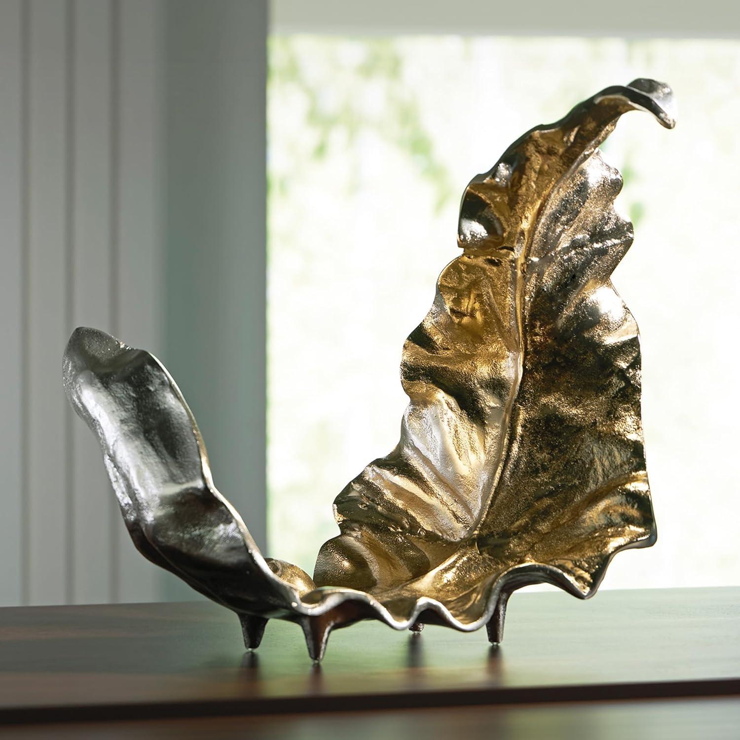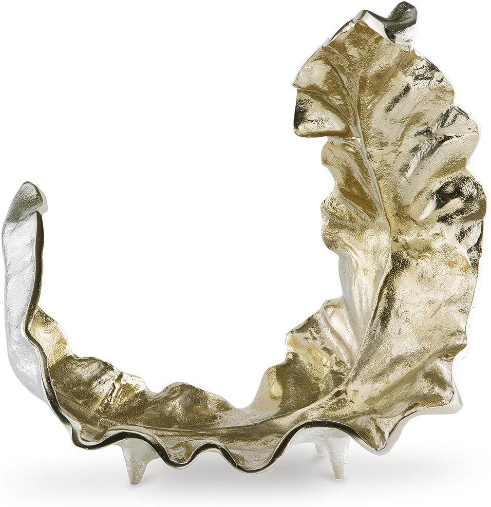 This sculpture takes its cues from nature, forming a delicately curved leaf. Dressed in goldtone and silvertone finishes, it brings an organically beautiful feel to contemporary design. Use it to add refinement to a bookshelf or to complete a table’s decor display.