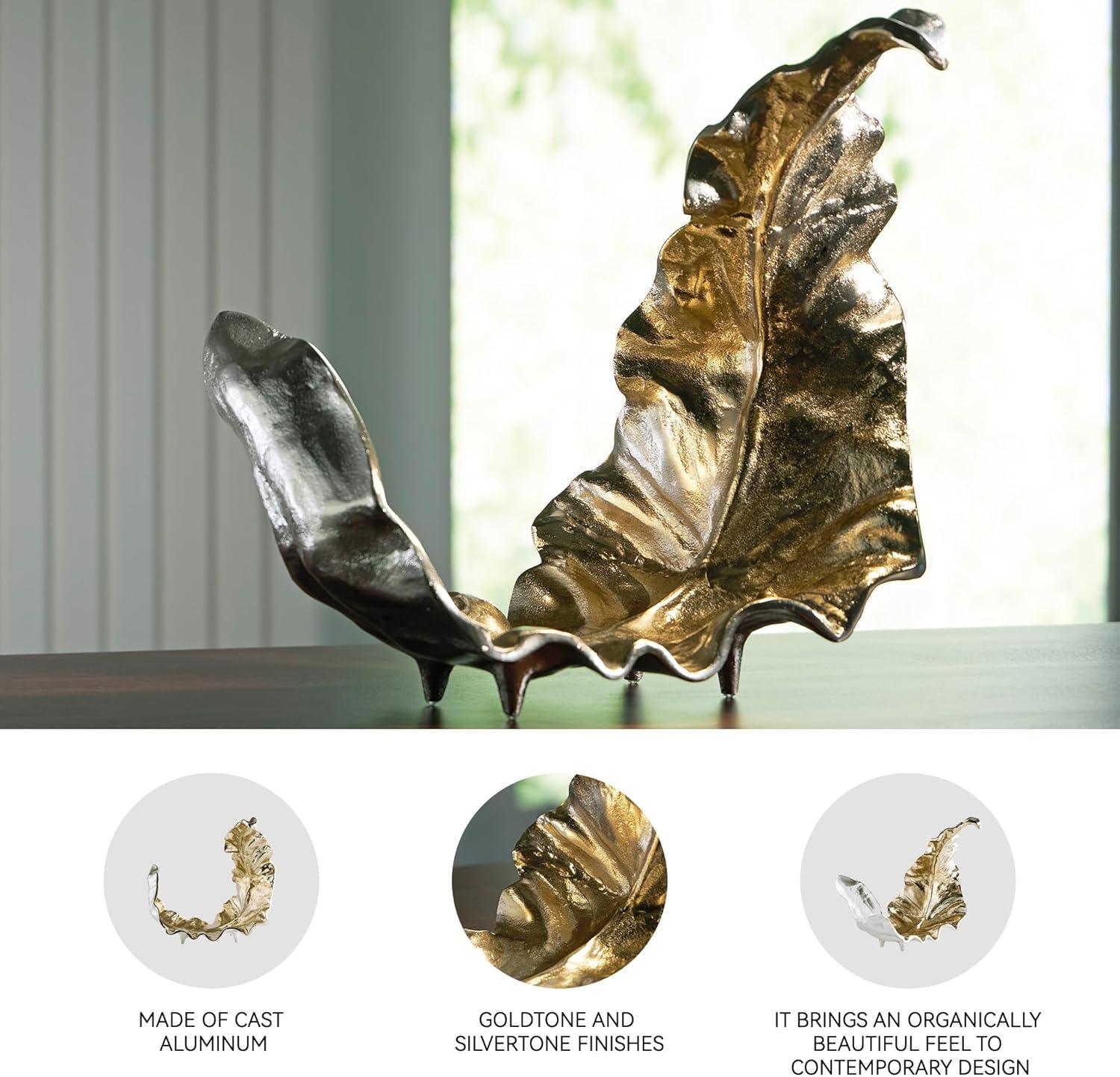 Signature Design by Ashley Darinsen Art Deco Aluminum Leaf Sculpture, Metallic & Chrome