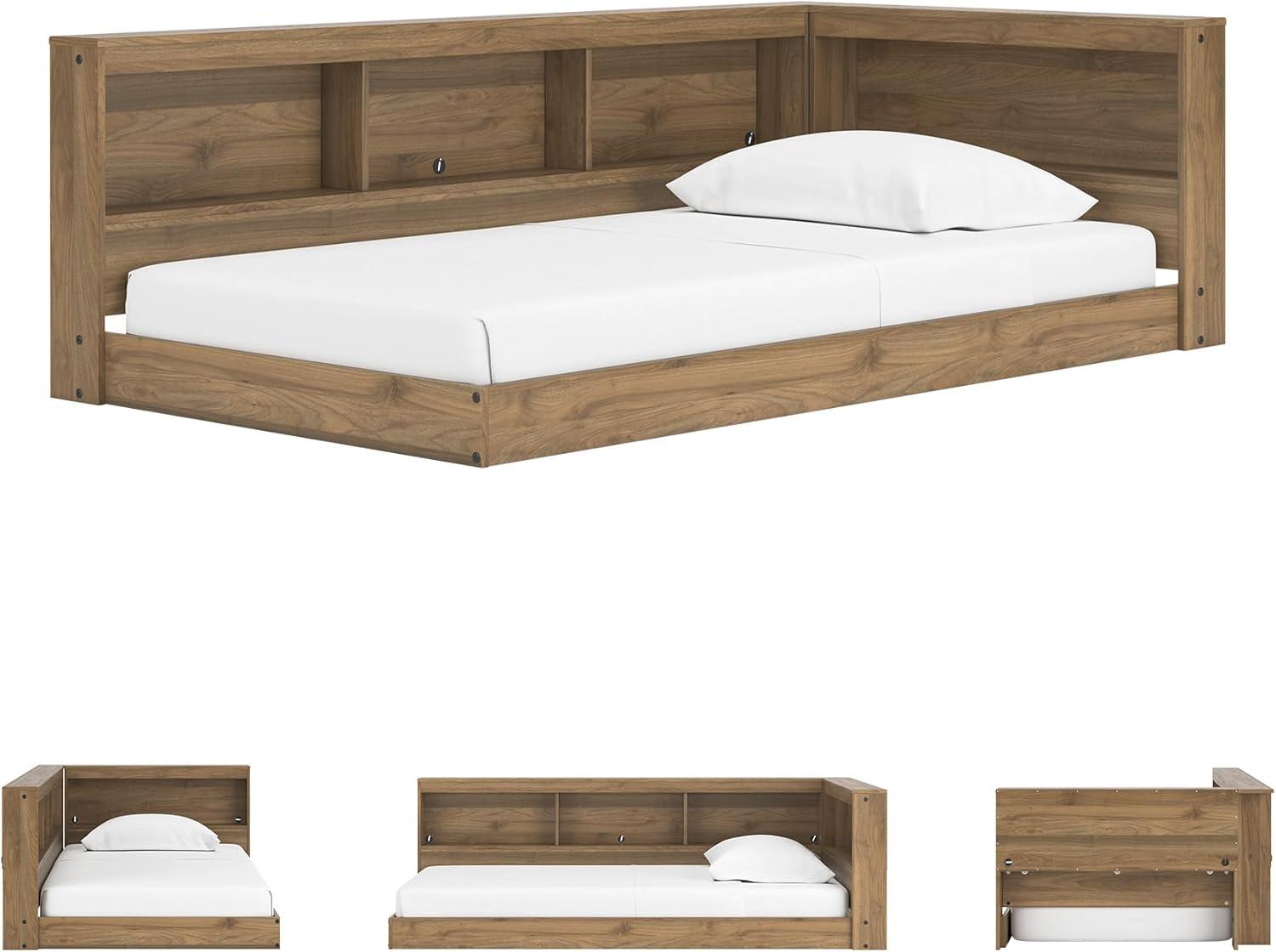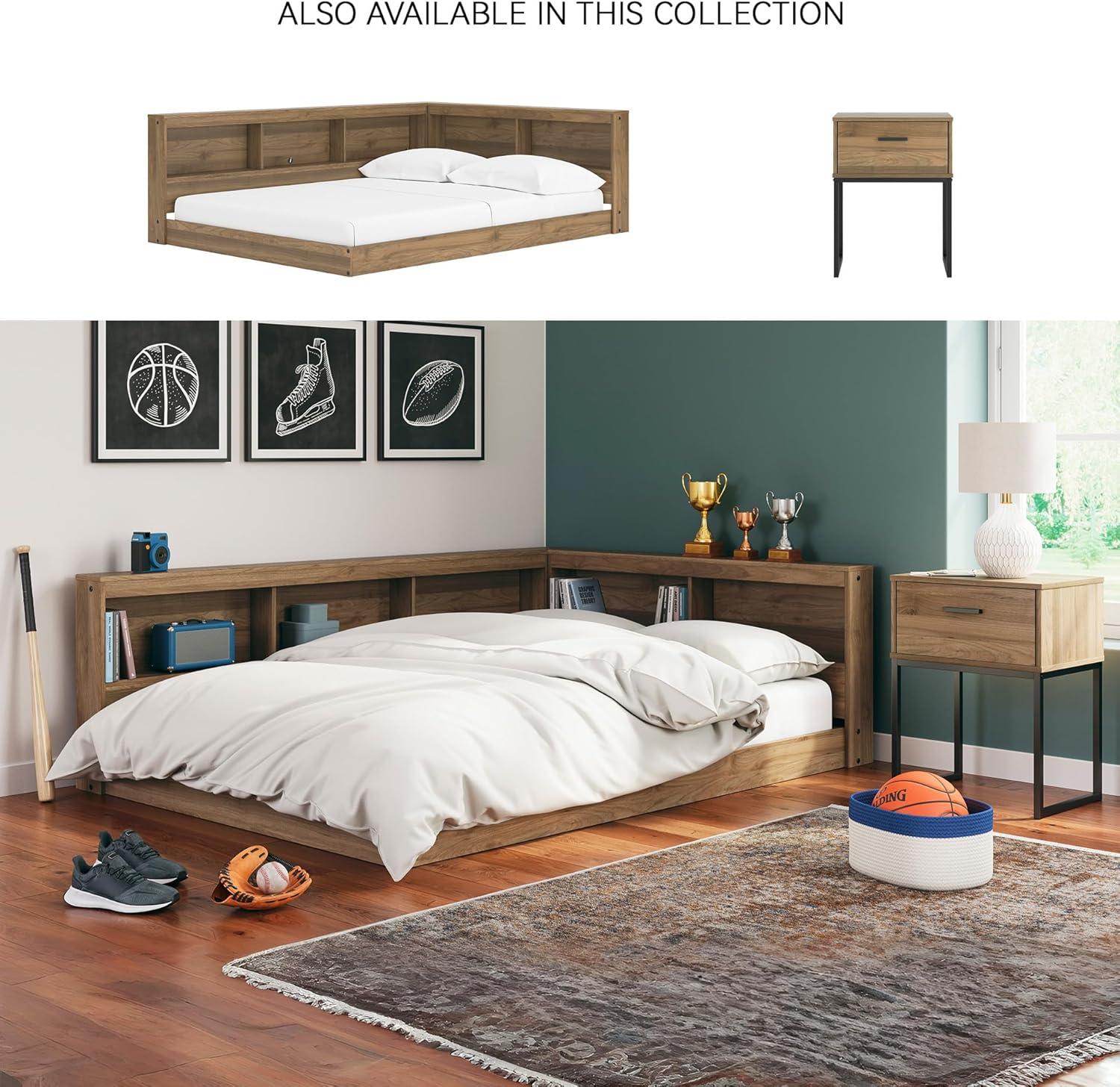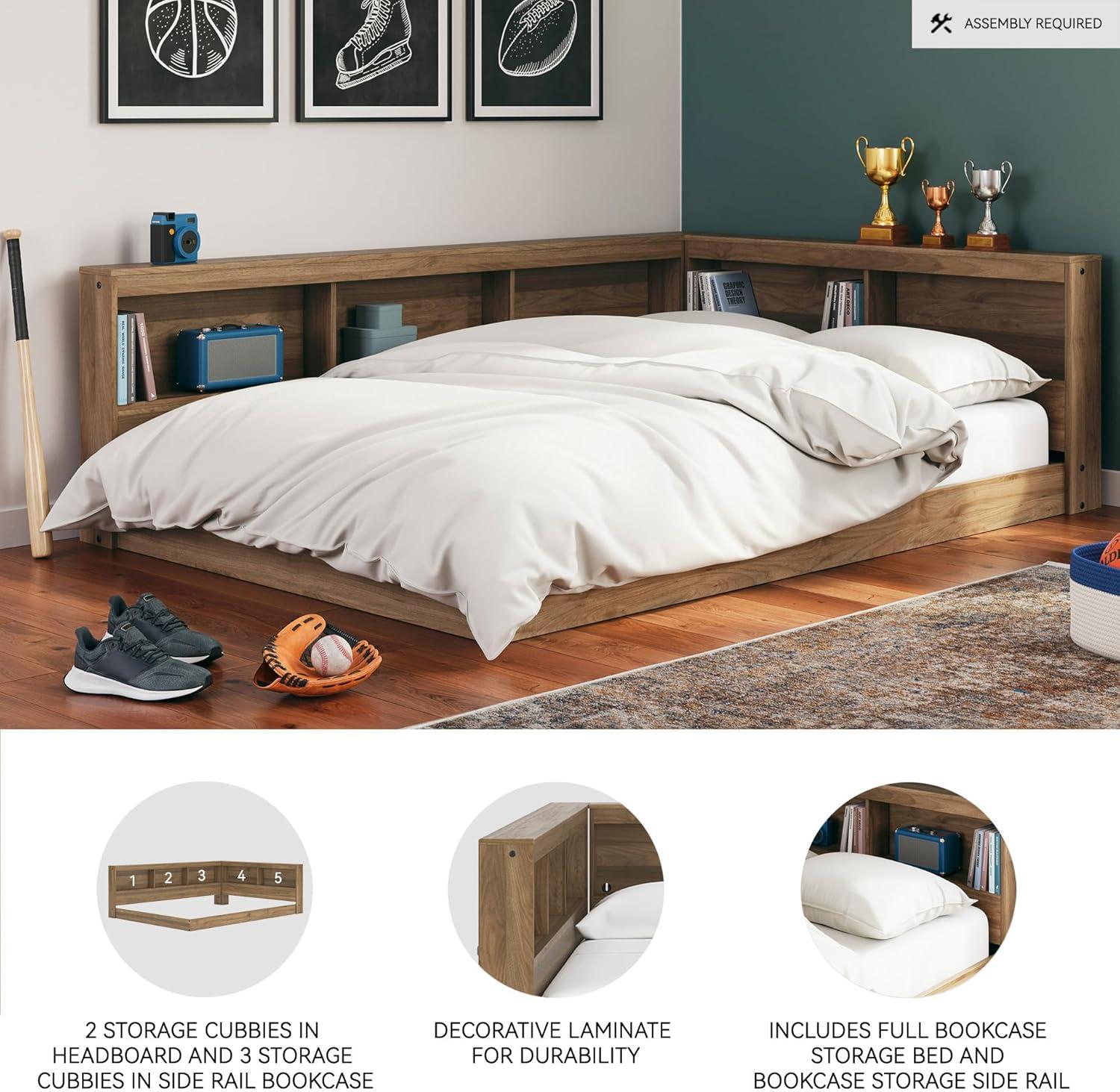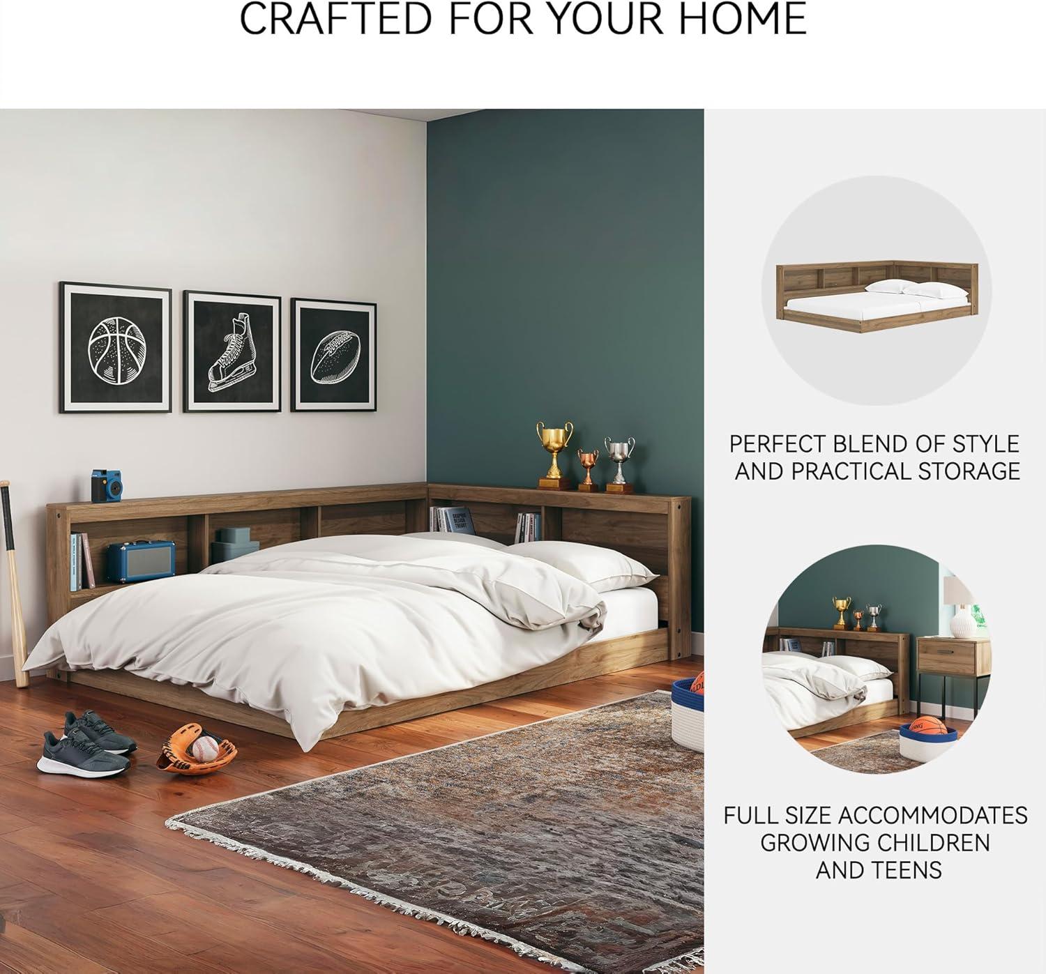 Signature Design by Ashley Deanlow Mid-Century Modern Full Bookcase Storage Floor Bed, No Foundation or Box Spring Needed, Wood, 26″ High, Light Brown(Honey)