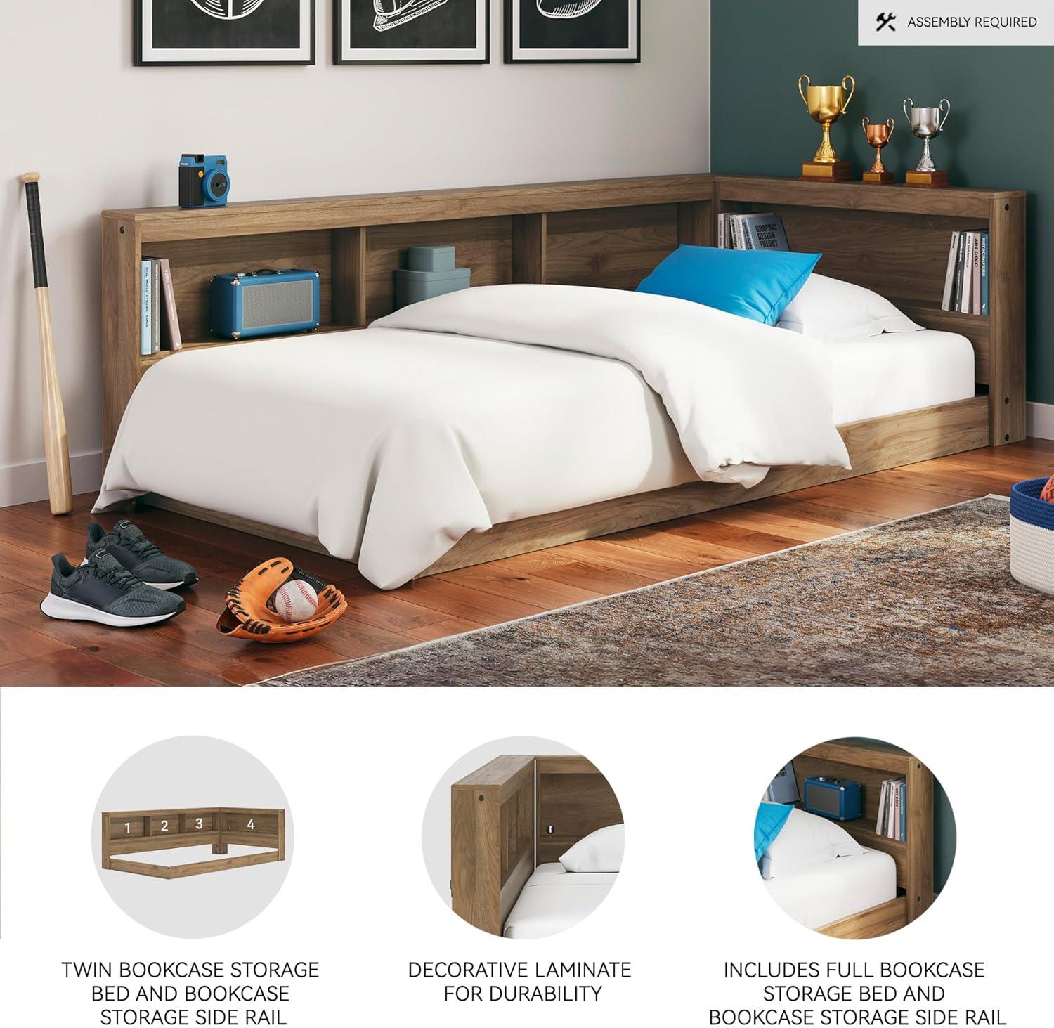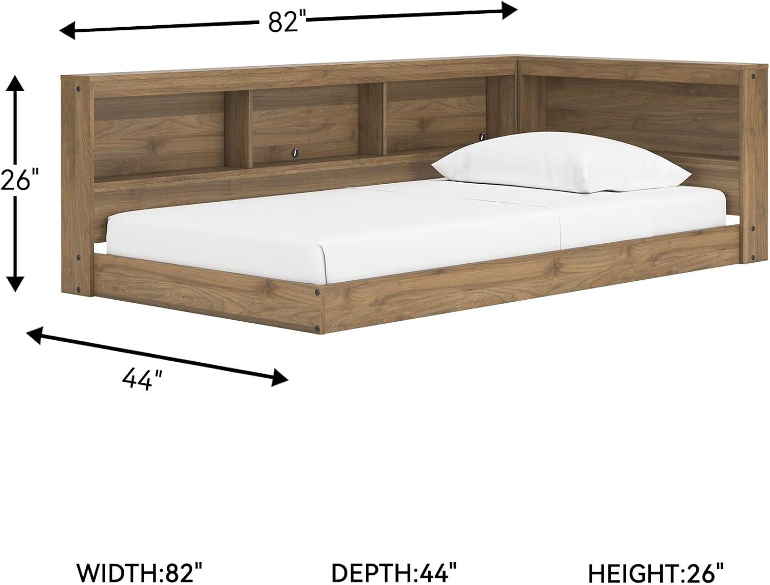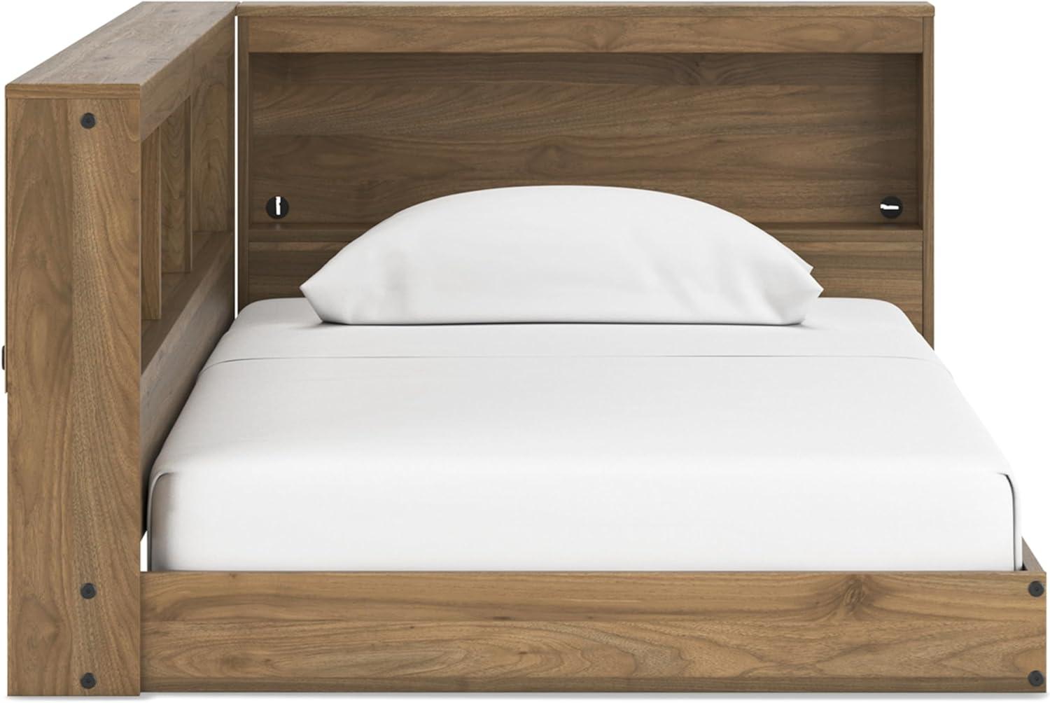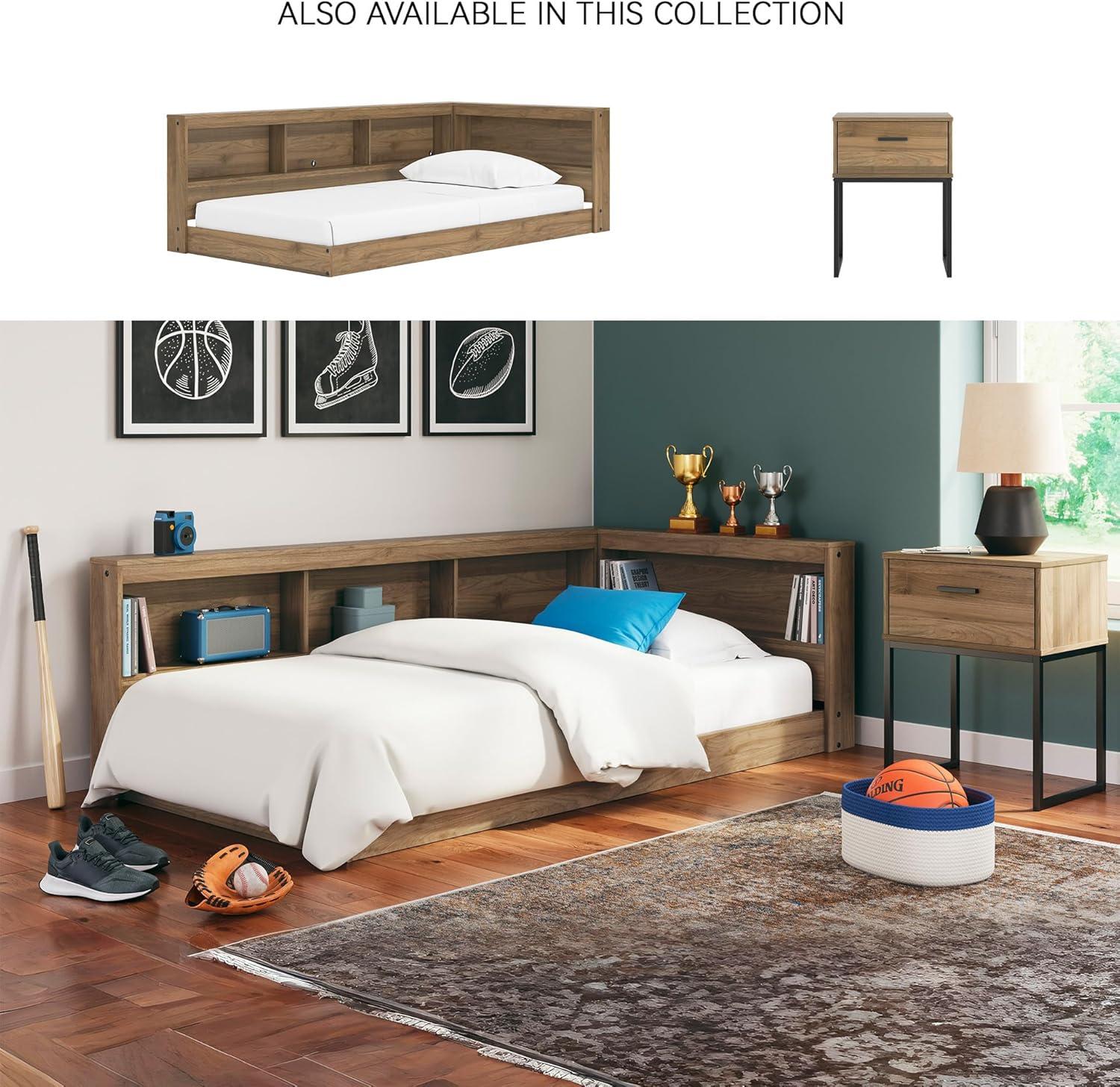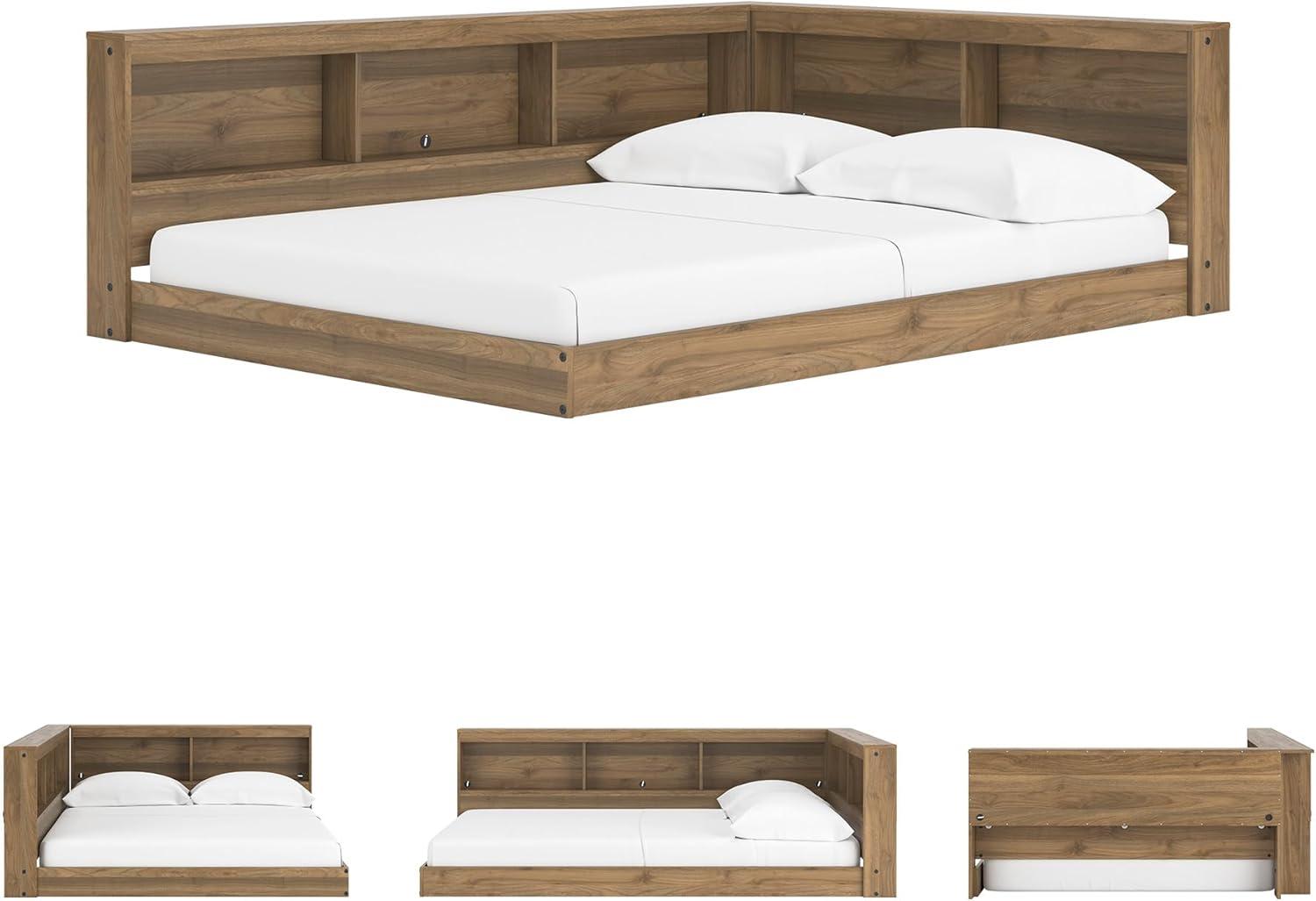 Signature Design by Ashley Deanlow Mid-Century Modern Full Bookcase Storage Floor Bed, No Foundation or Box Spring Needed, Wood, 26″ High, Light Brown(Honey)