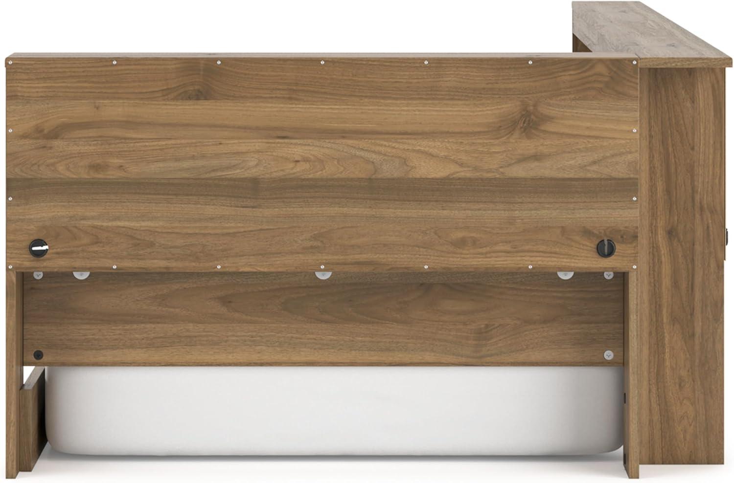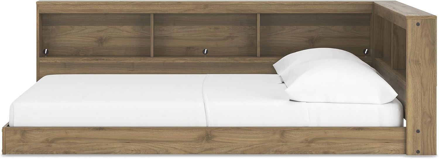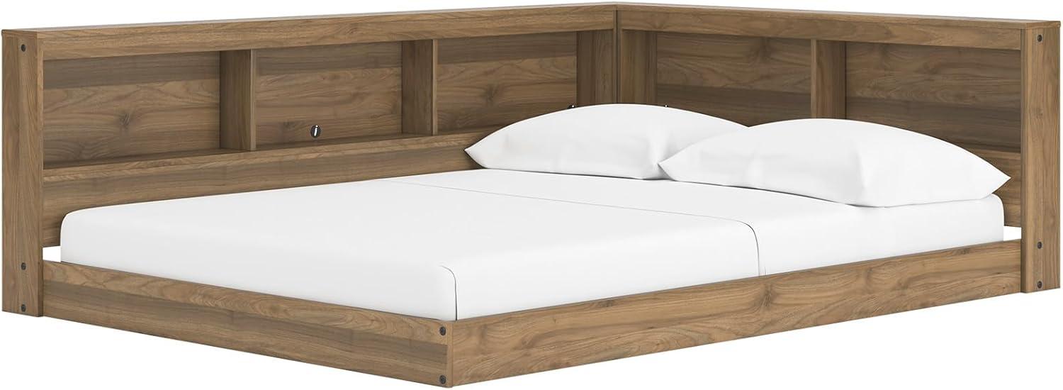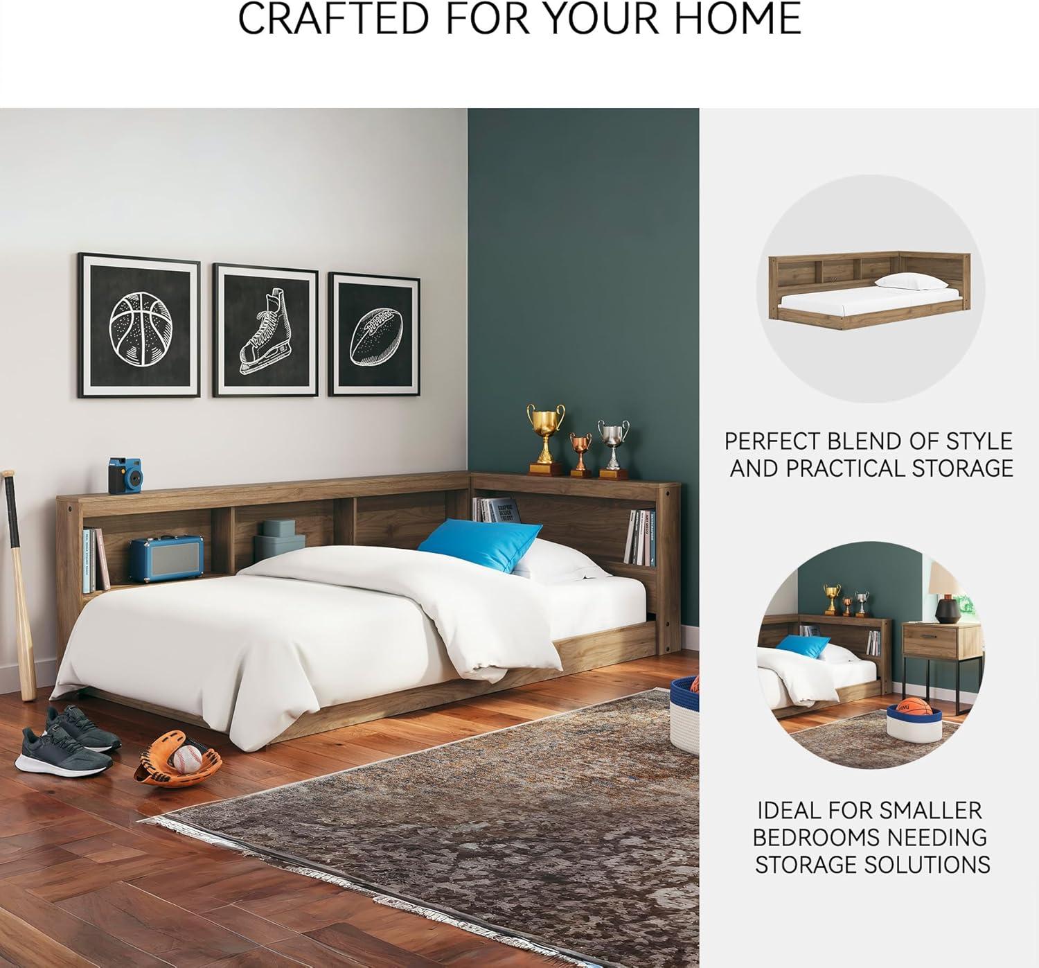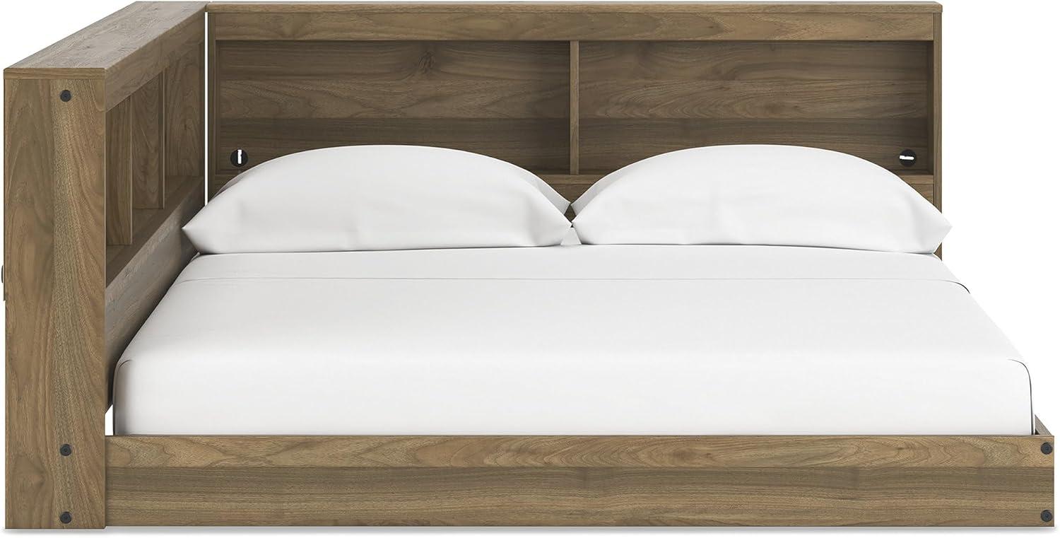 Signature Design by Ashley Deanlow Mid-Century Modern Full Bookcase Storage Floor Bed, No Foundation or Box Spring Needed, Wood, 26″ High, Light Brown(Honey)