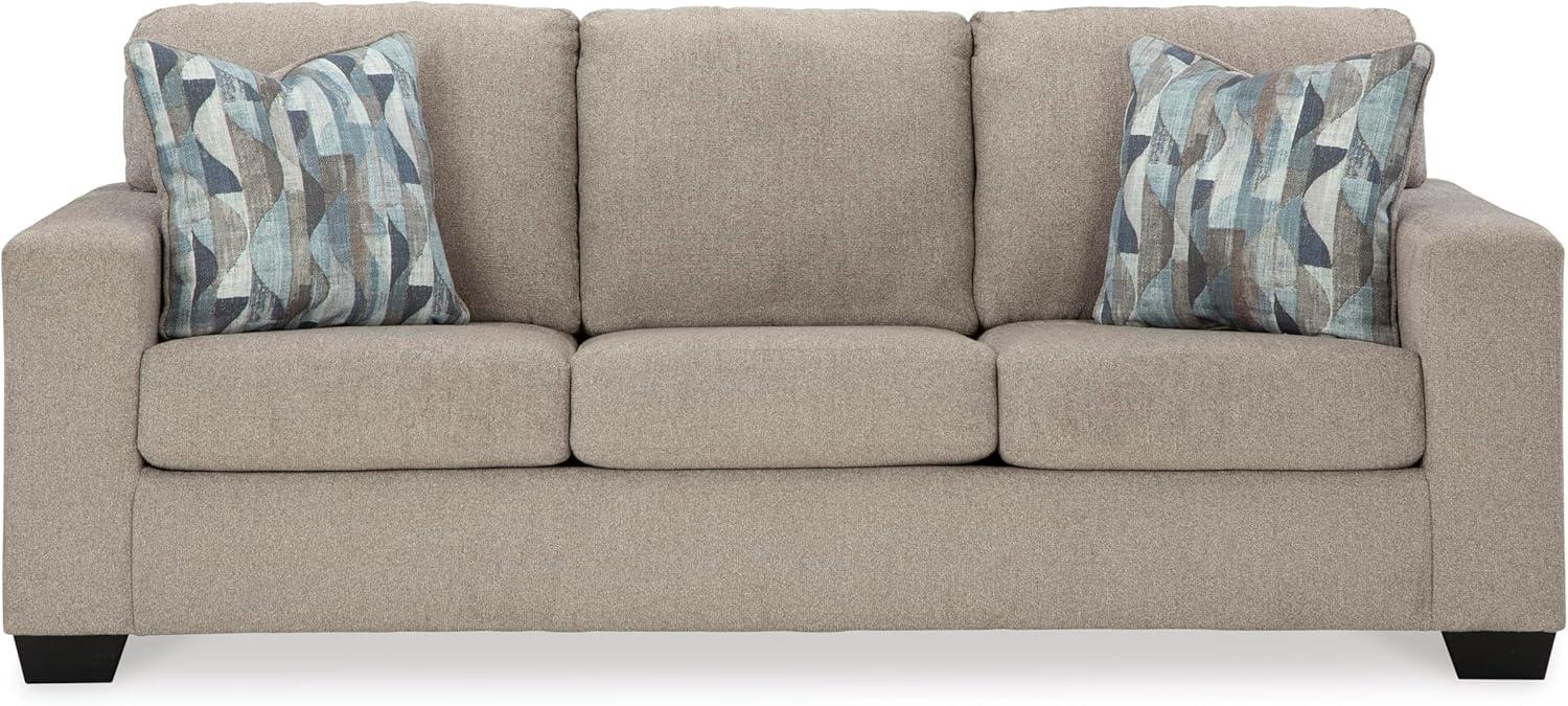 Signature Design by Ashley Deltona Contemporary 2-in-1 Sofa Sleeper with Folding Gel Memory Foam Mattress and 2 Accent Pillows, Queen, Beige